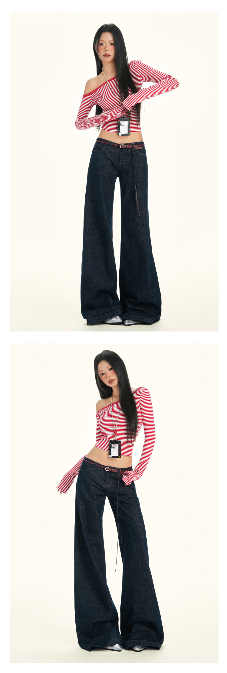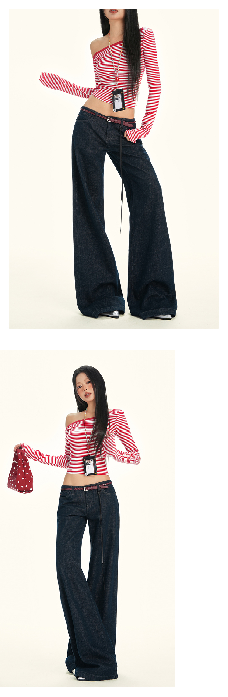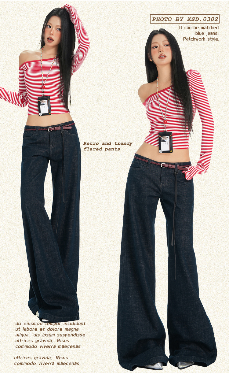 挂绳原牛复古垂感水洗直筒低腰百搭牛仔裤女