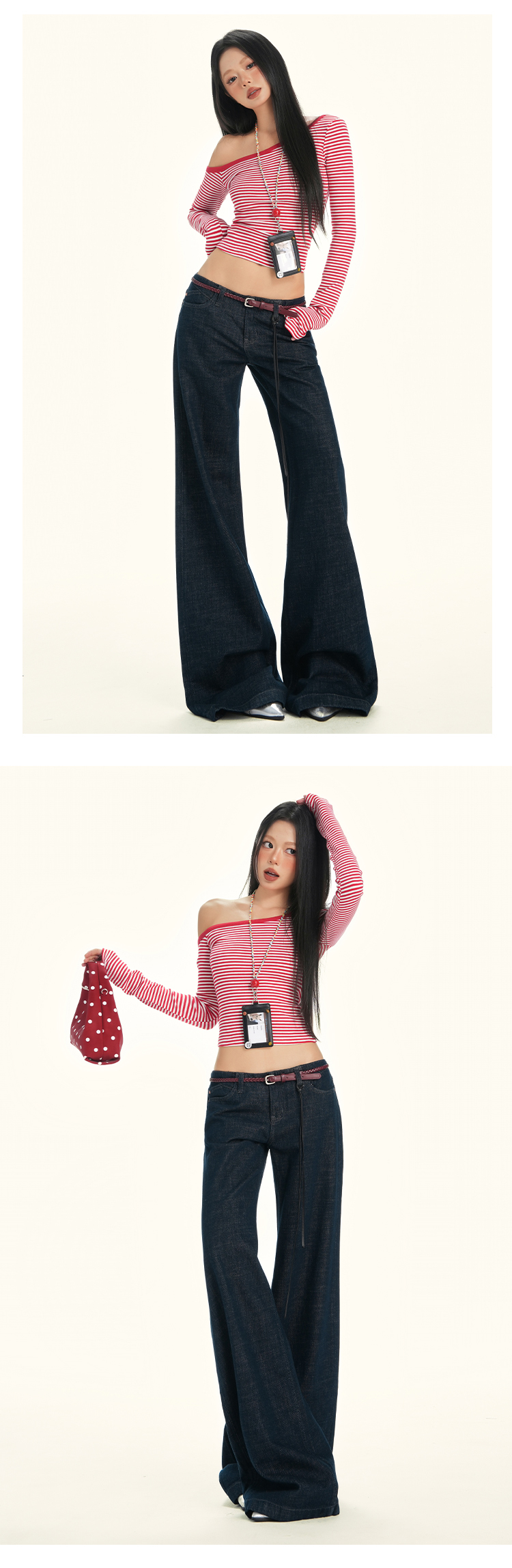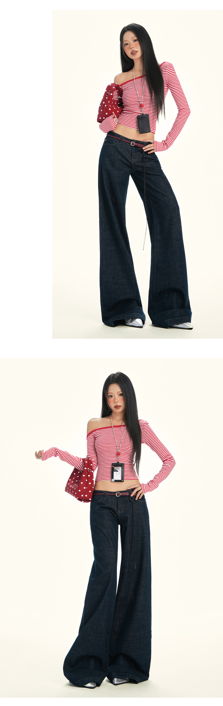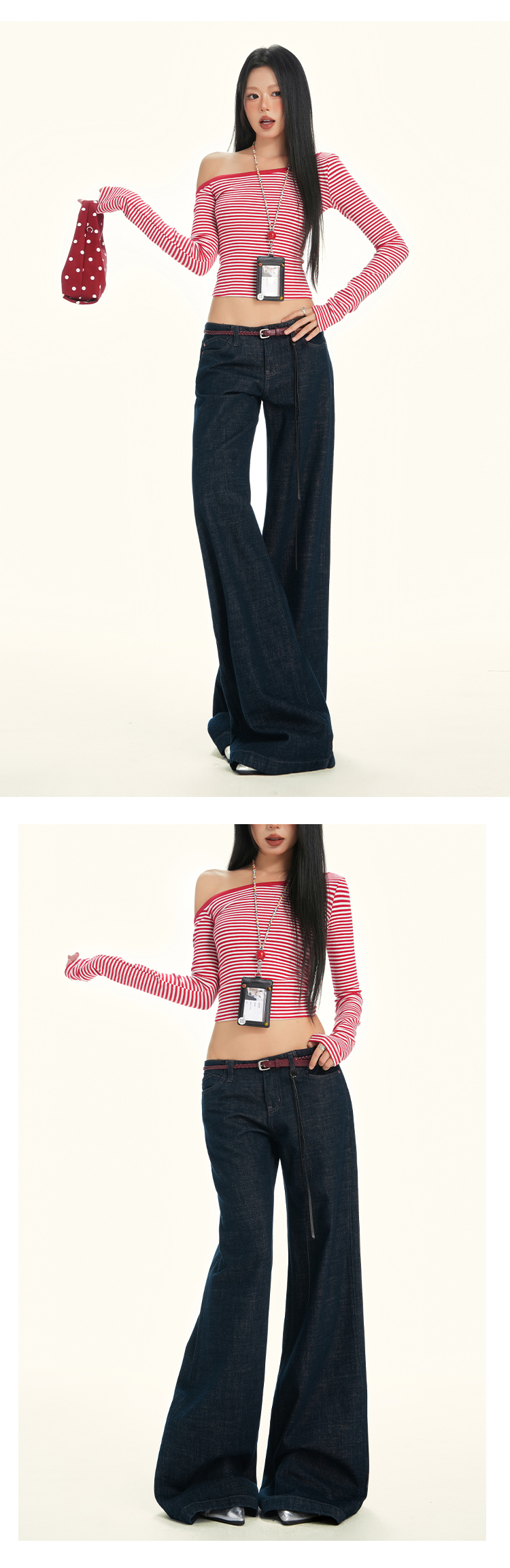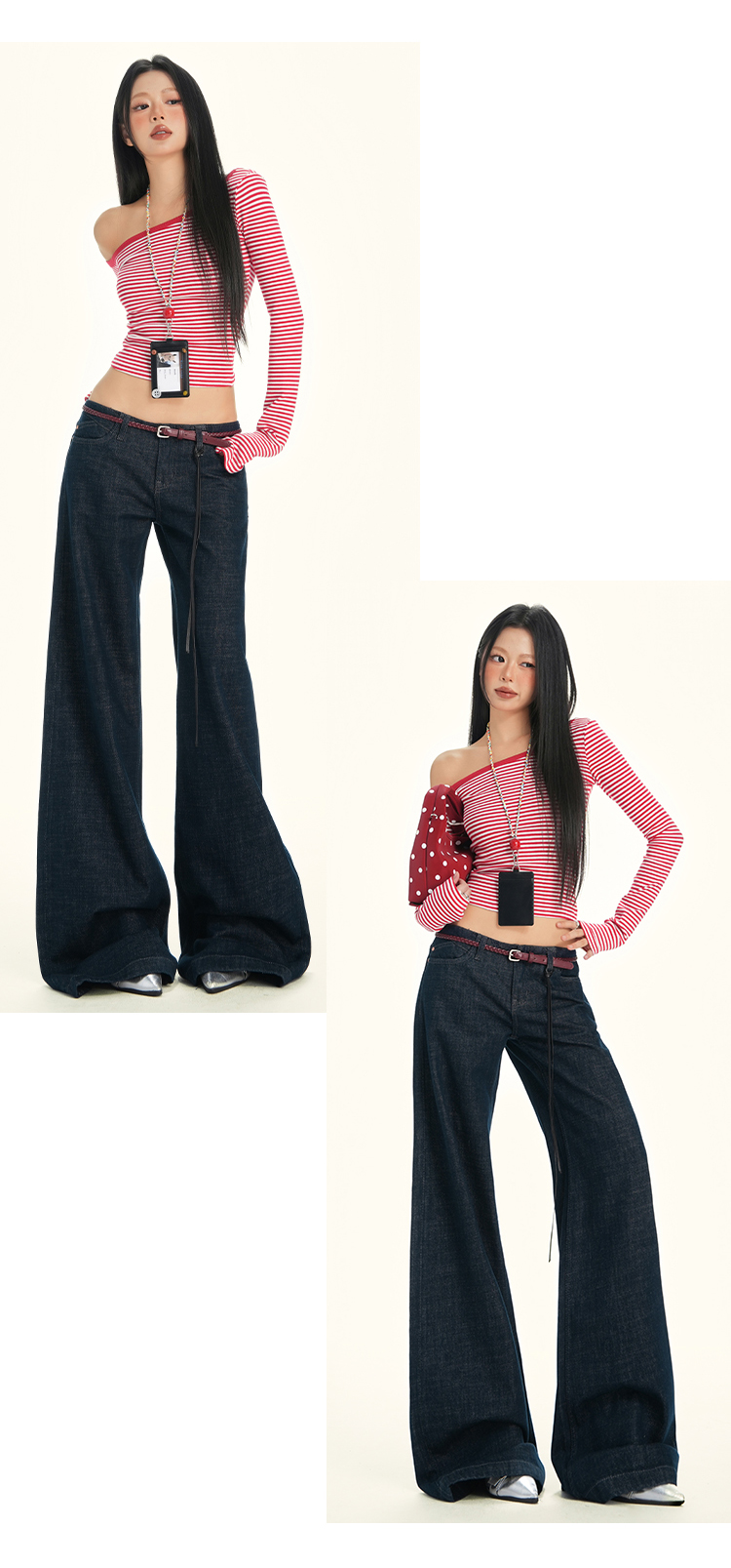 挂绳原牛复古垂感水洗直筒低腰百搭牛仔裤女