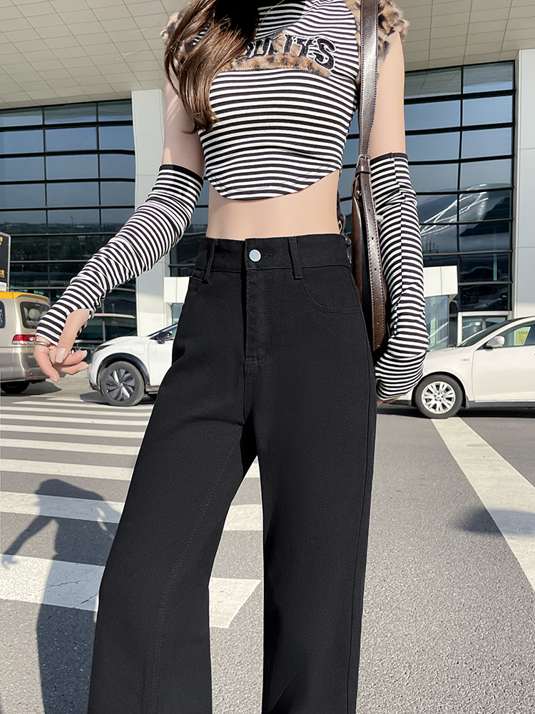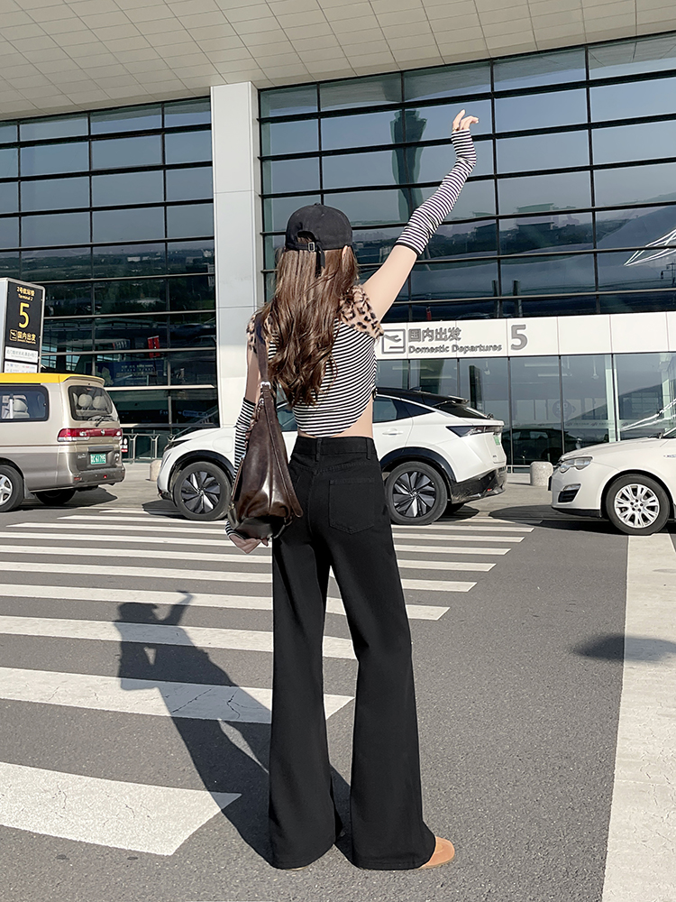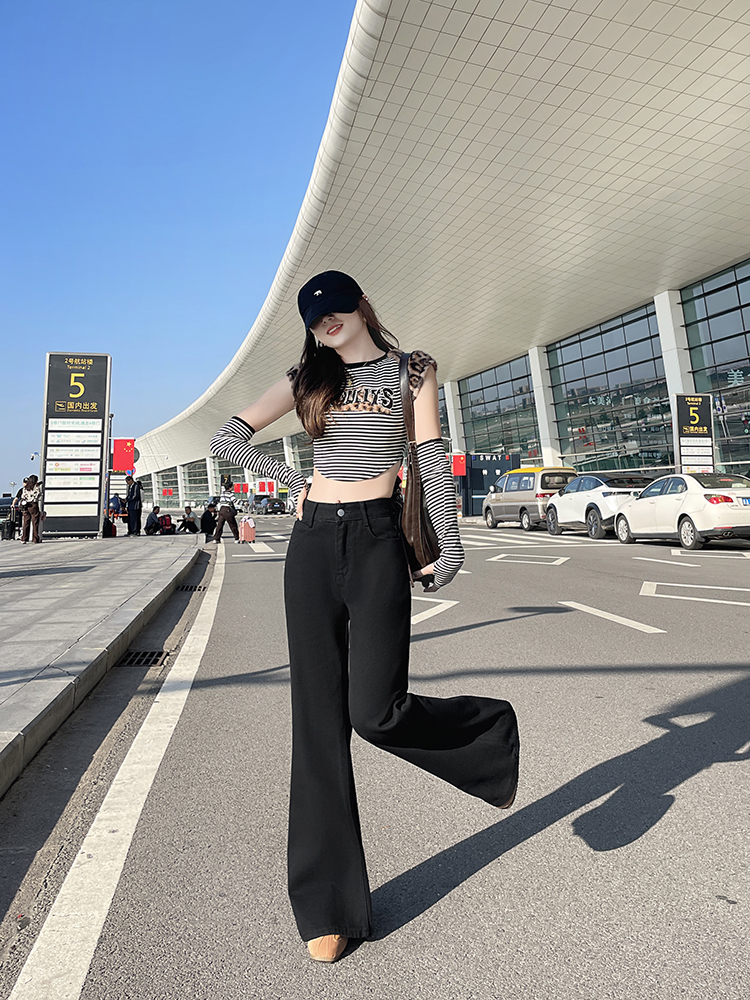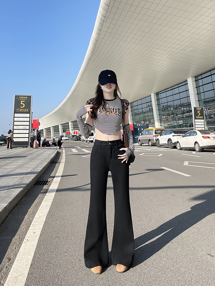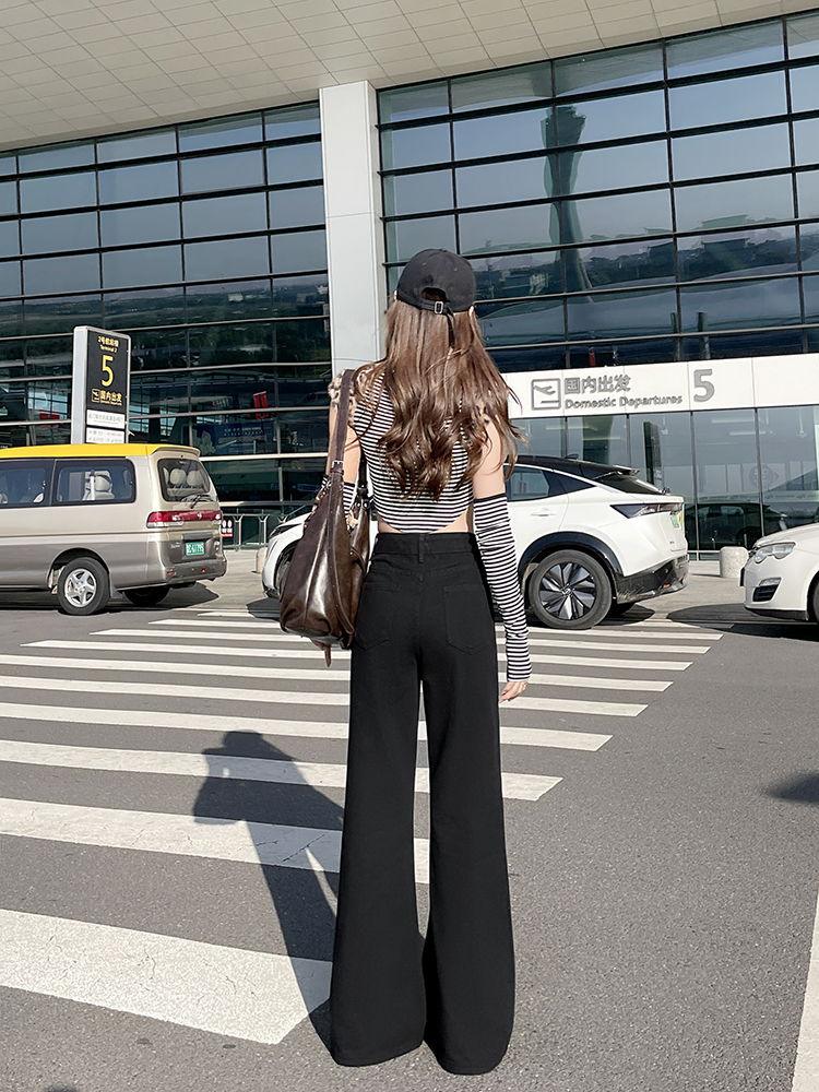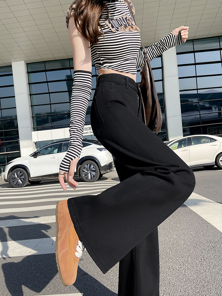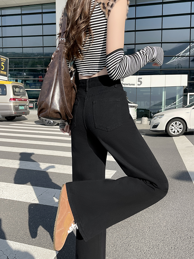 实拍-小个子低腰黑色微喇牛仔裤宽松辣妹显瘦直筒喇叭裤女
