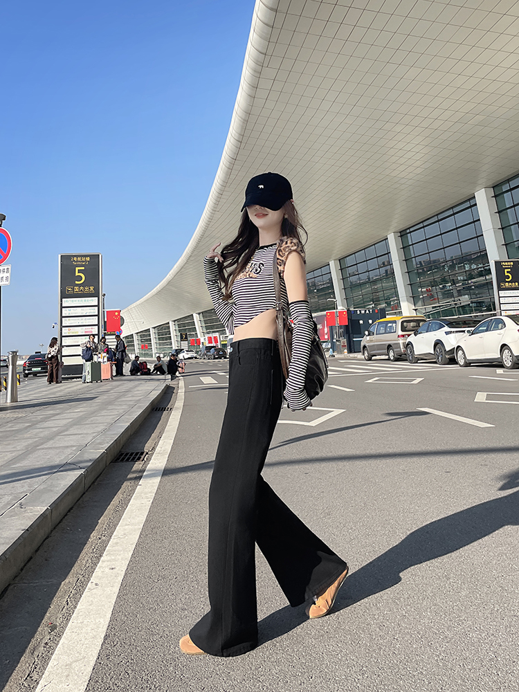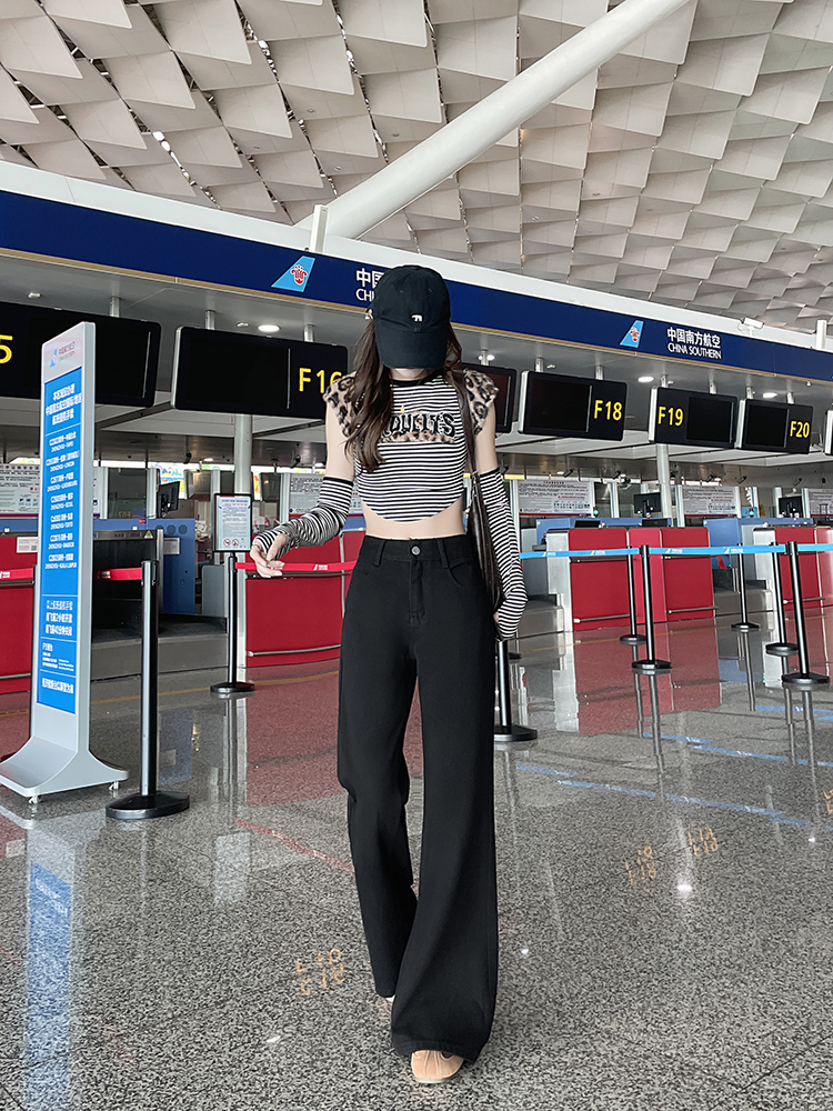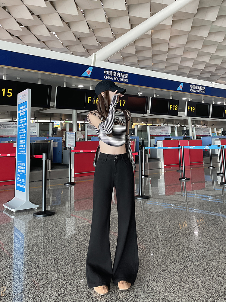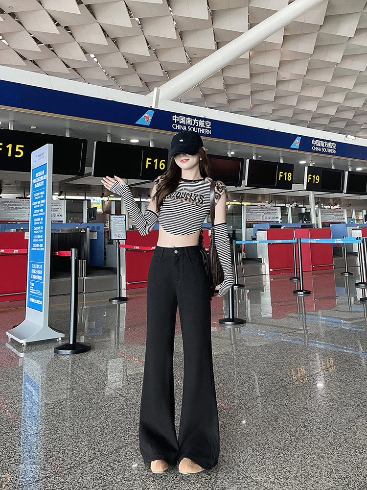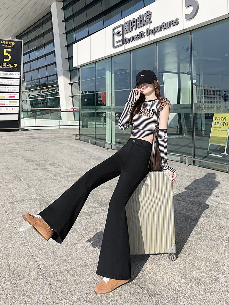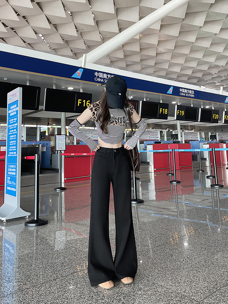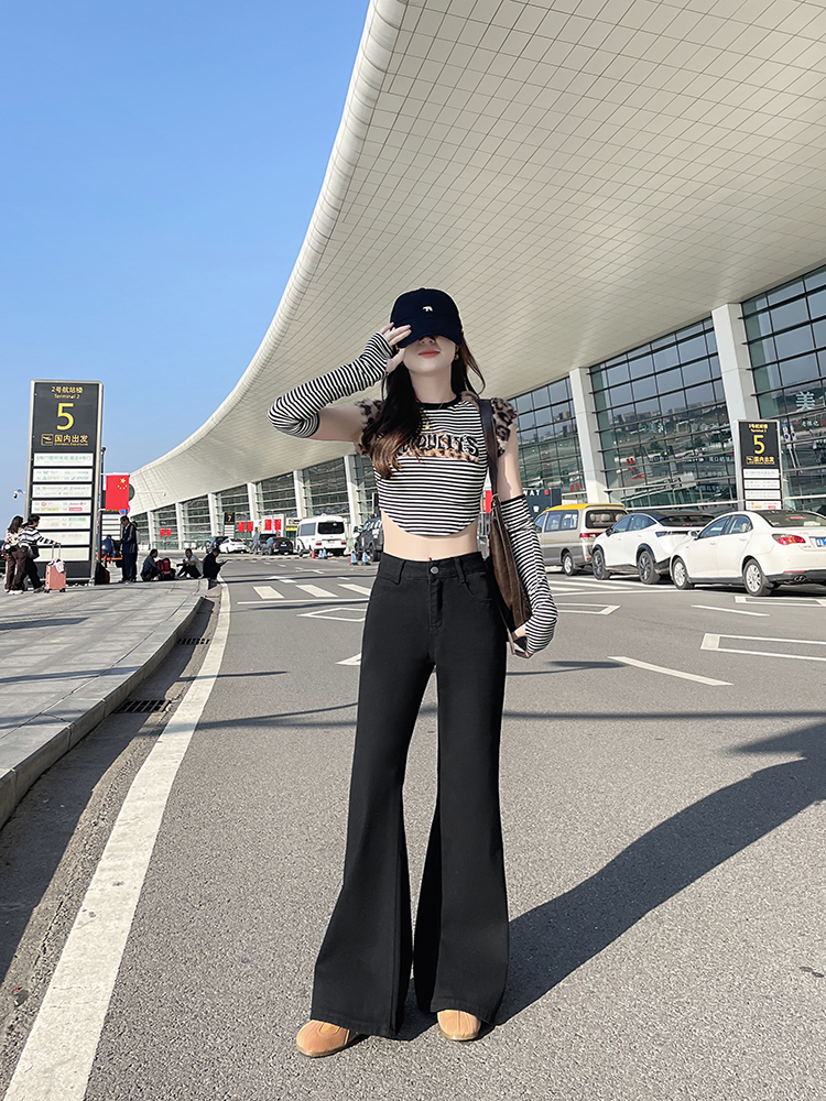 实拍-小个子低腰黑色微喇牛仔裤宽松辣妹显瘦直筒喇叭裤女