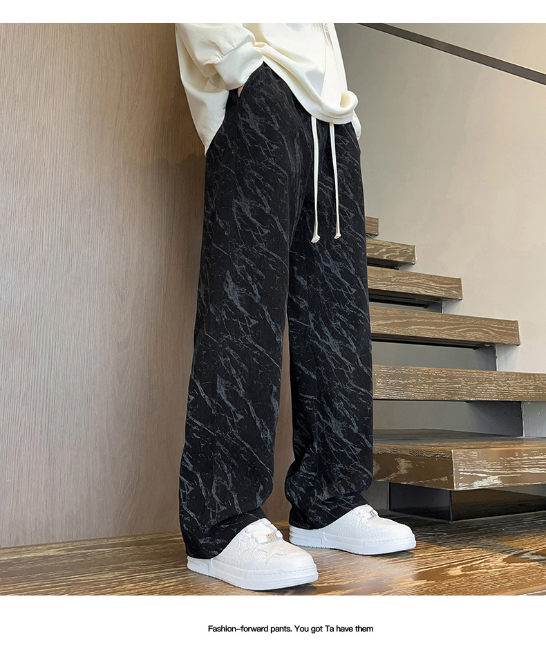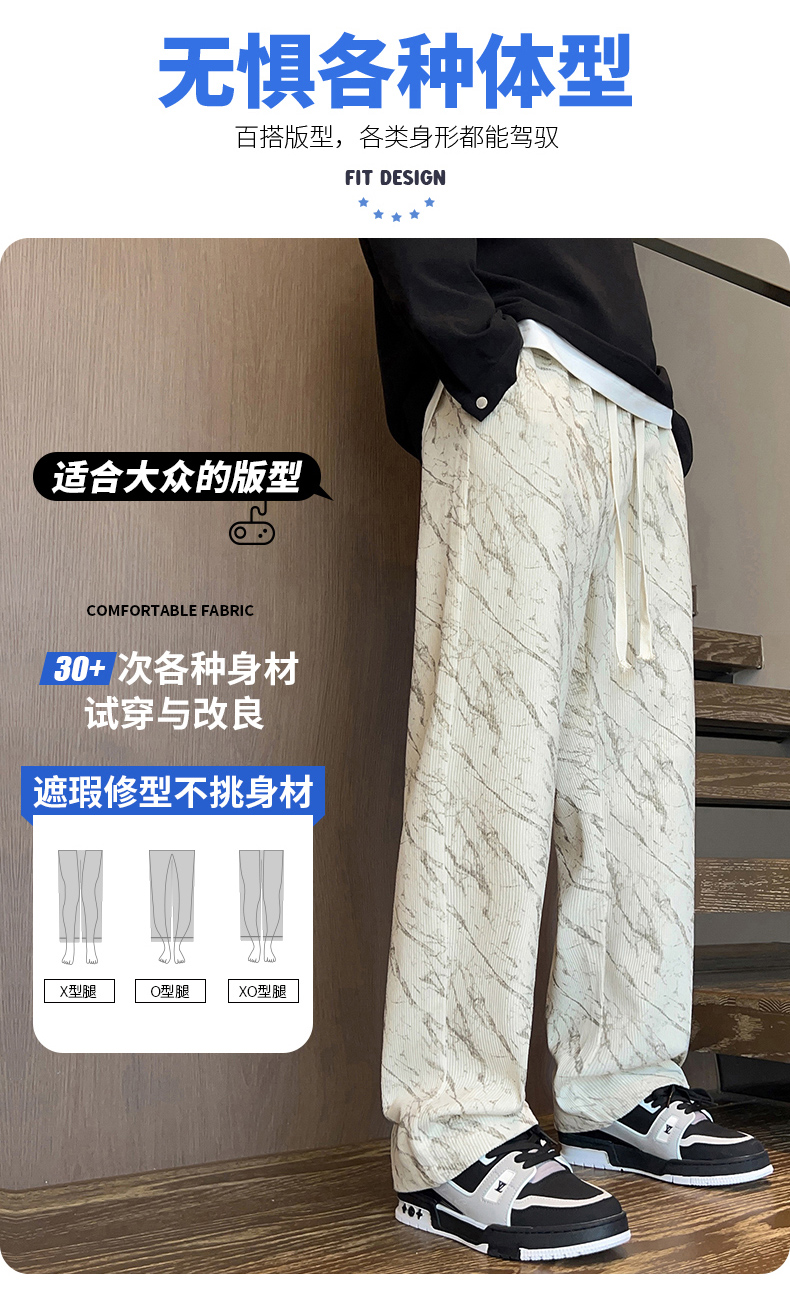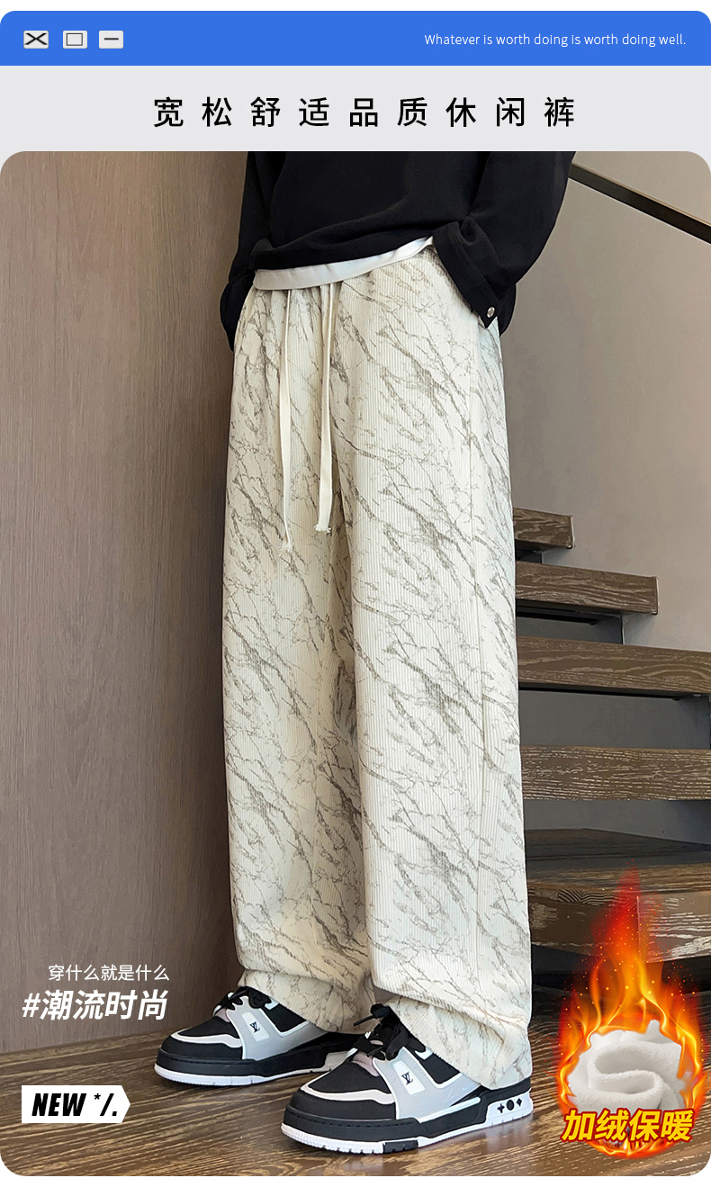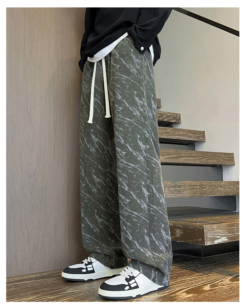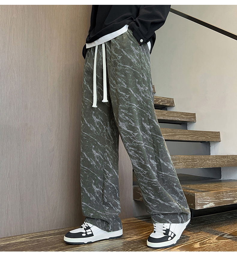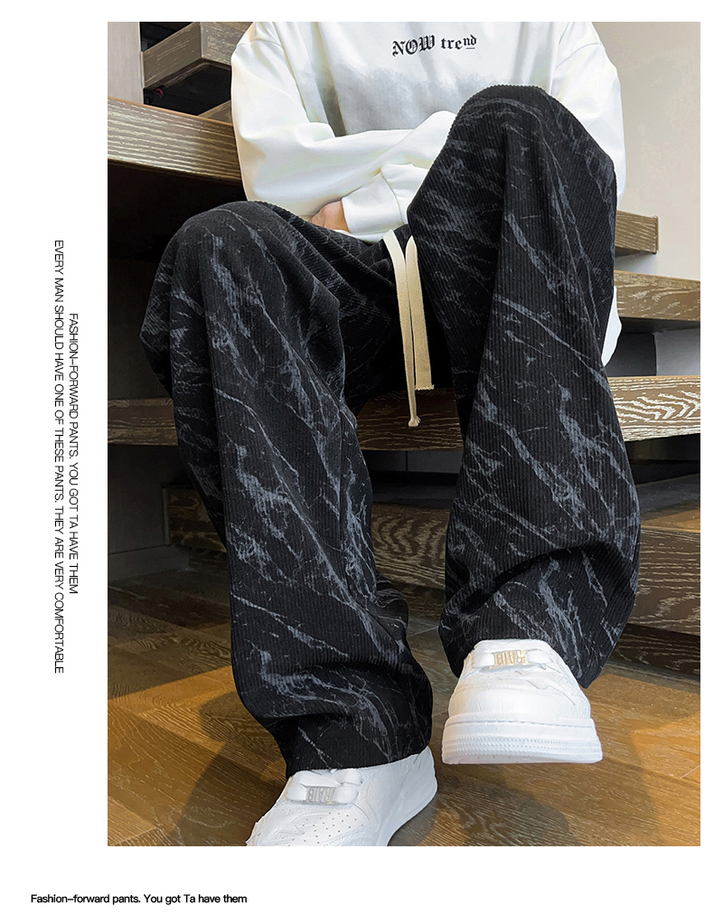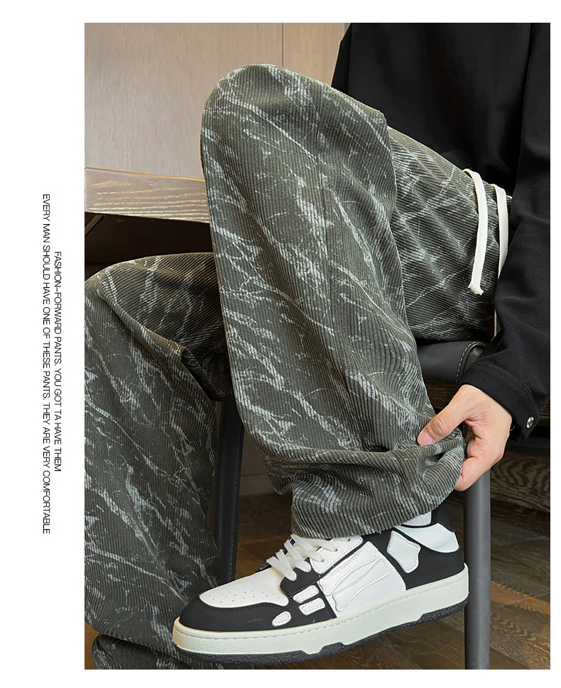 跨境扎染加绒裤男士秋冬时尚2025新款直筒灯芯绒卫裤宽松休闲长裤