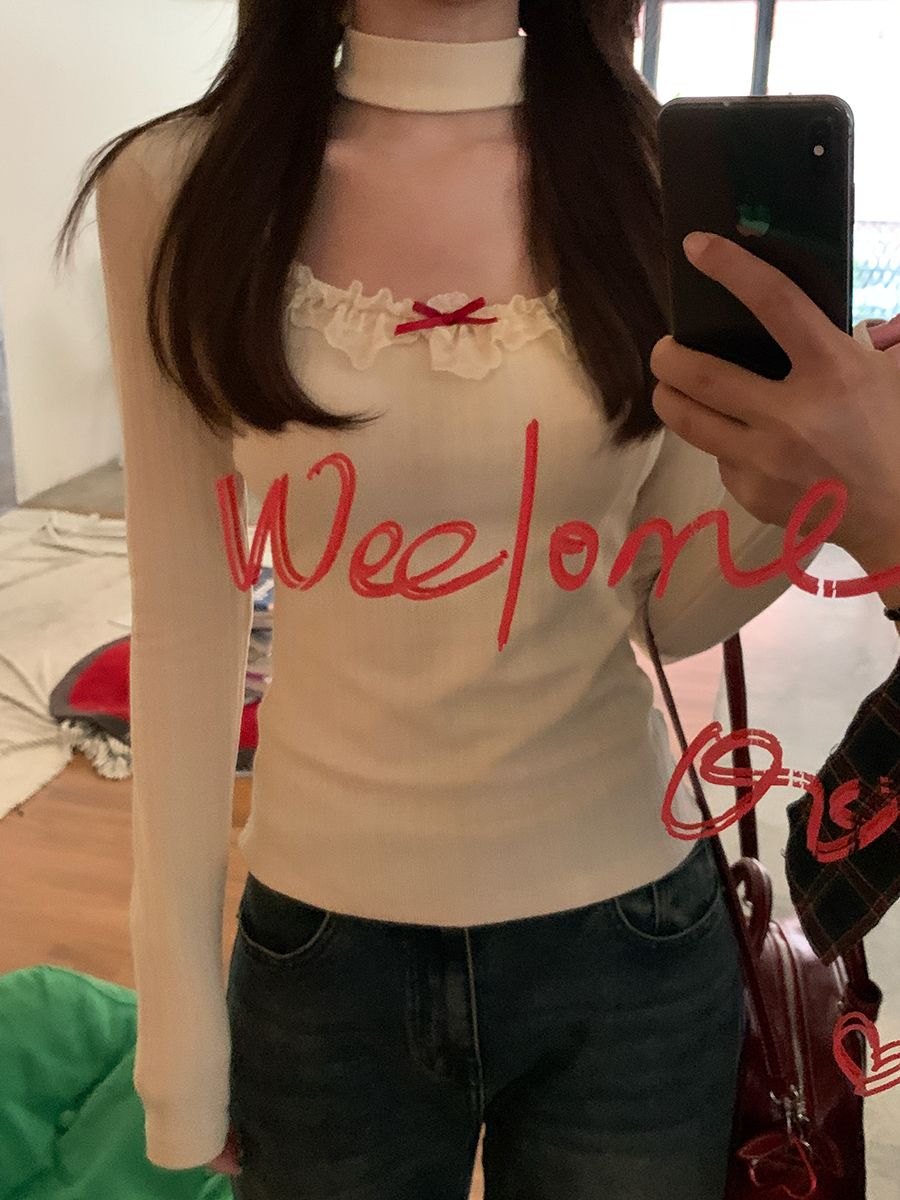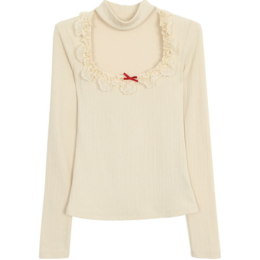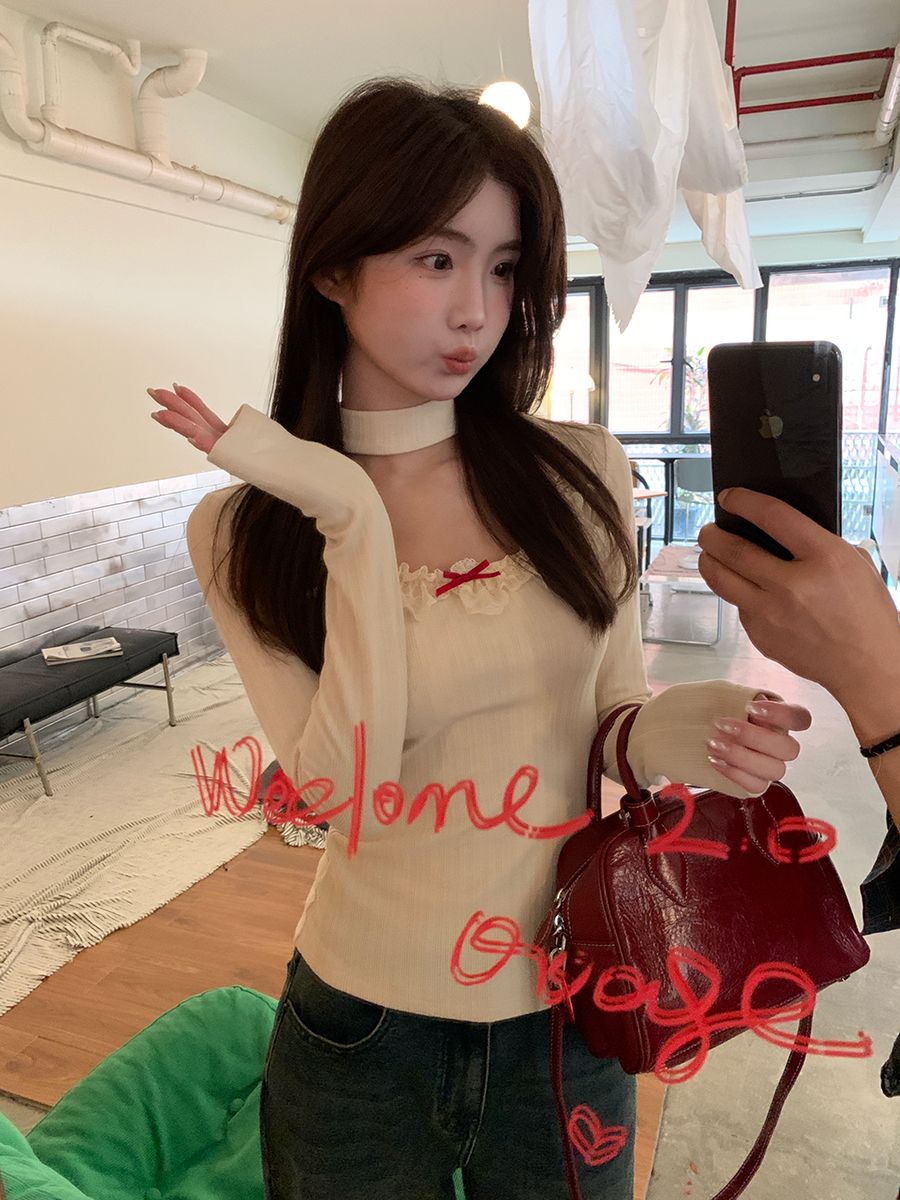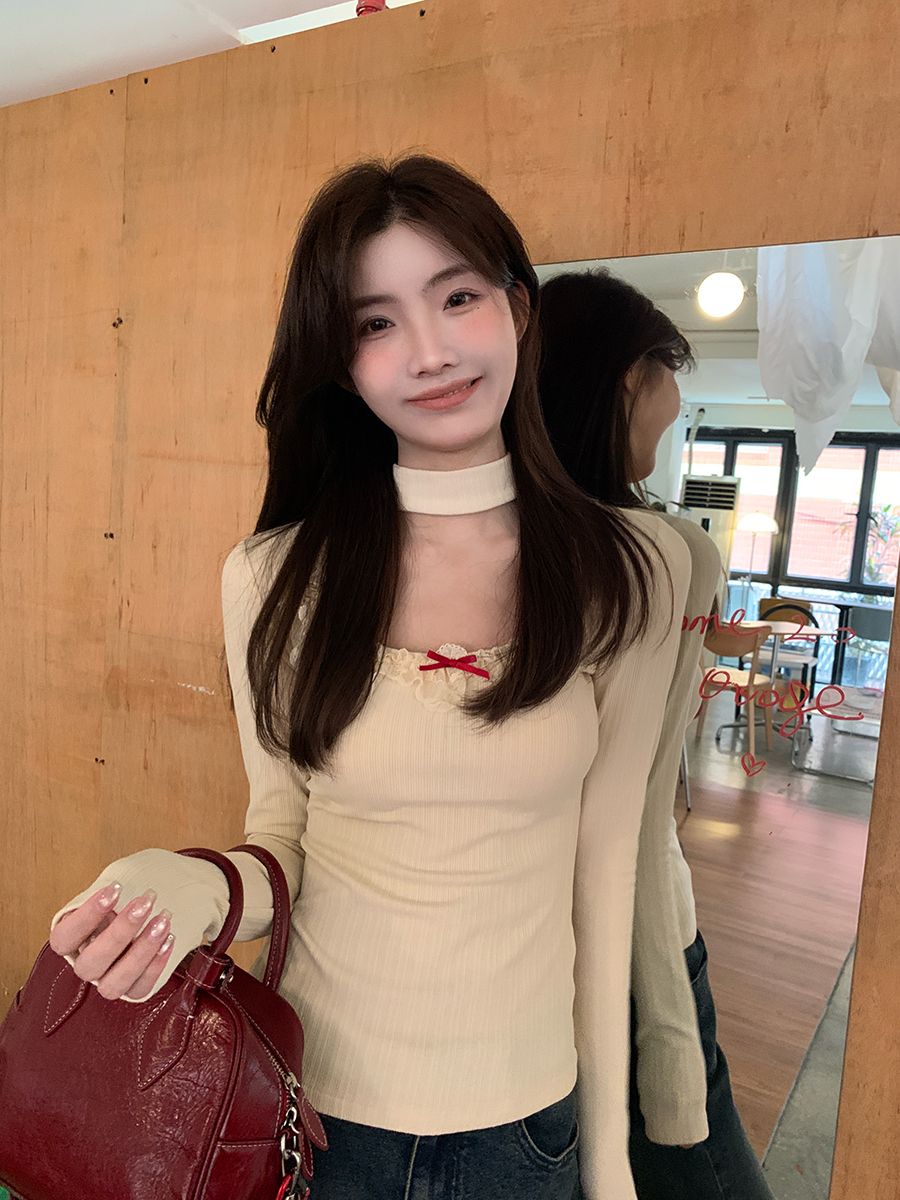 原版面料慕斯羊绒磨毛2025款秋季高级感长袖t恤修身针织上衣