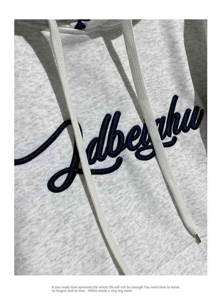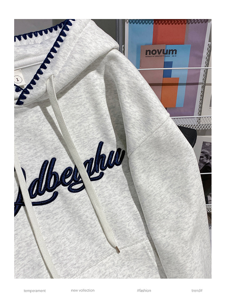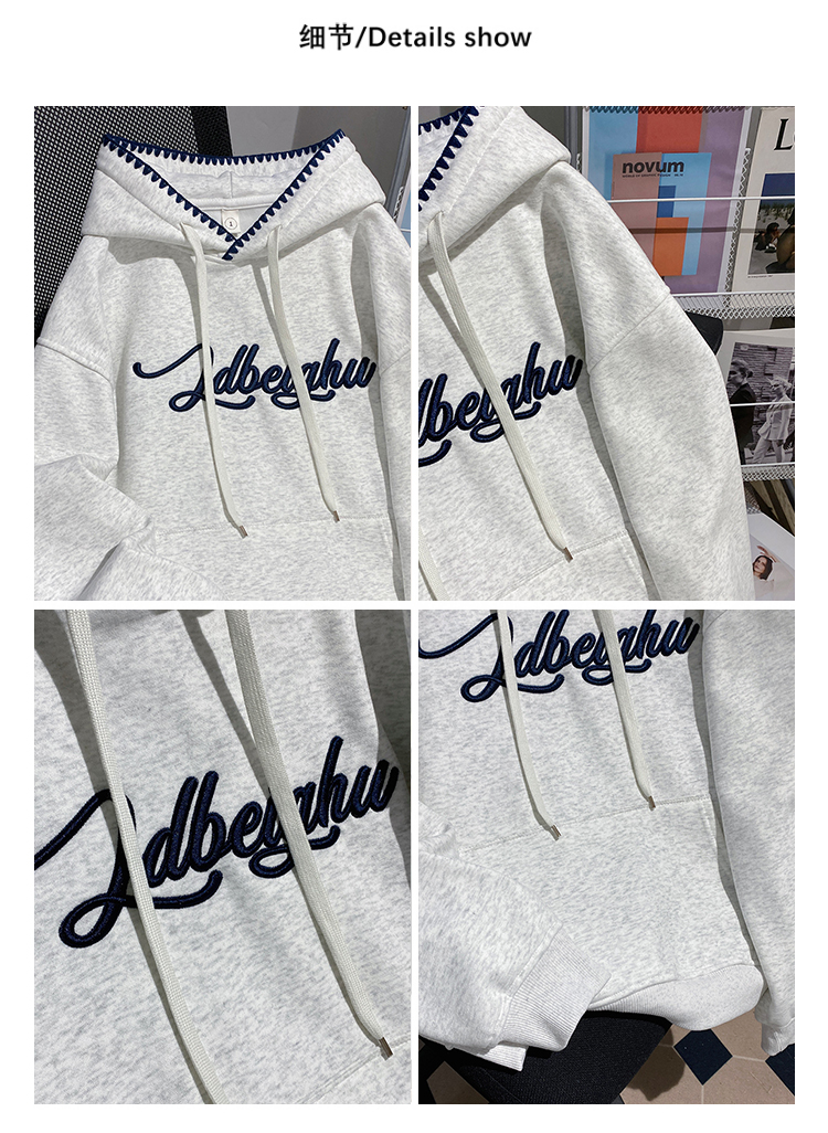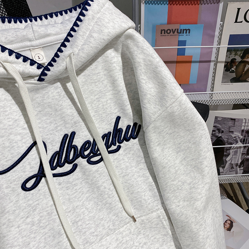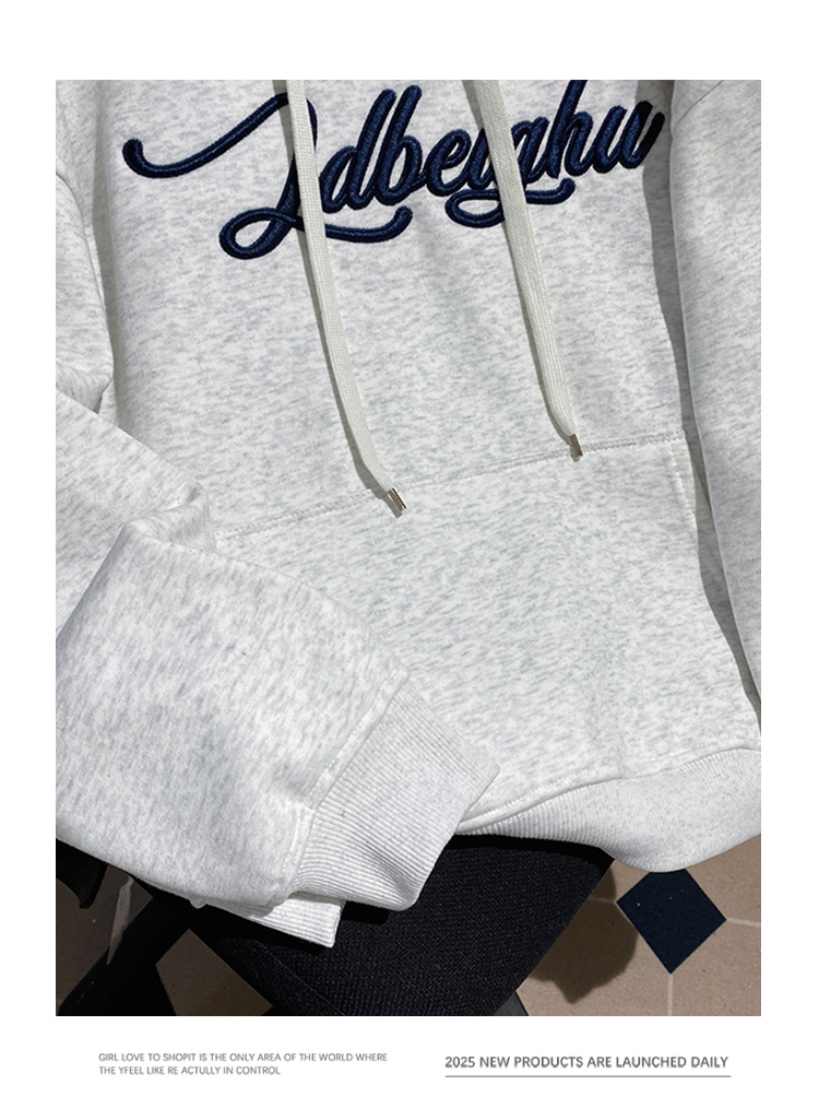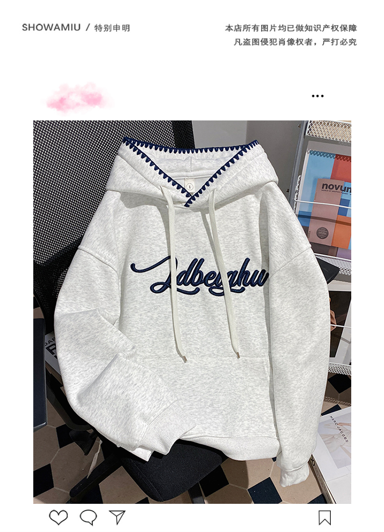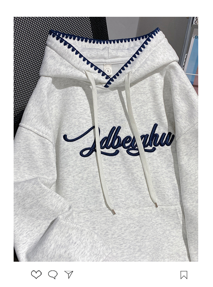 实拍纯棉华棉复合真超加绒秋冬新款刺绣宽松圆领韩版上衣女装
