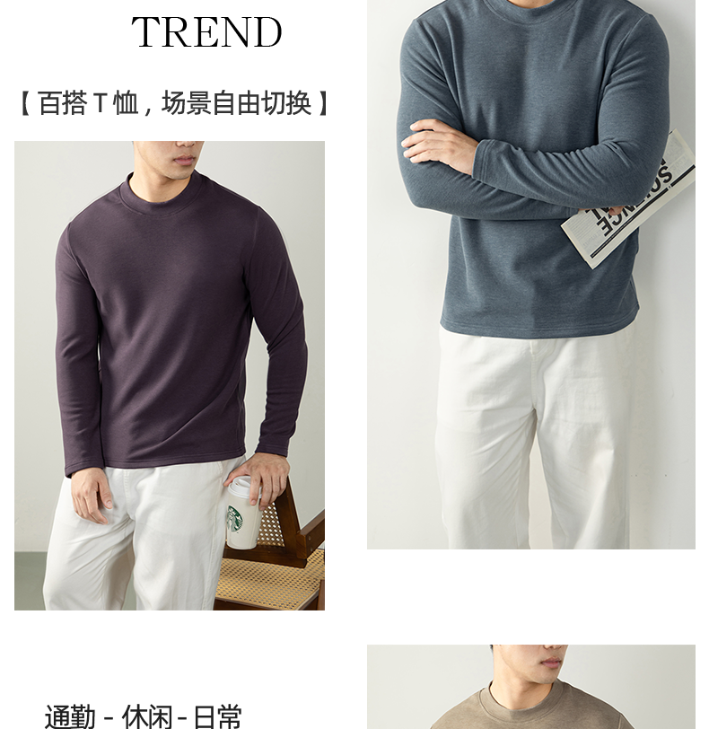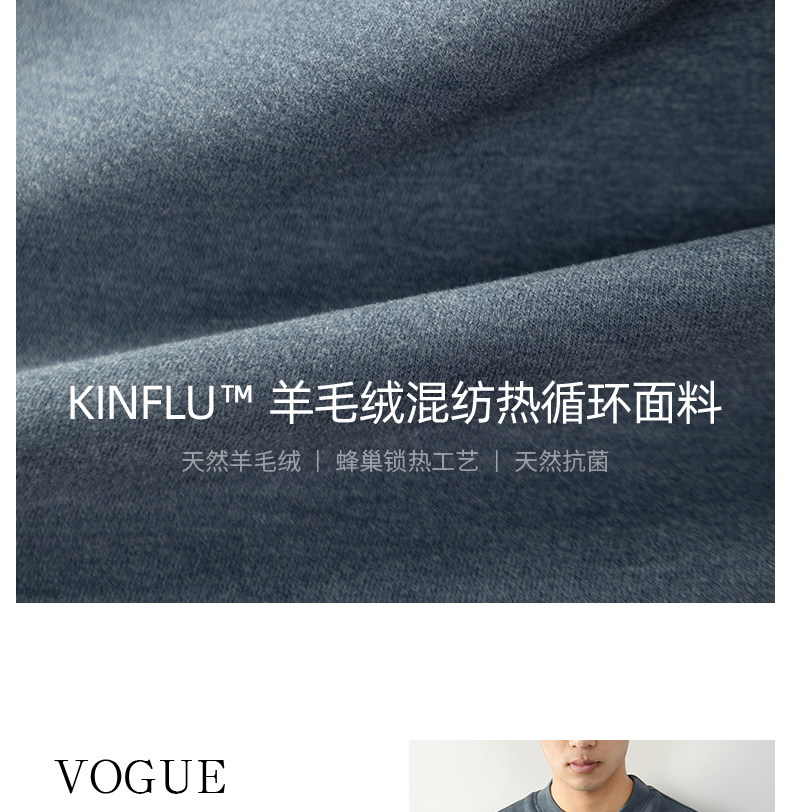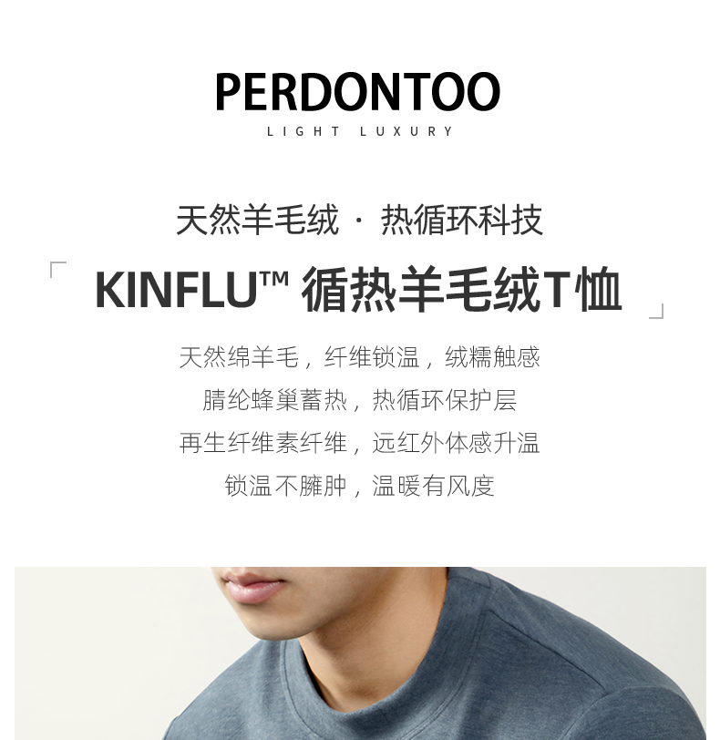 KINFLU热循环羊毛绒长袖T恤男加厚保暖一体绒打底衫高端轻商务