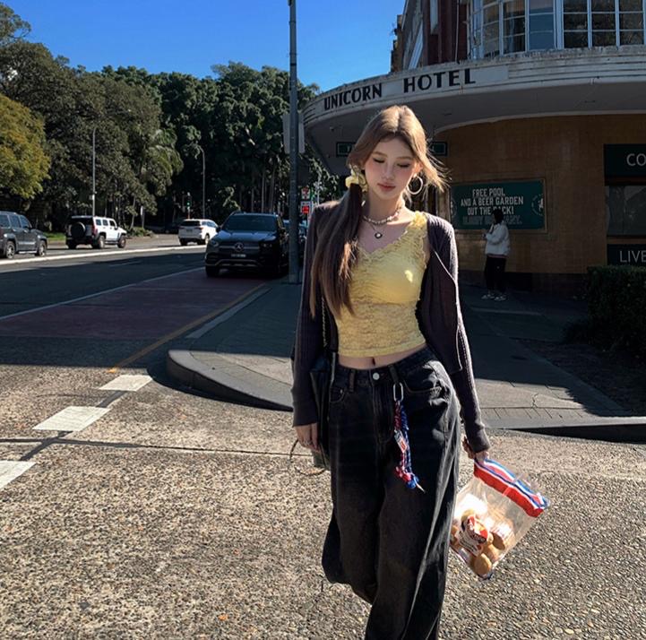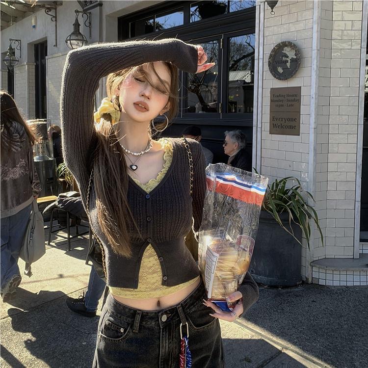 早秋季新款针织长袖纯欲性感辣妹针织女秋v领长袖针织开衫