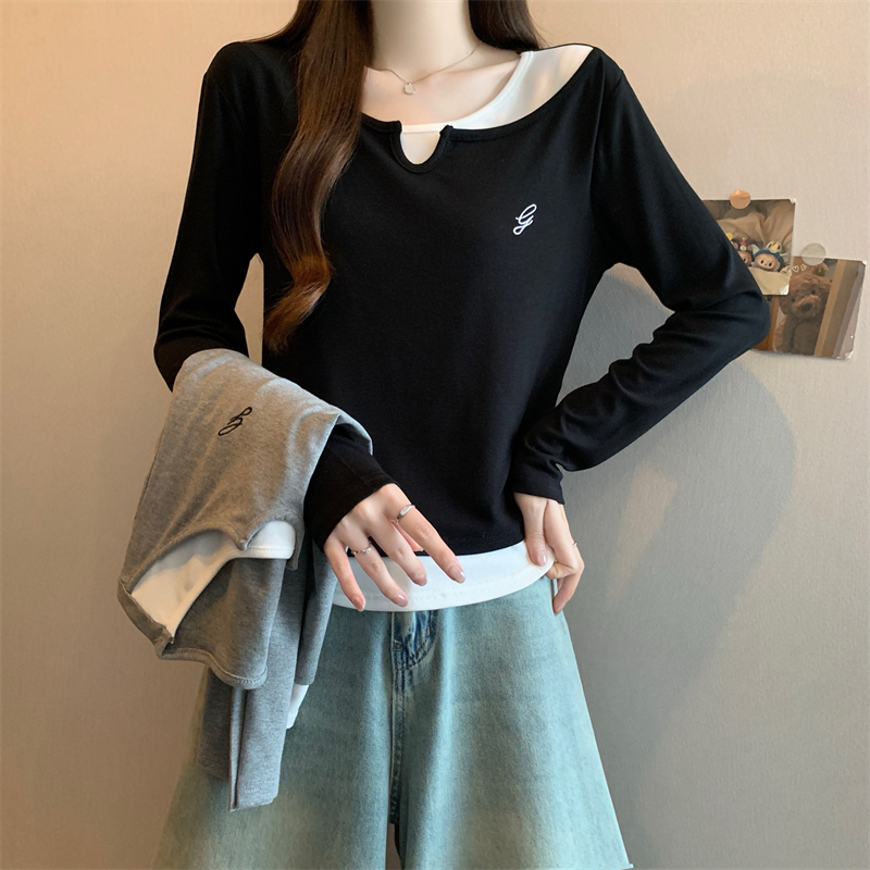 实拍炸街抖音质量原版辅料纯棉220克长袖原版t恤女潮上衣大码女装