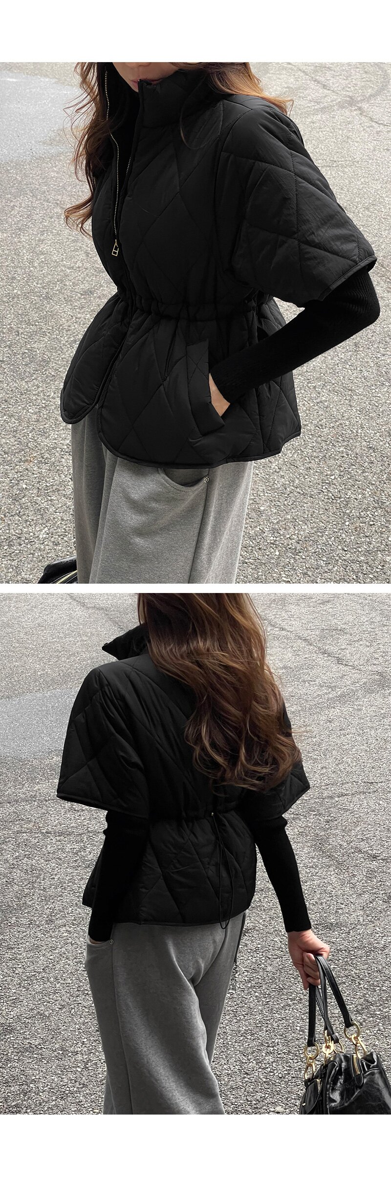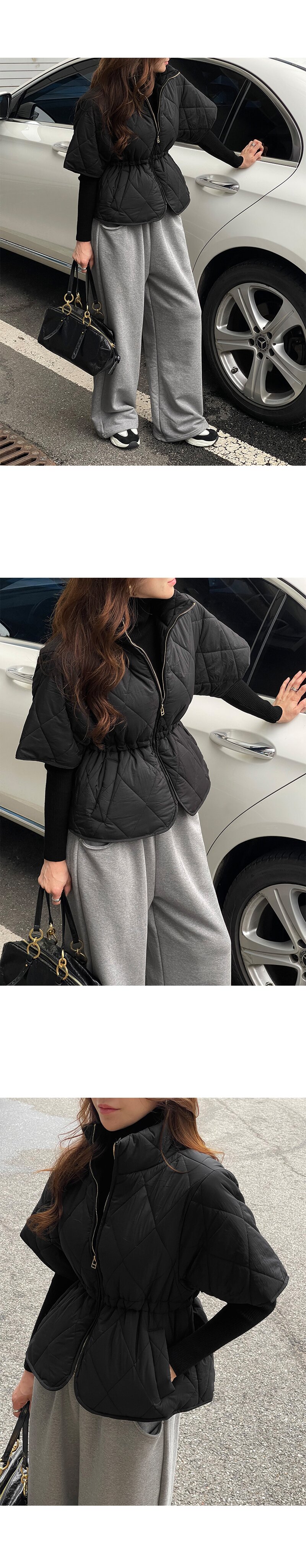 韩式气质菱格夹棉马甲外套
