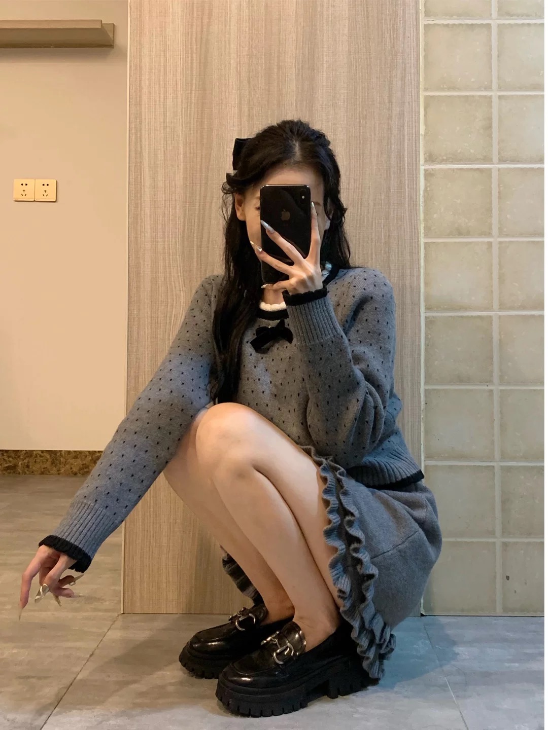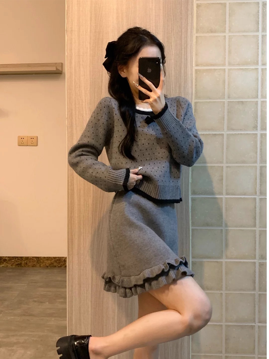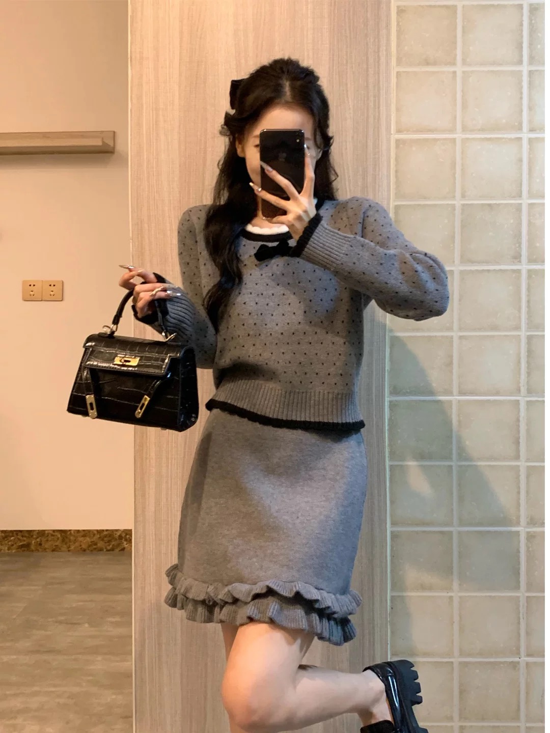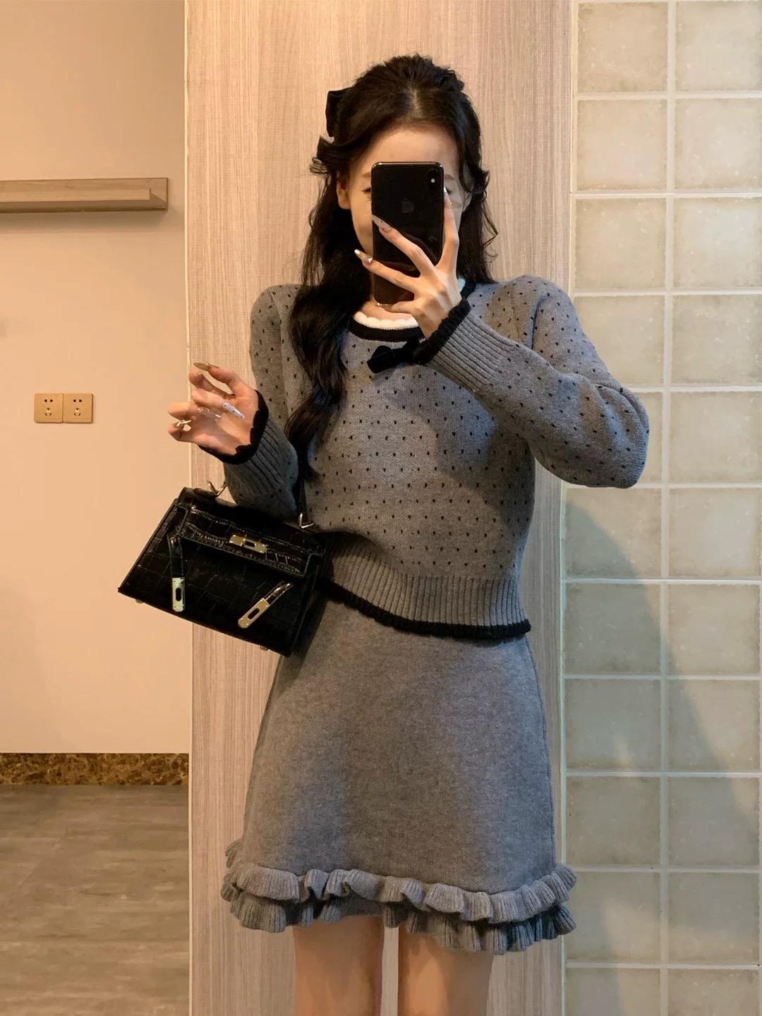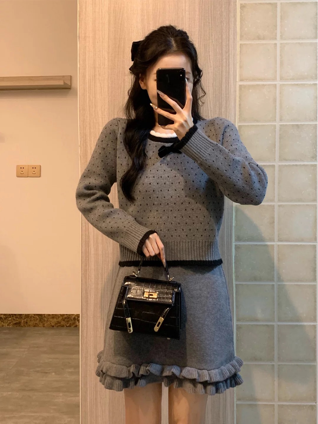 巨好看的秋冬韩系一整套小个子灰色毛衣半身裙子小香风套装女冬季