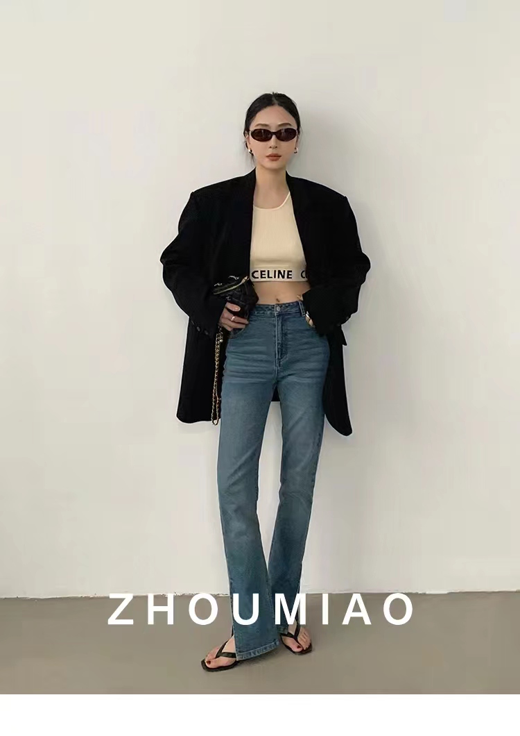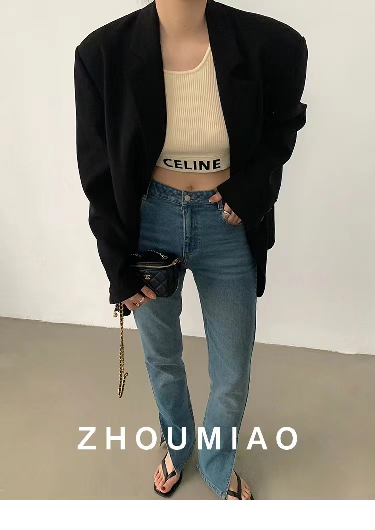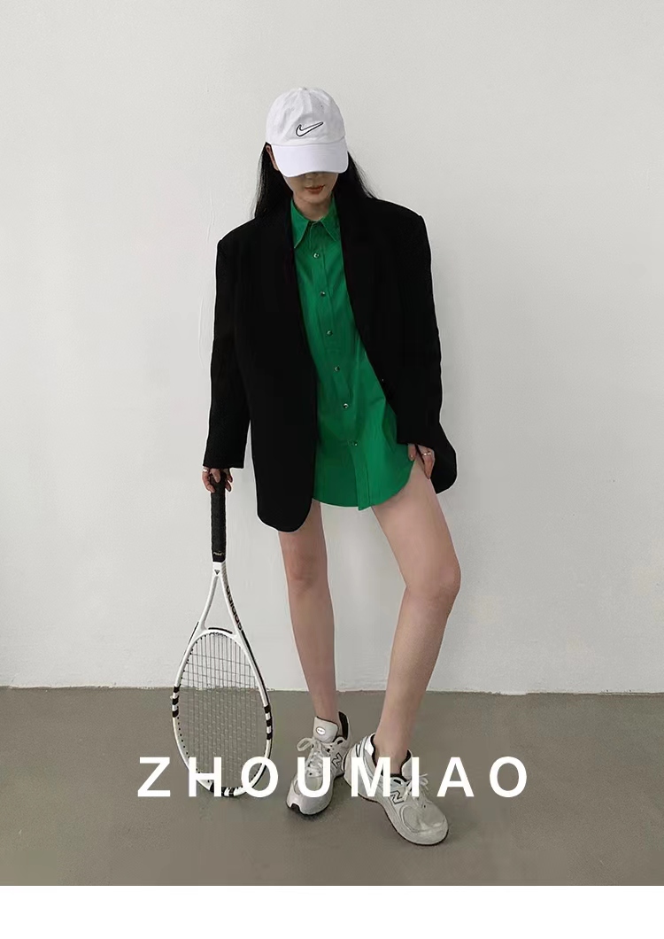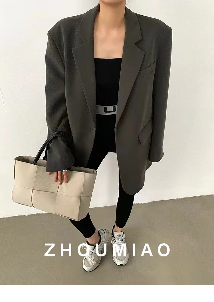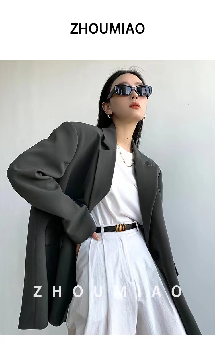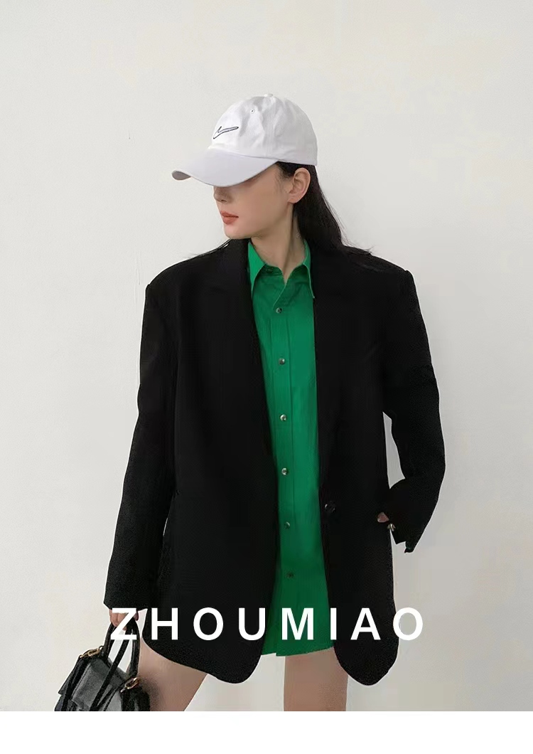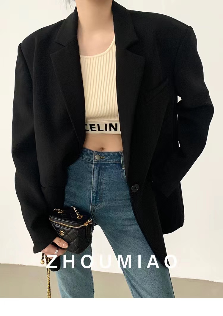 周淼zhoumiao2026春秋新款高级设计感女士黑色休闲小西装外套女