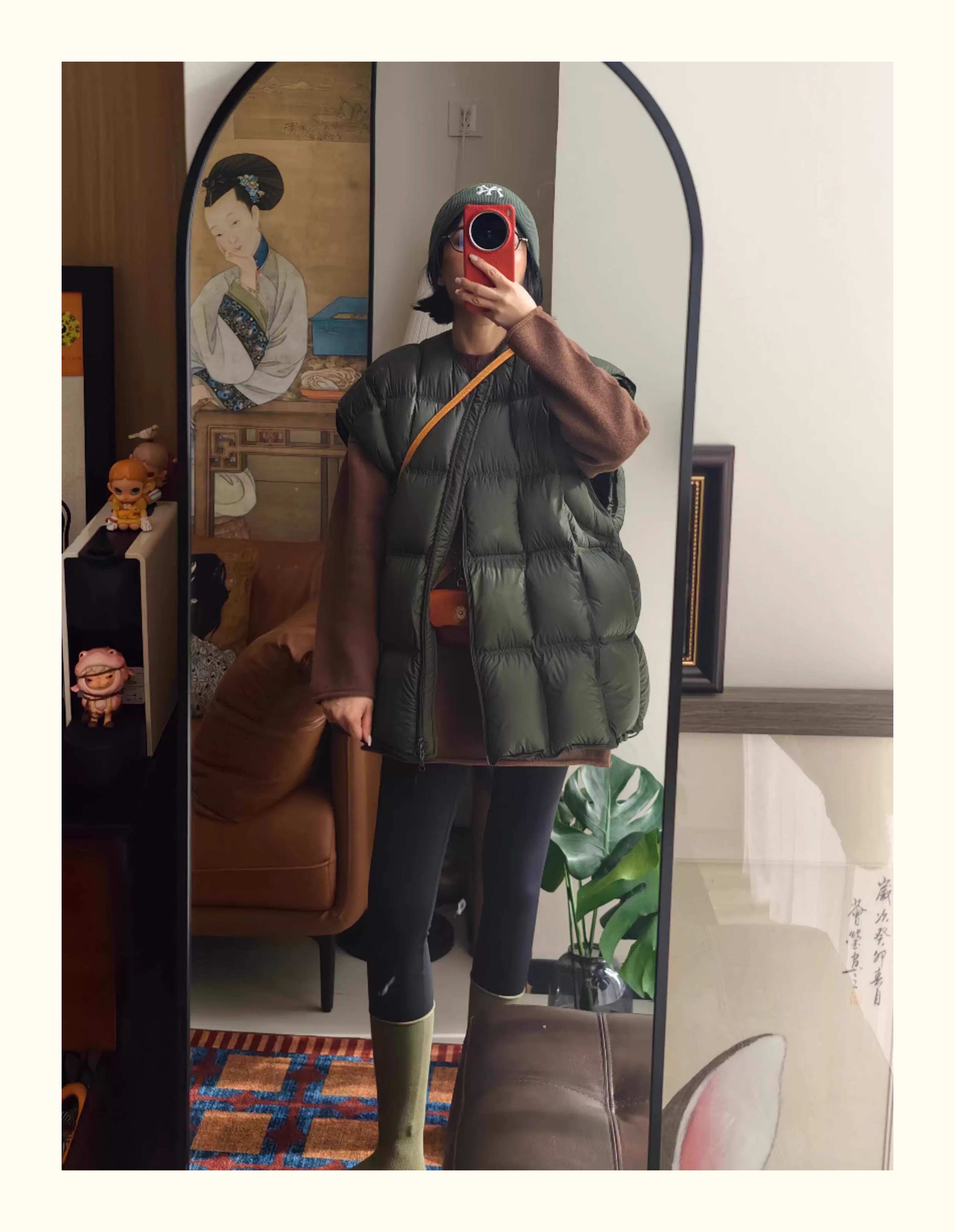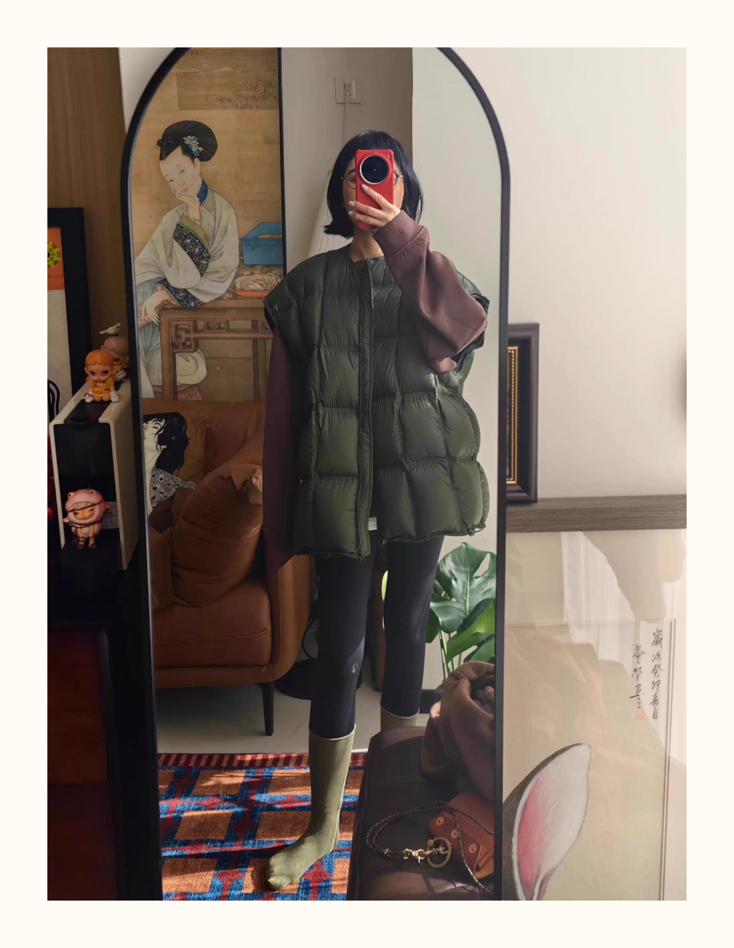 官图 深冬独特棉服马甲女款2025新款复古军绿色宽松无袖夹棉外套