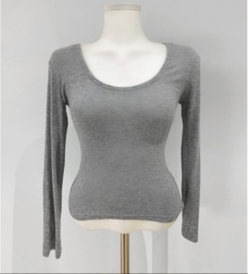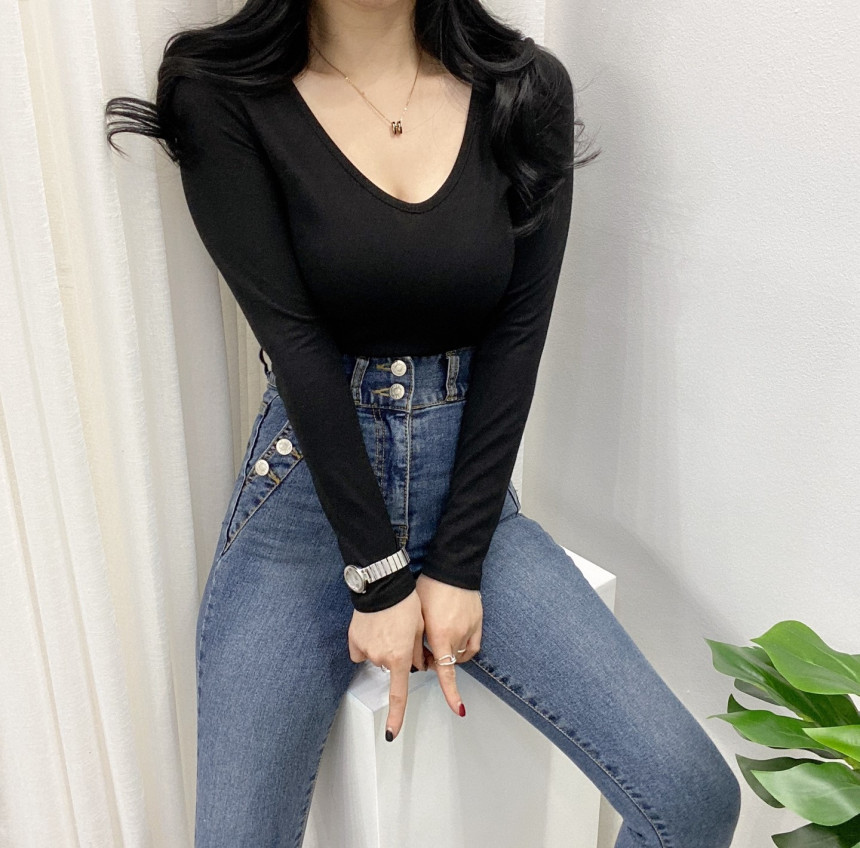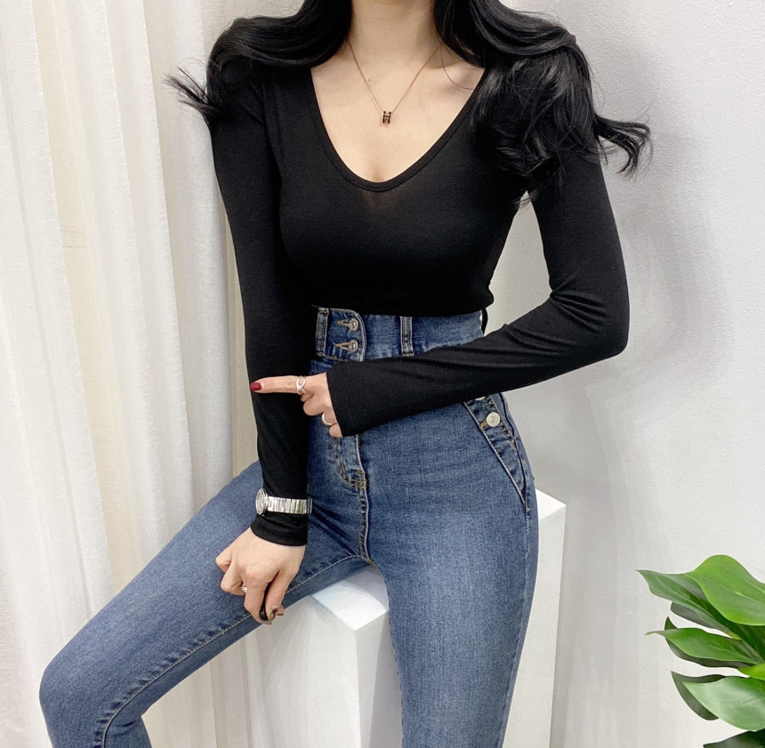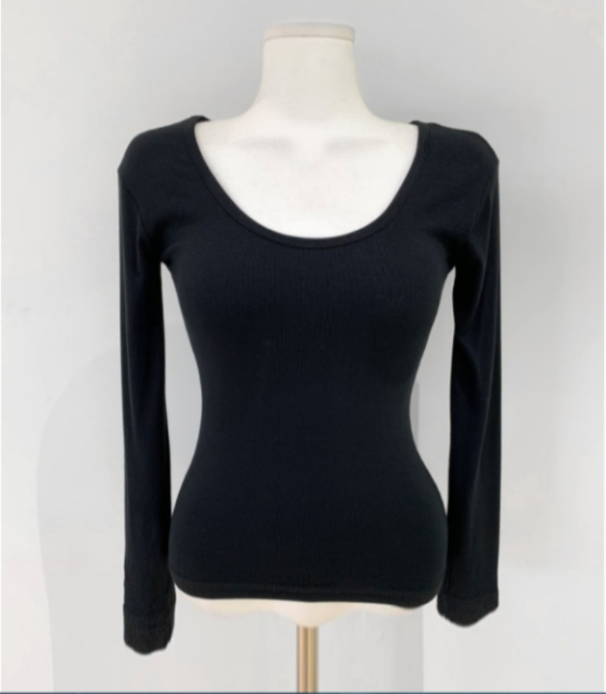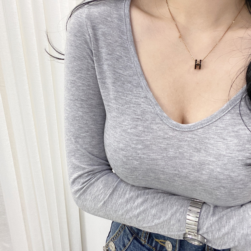 有货 Korea 洋气百搭弹力打底修身显瘦内搭长袖T恤上衣~前后两穿