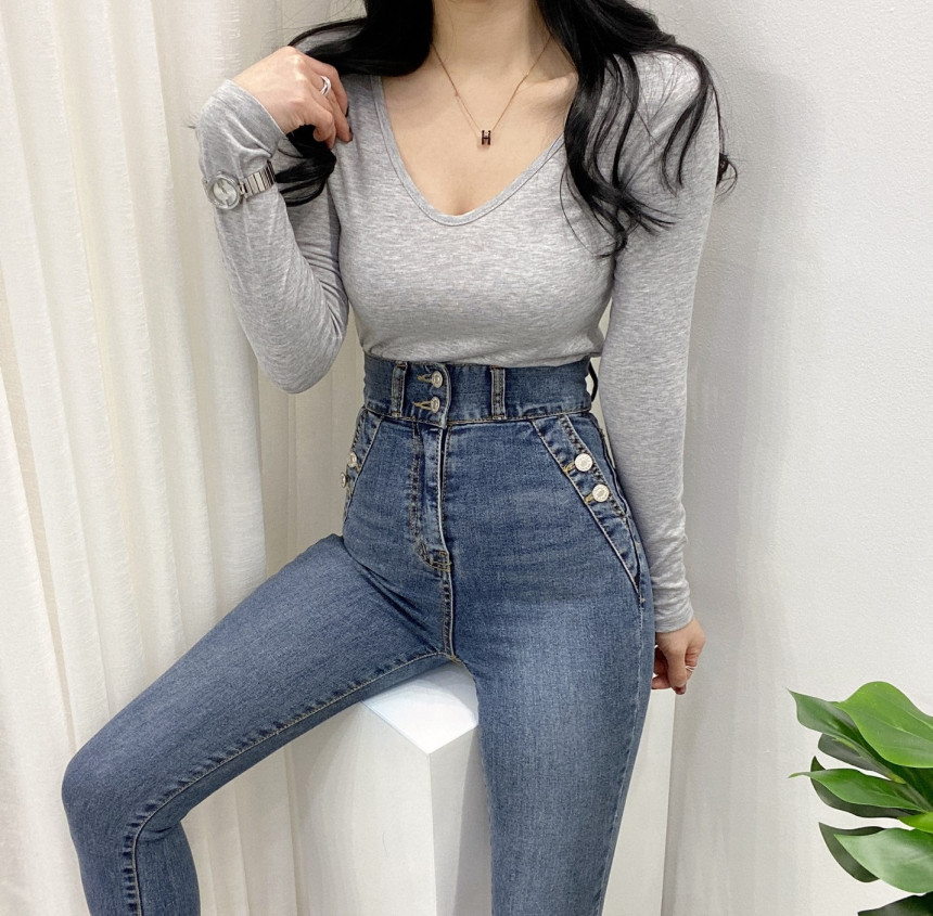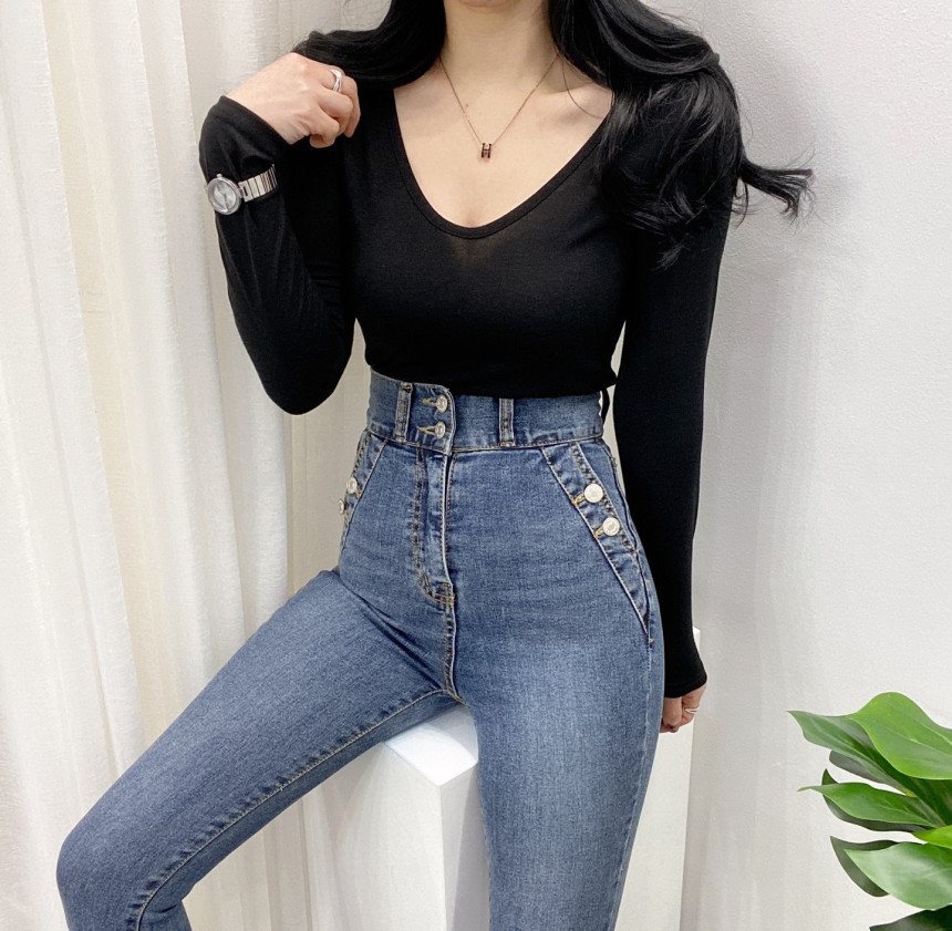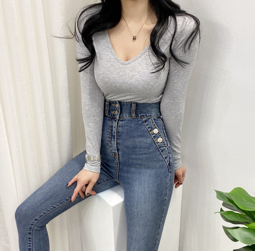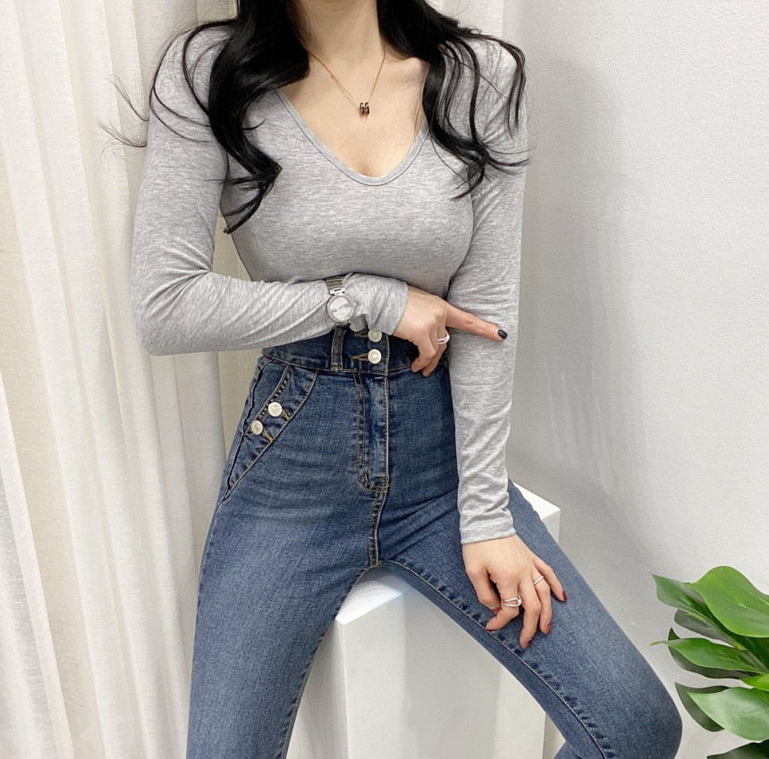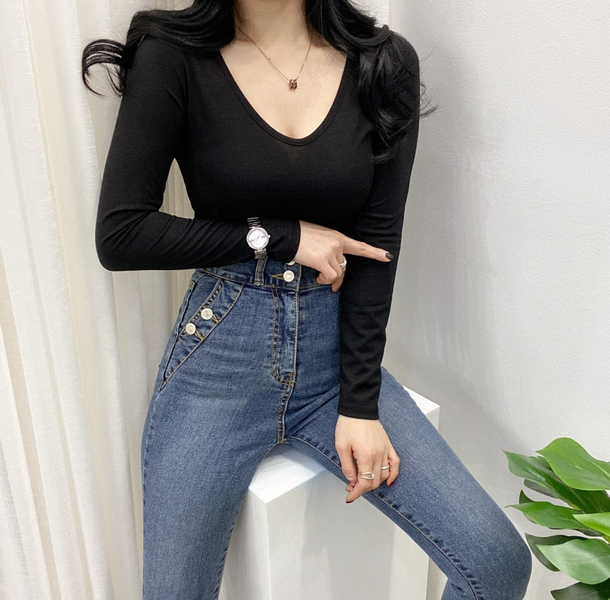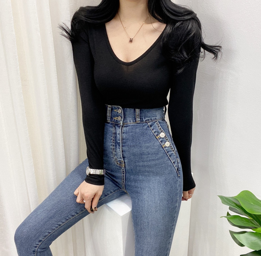 有货 Korea 洋气百搭弹力打底修身显瘦内搭长袖T恤上衣~前后两穿