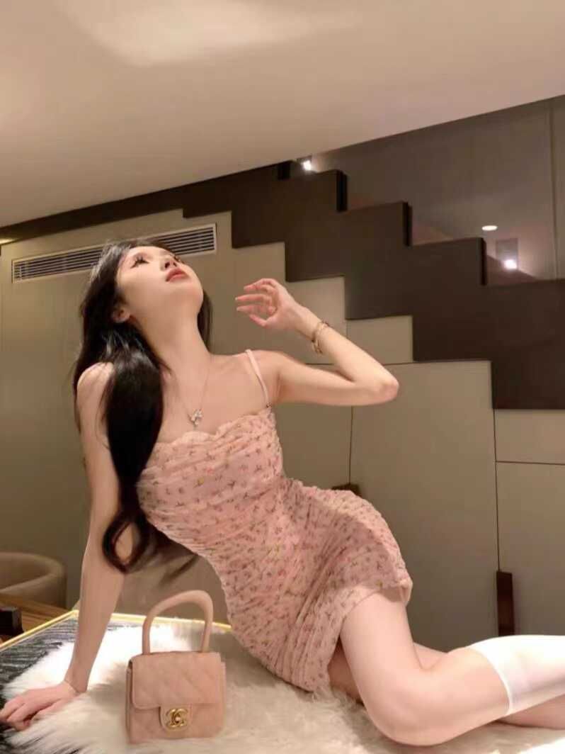 已出货 清新碎花褶皱网纱设计感小众茶歇连衣裙显瘦包臀吊带裙