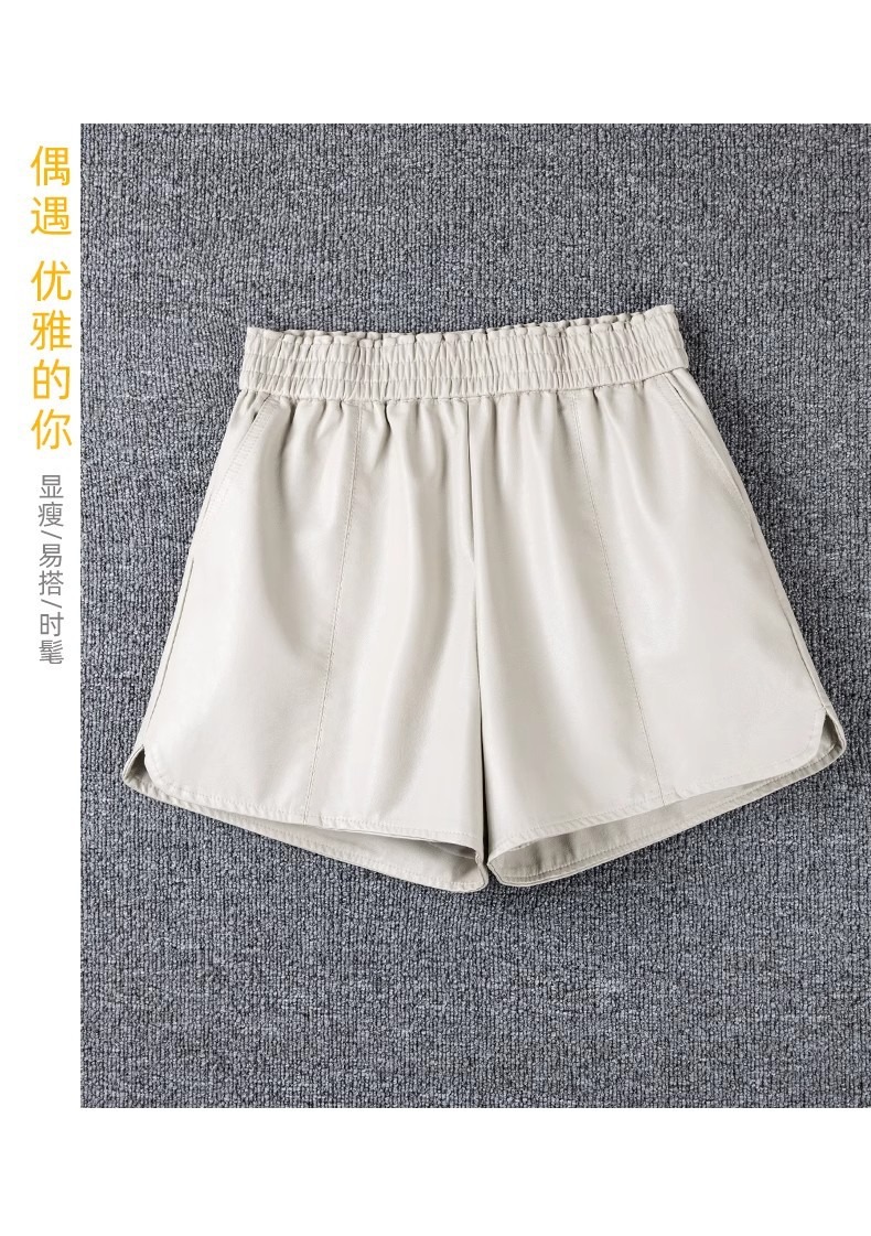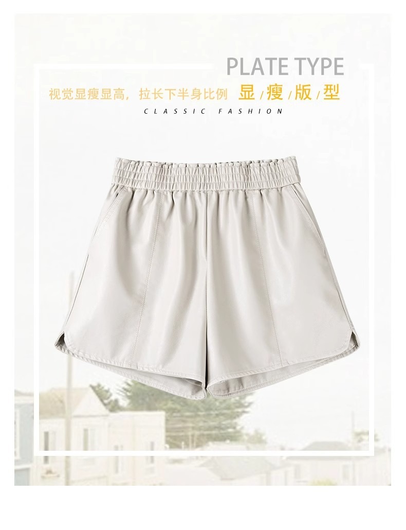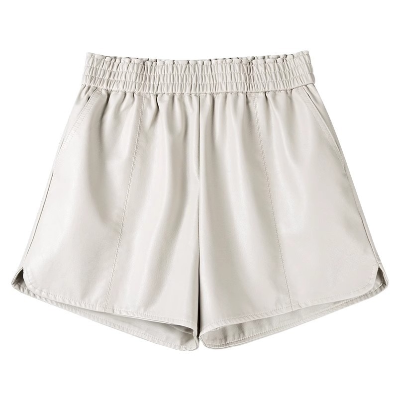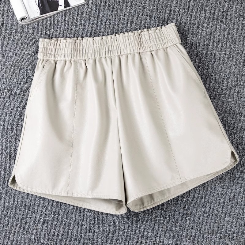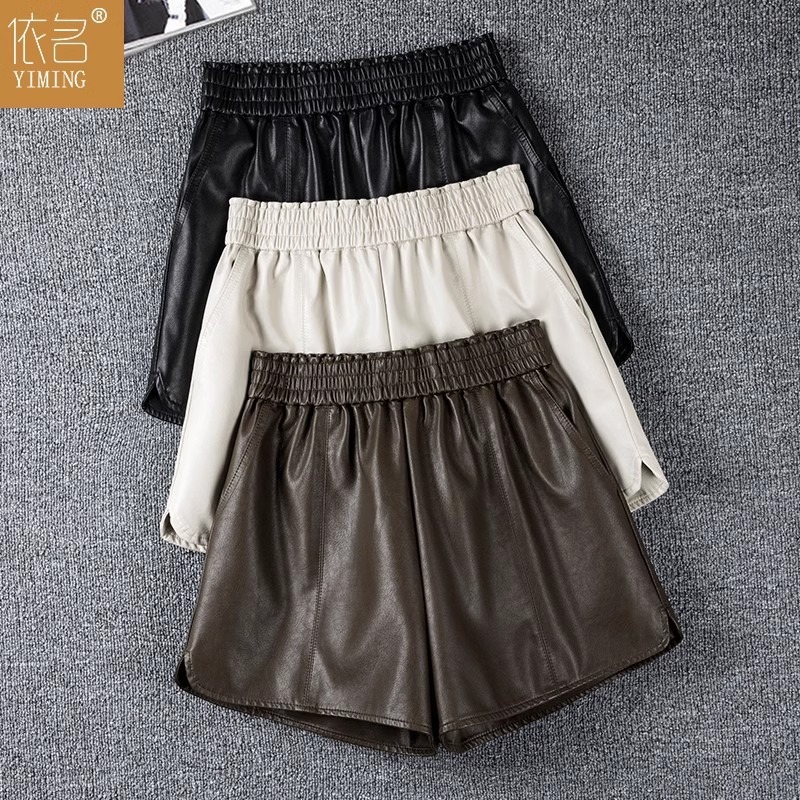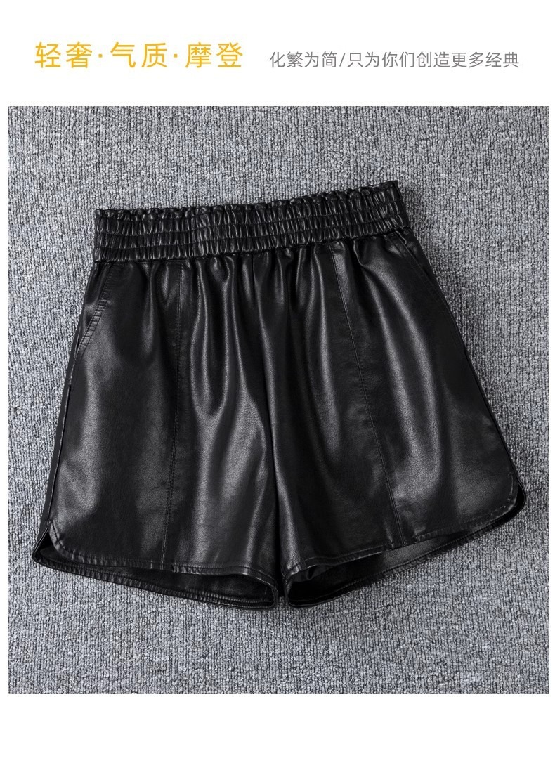 休闲短裤女春秋外穿松紧腰高腰显瘦a字阔腿pu皮裤小个子打底靴裤
