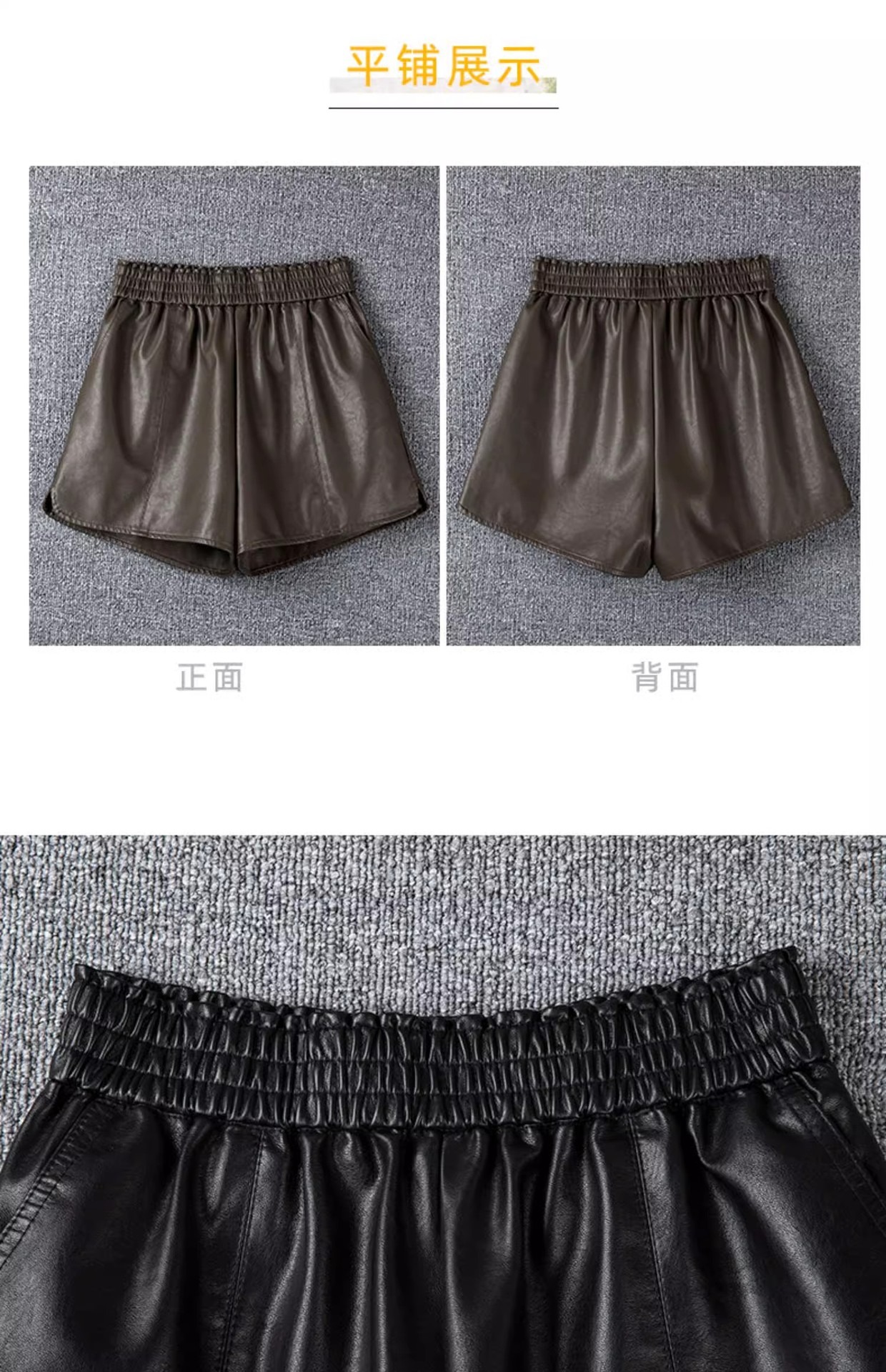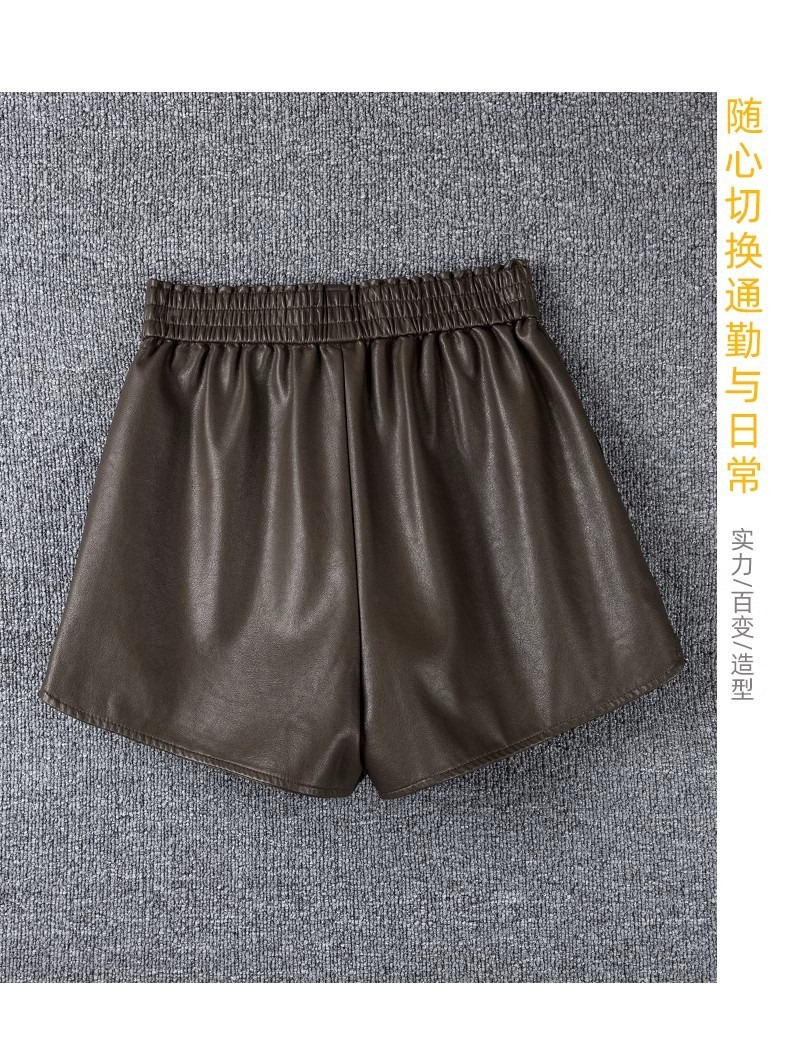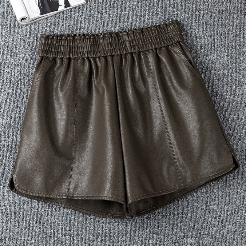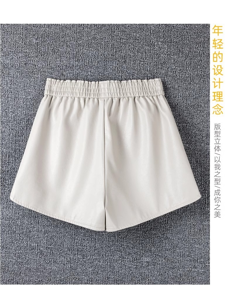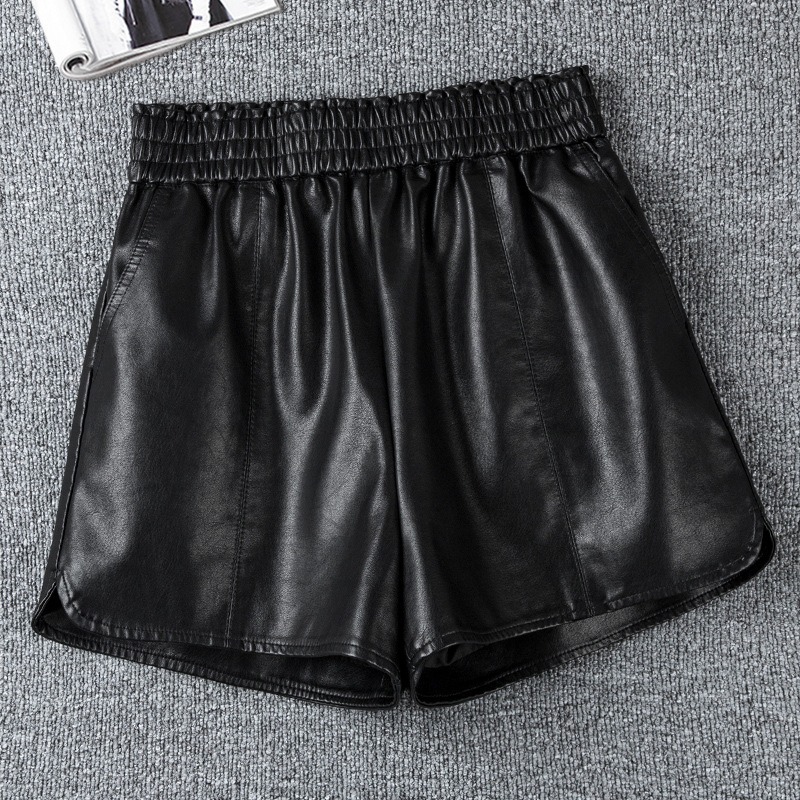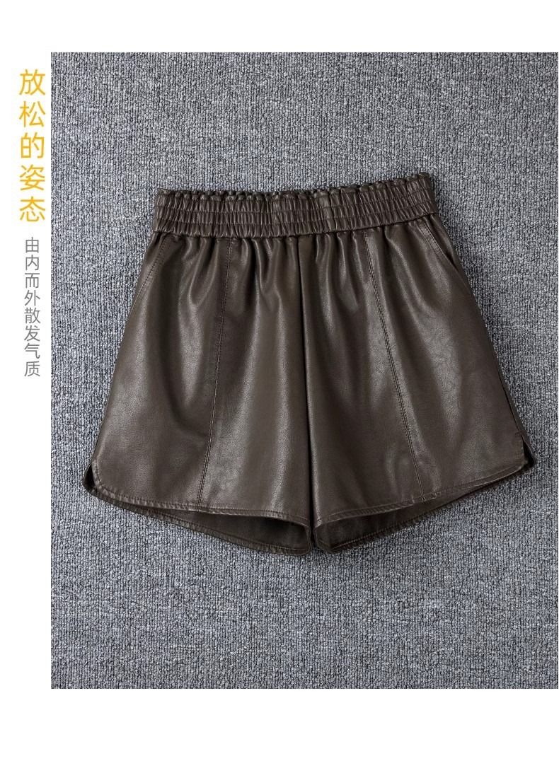 休闲短裤女春秋外穿松紧腰高腰显瘦a字阔腿pu皮裤小个子打底靴裤