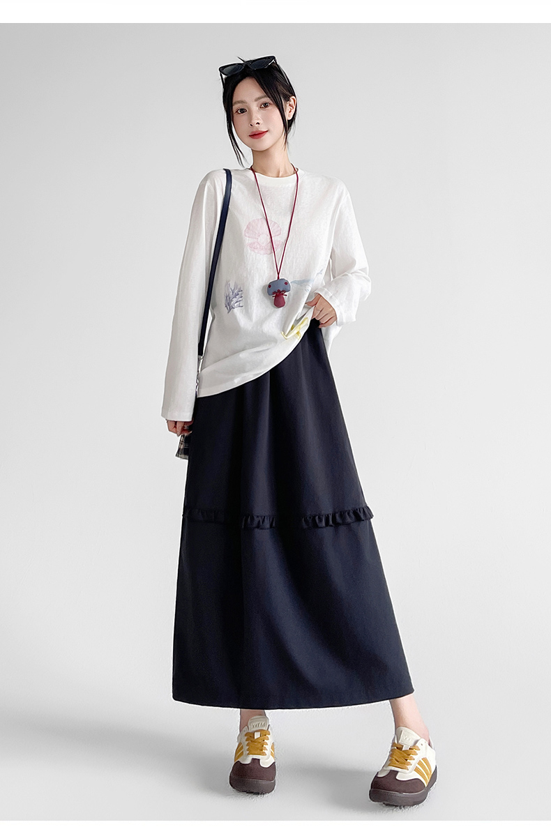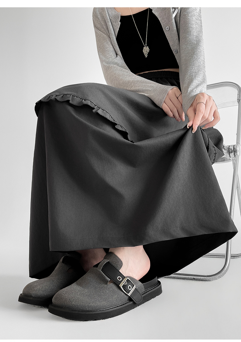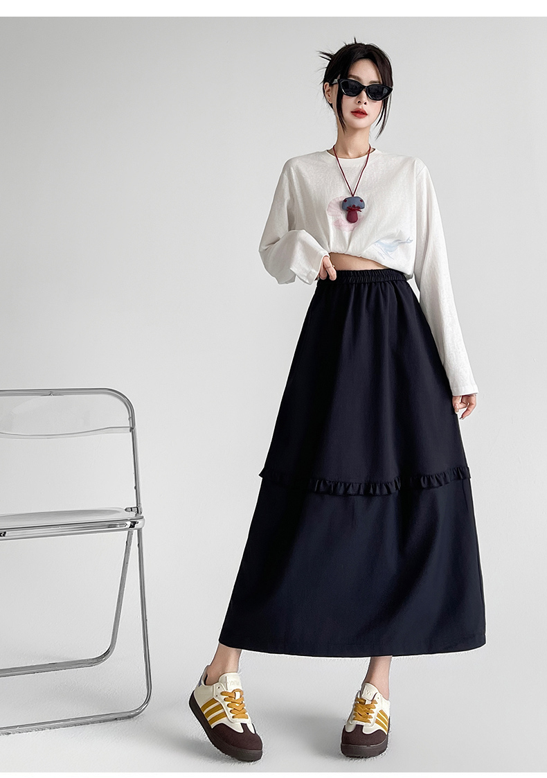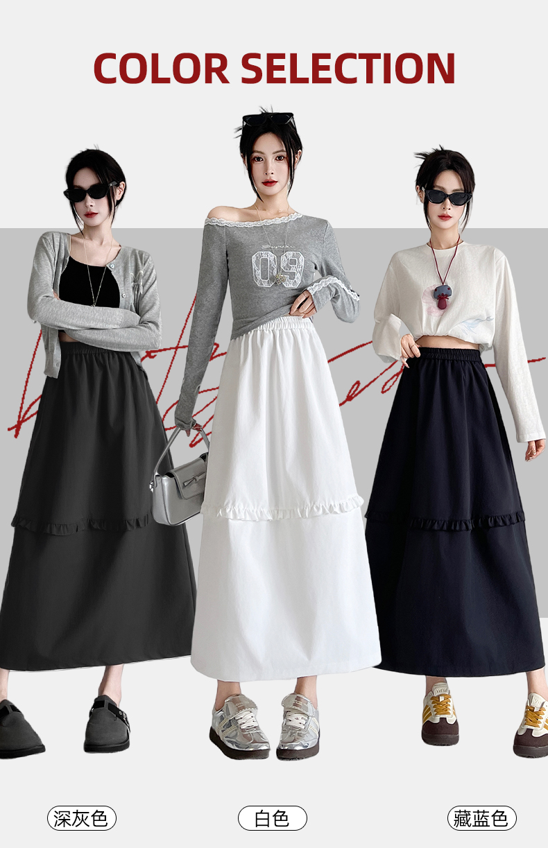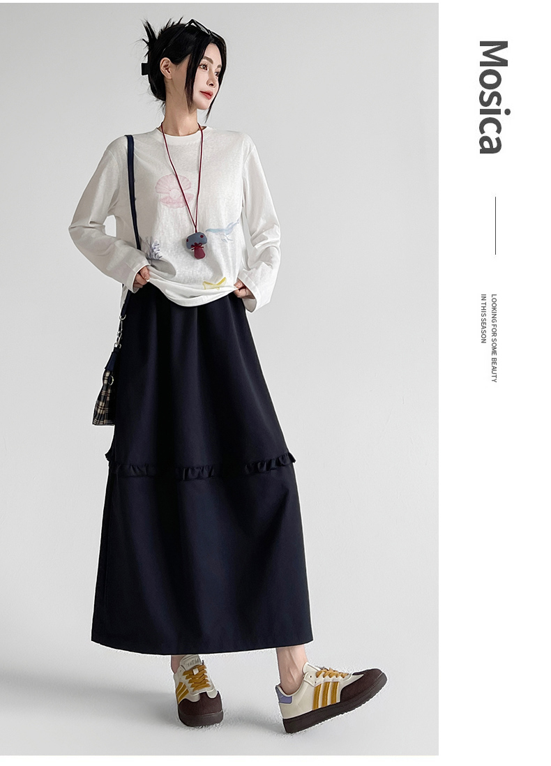 韩系复古花边设计显瘦花苞半身裙女2025秋季新款松紧腰百搭中长裙