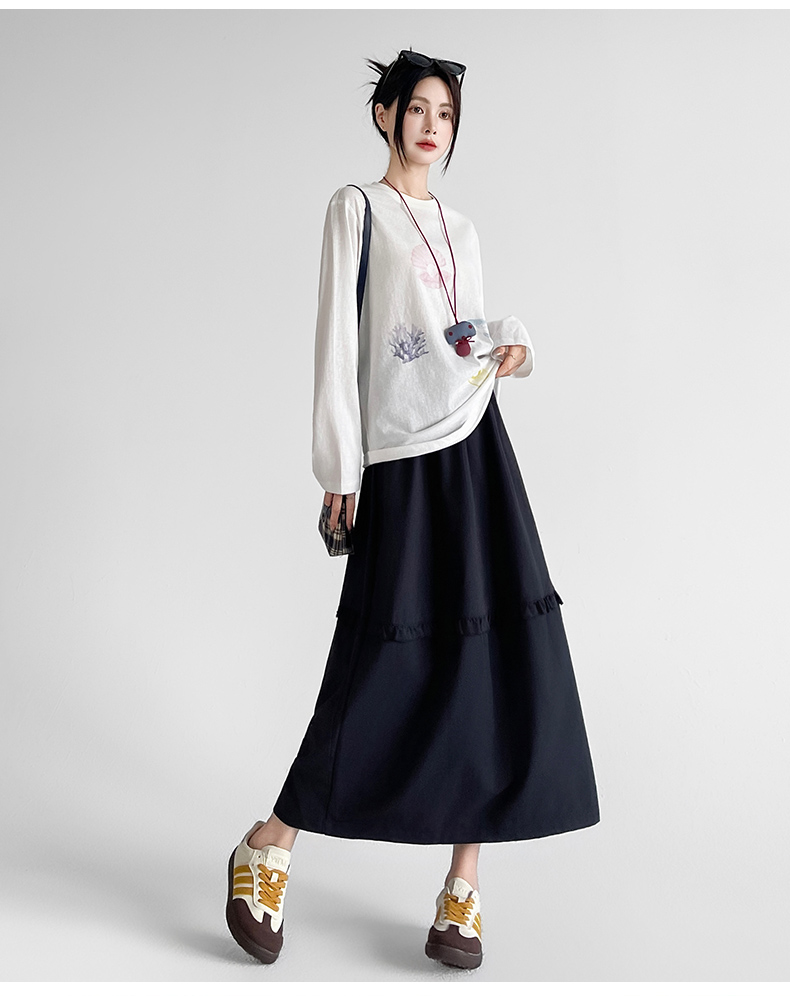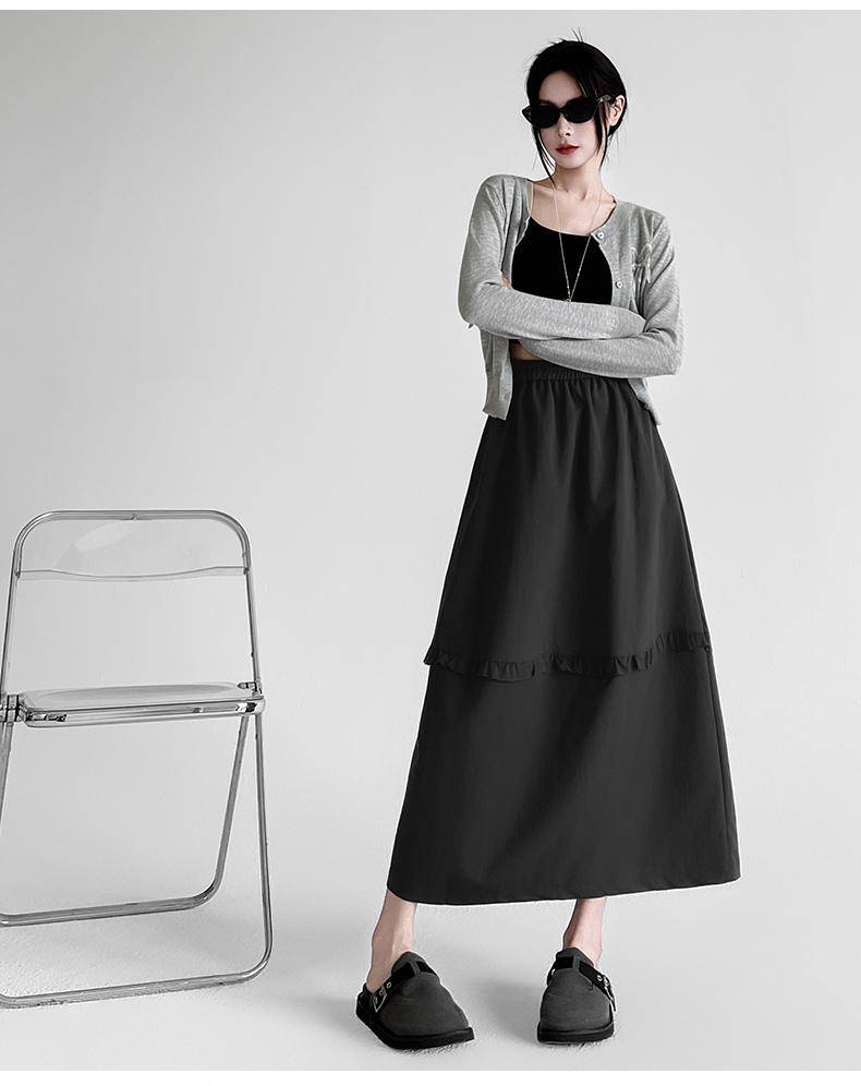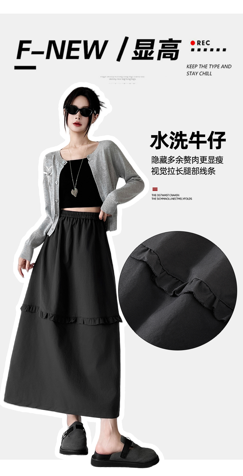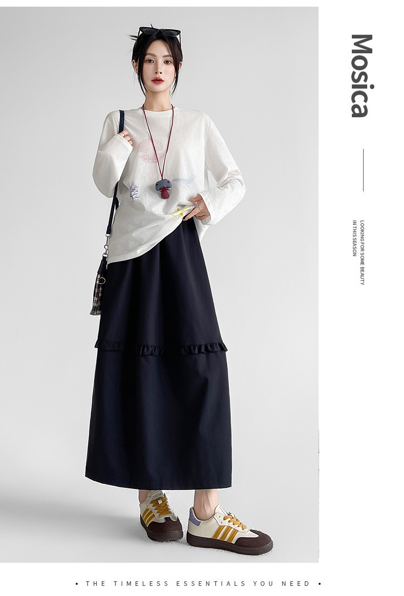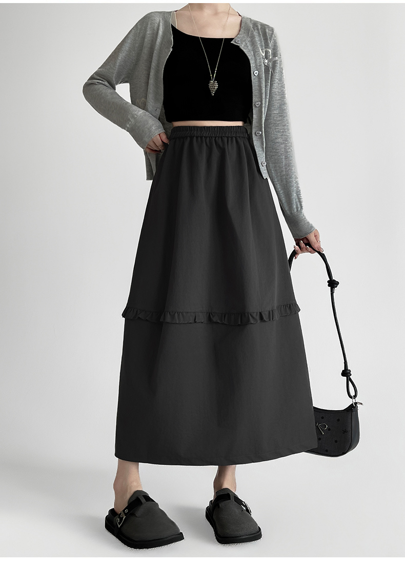 韩系复古花边设计显瘦花苞半身裙女2025秋季新款松紧腰百搭中长裙