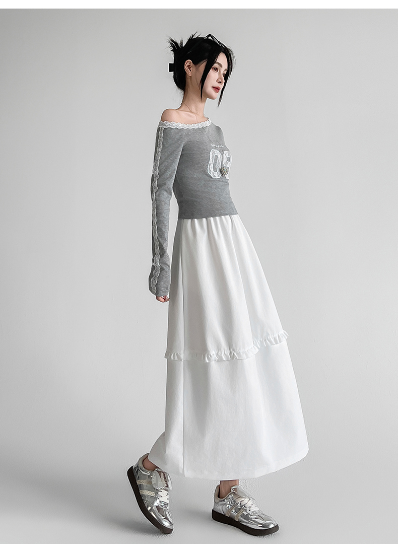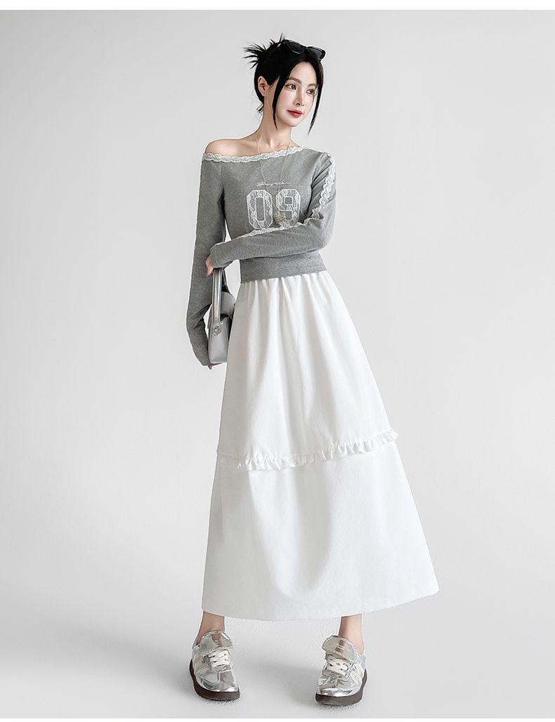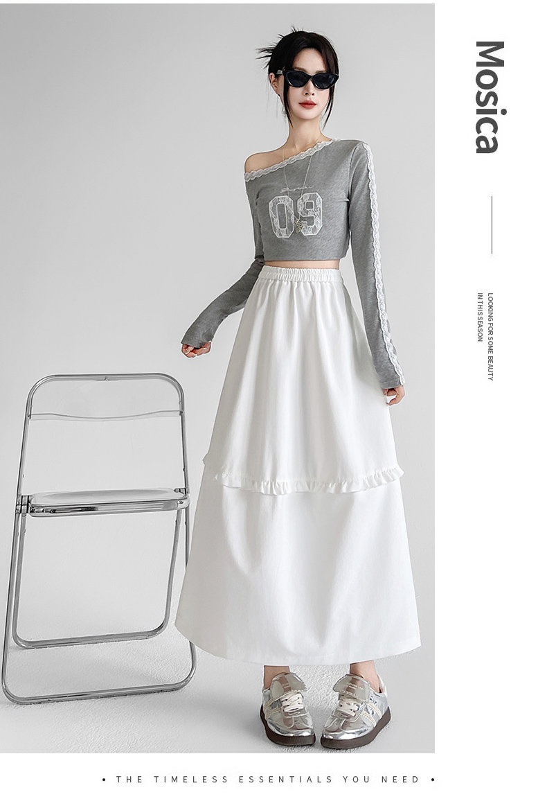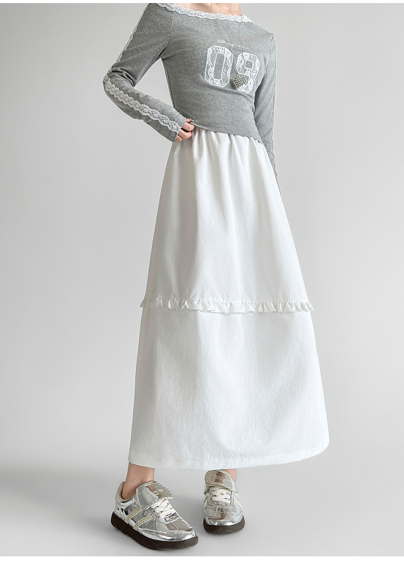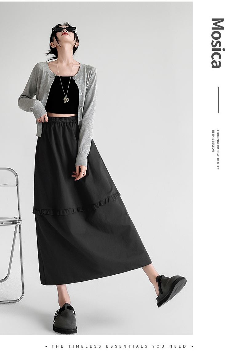 韩系复古花边设计显瘦花苞半身裙女2025秋季新款松紧腰百搭中长裙