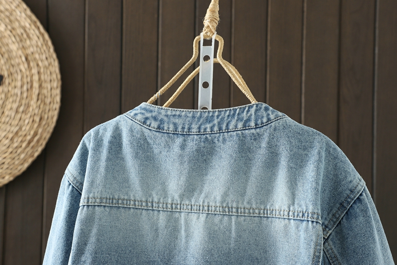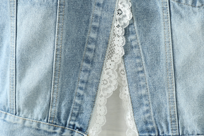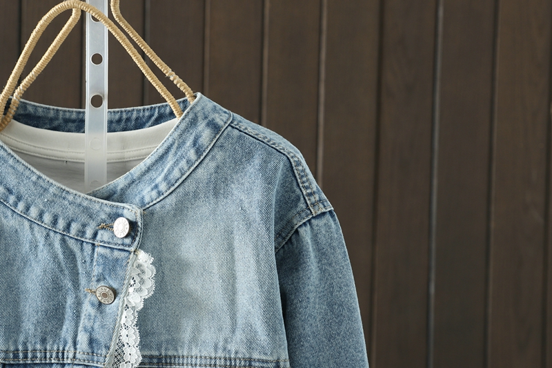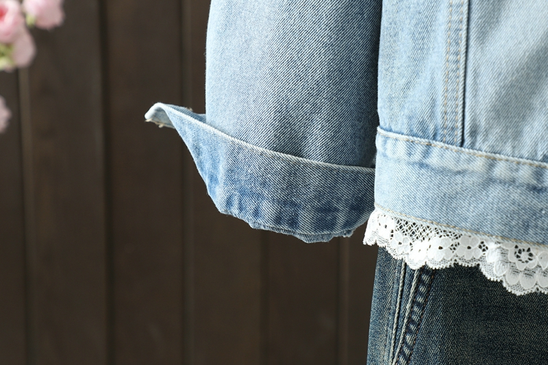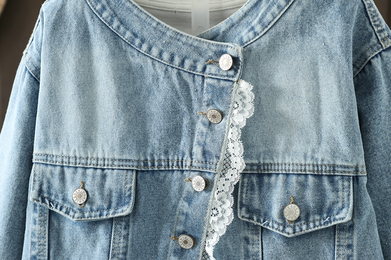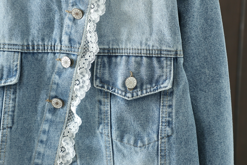 实拍大码显瘦减龄宽松蕾丝花边拼接牛仔外套女