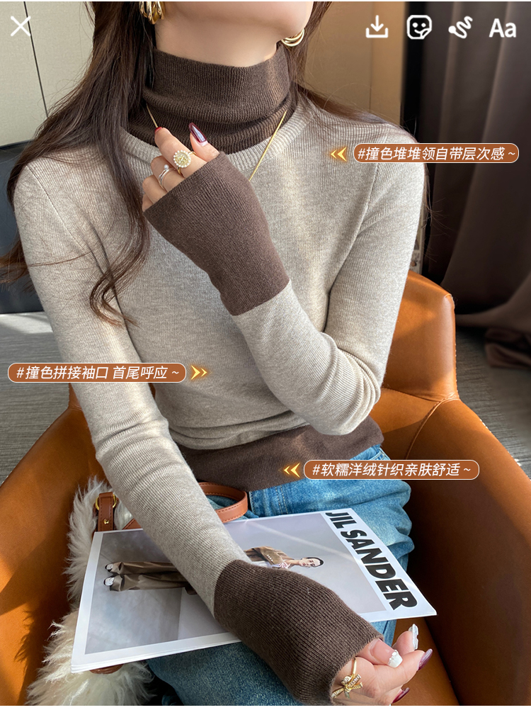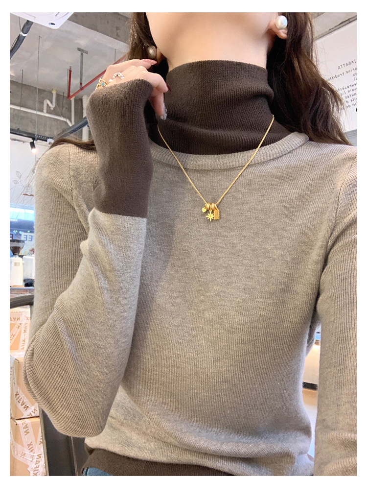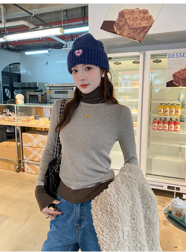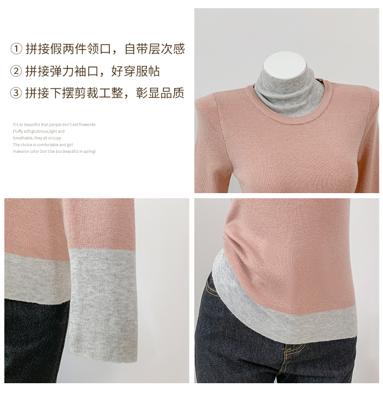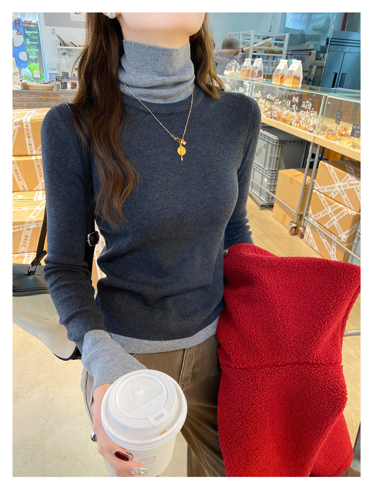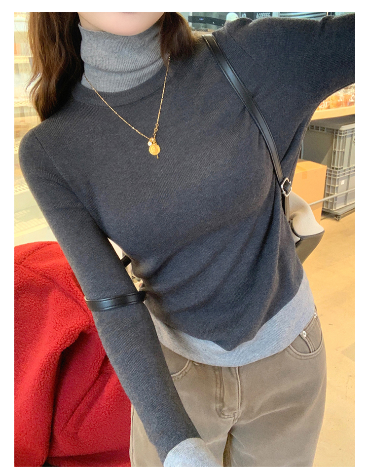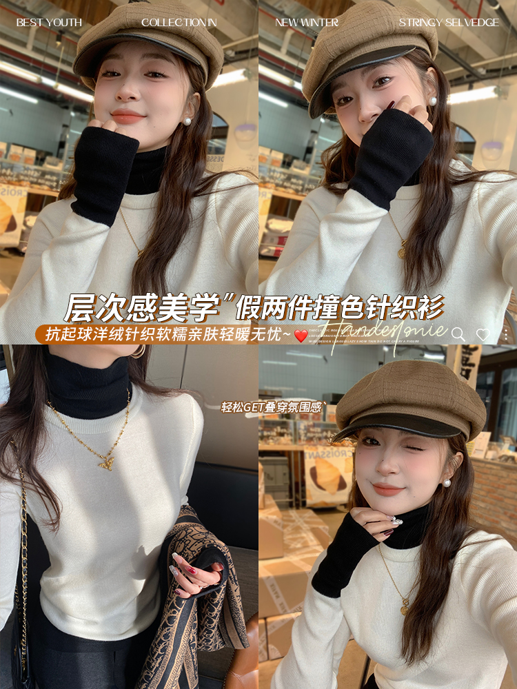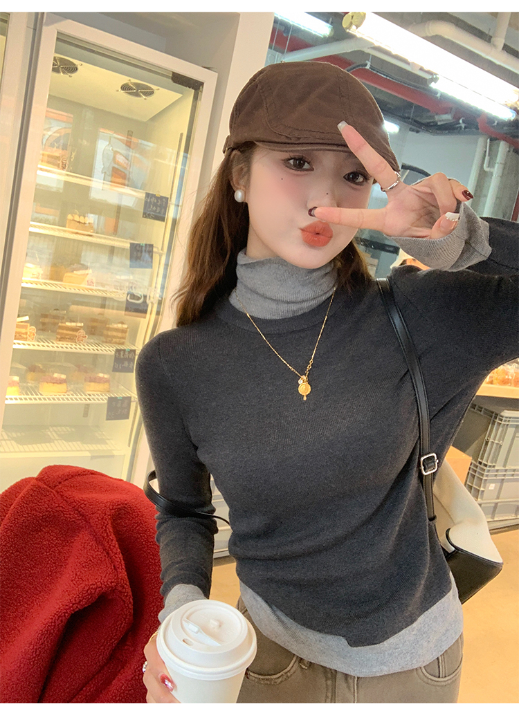 灰色假两件高领针织打底衫女秋冬2025新款高级感毛衣内搭洋气上衣