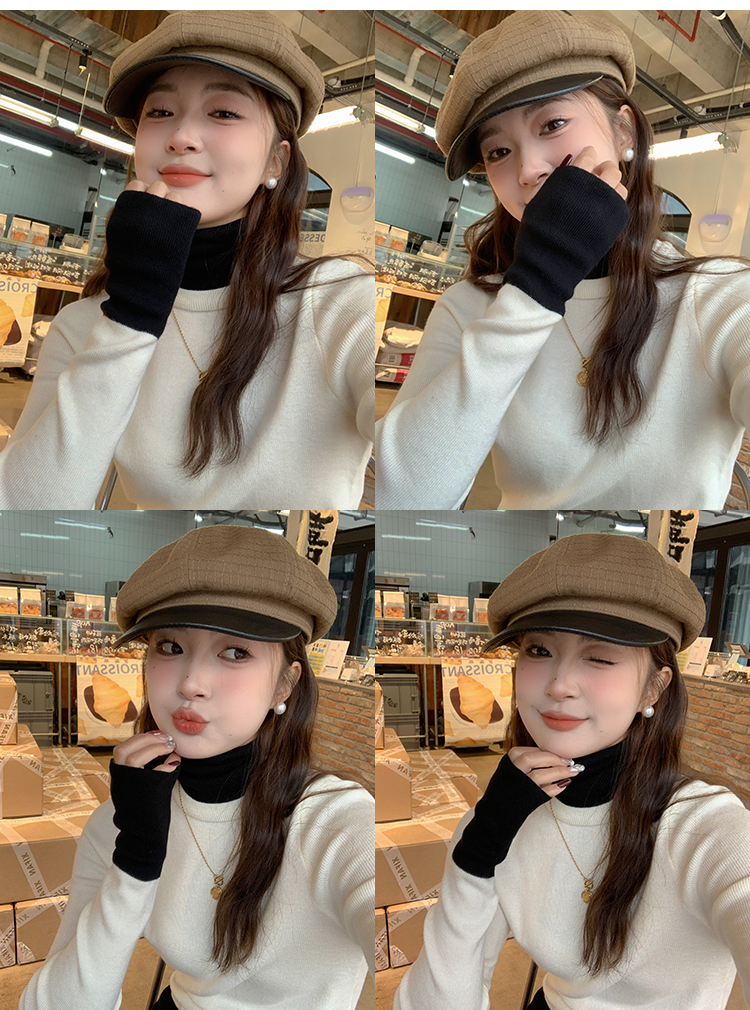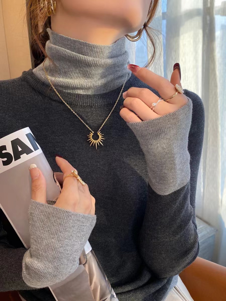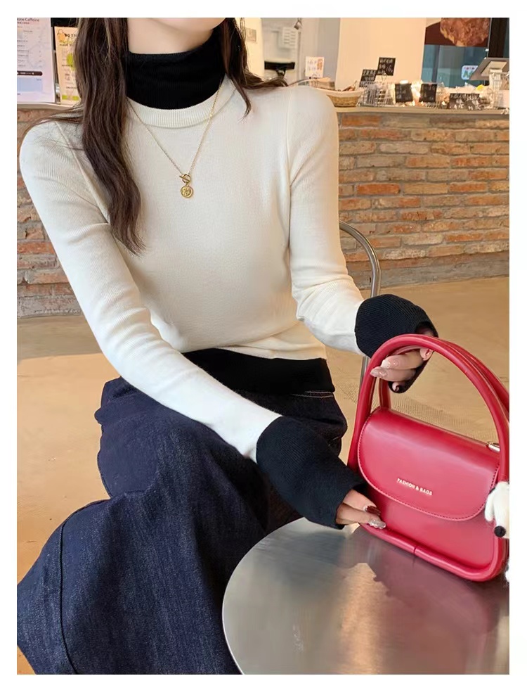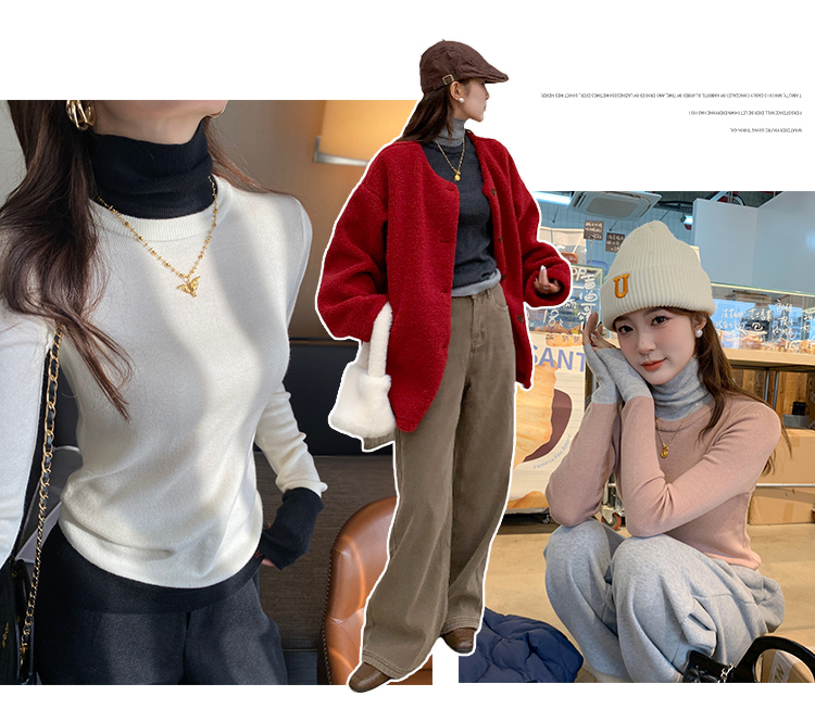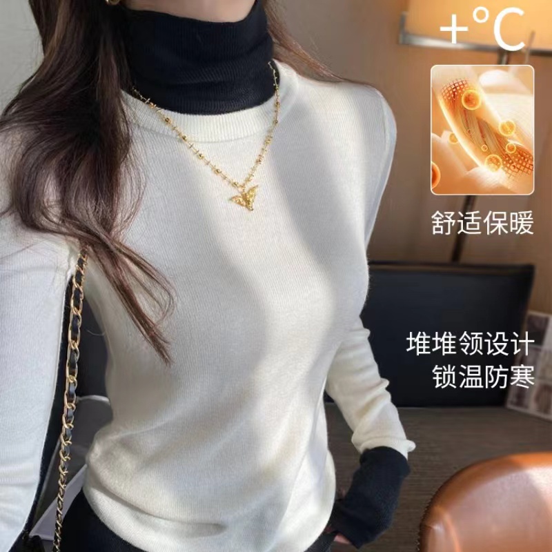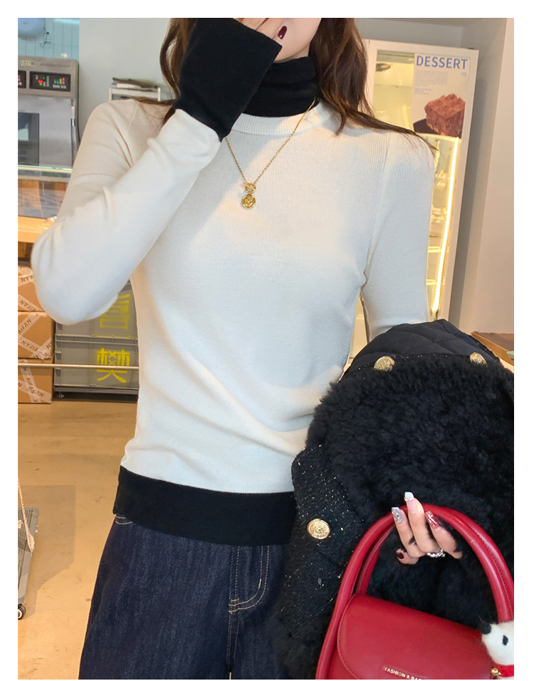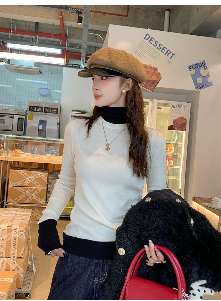 灰色假两件高领针织打底衫女秋冬2025新款高级感毛衣内搭洋气上衣