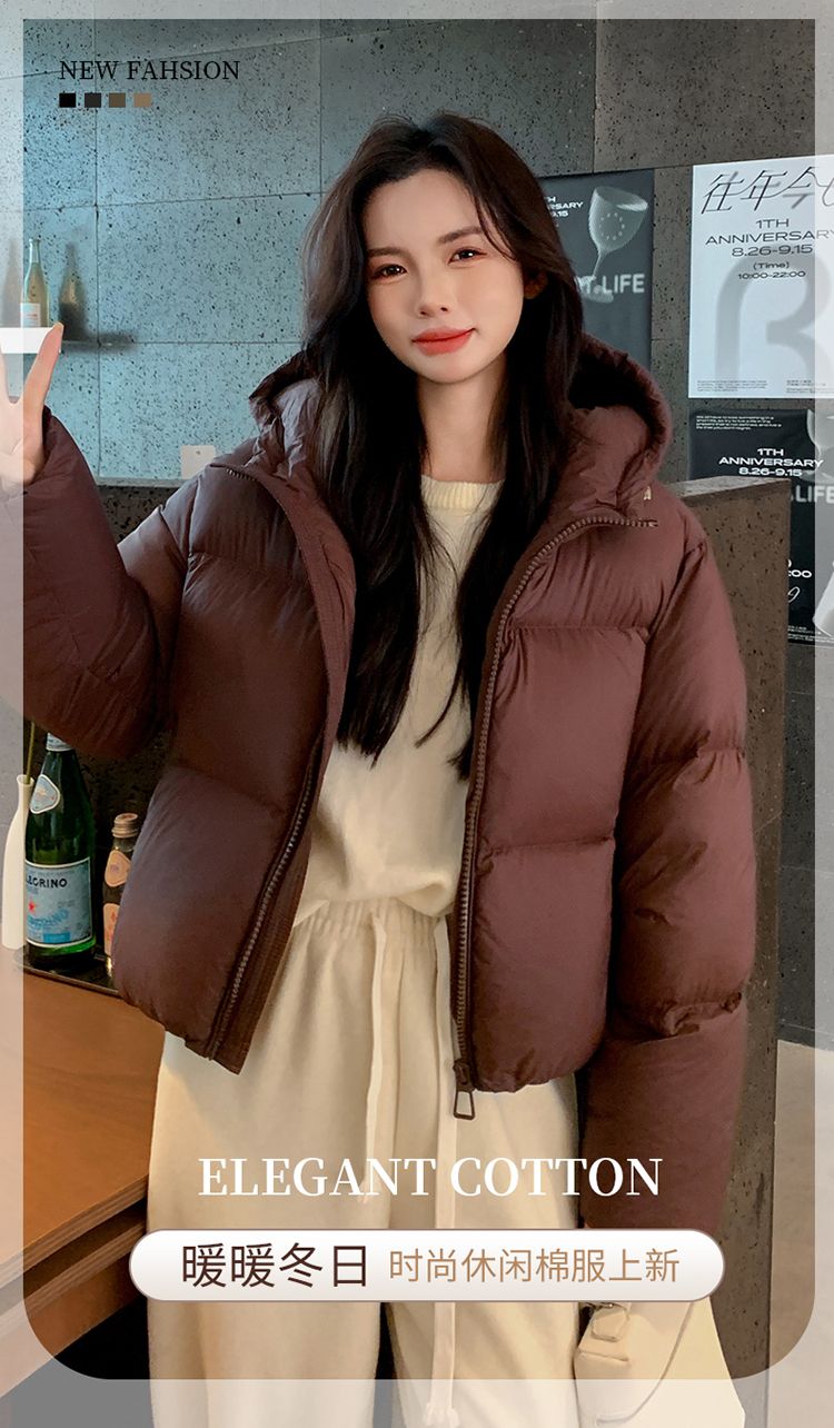 高级设计感2025年冬季新款韩版简约休闲时尚短款连帽棉服保暖外套