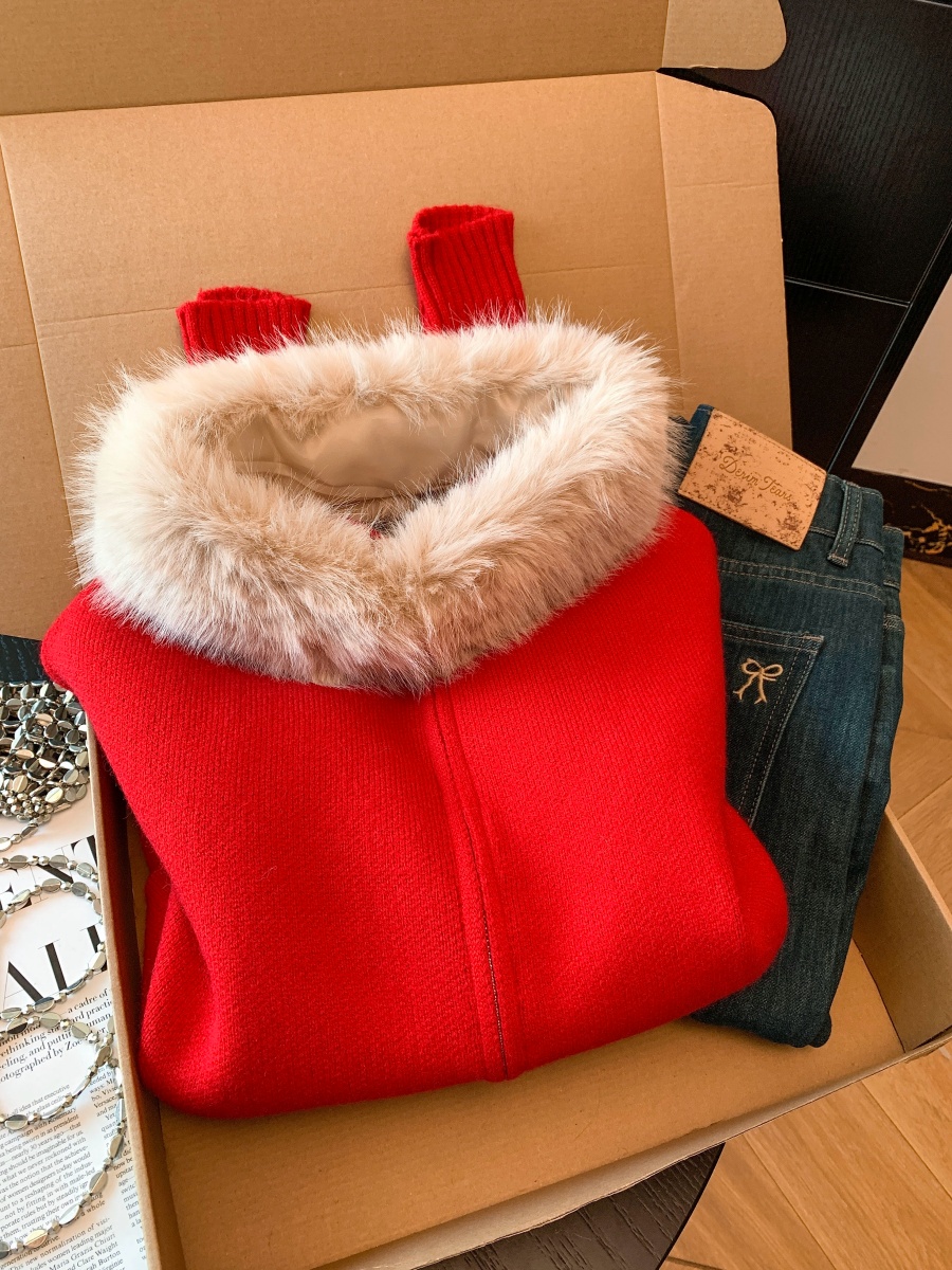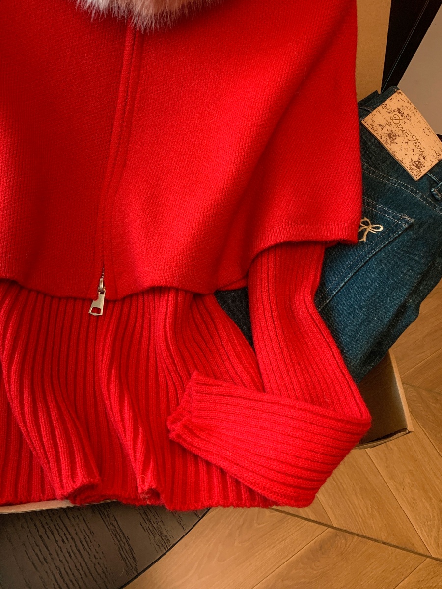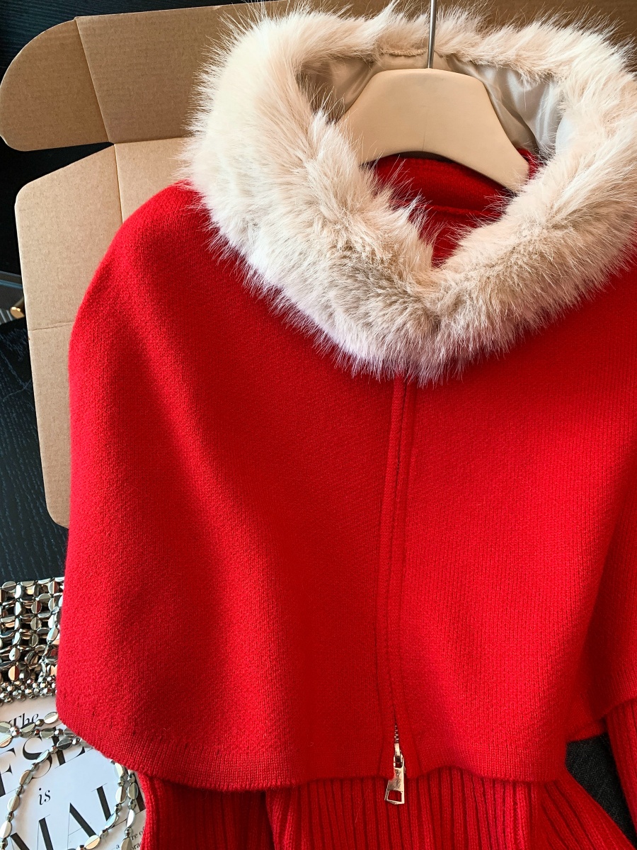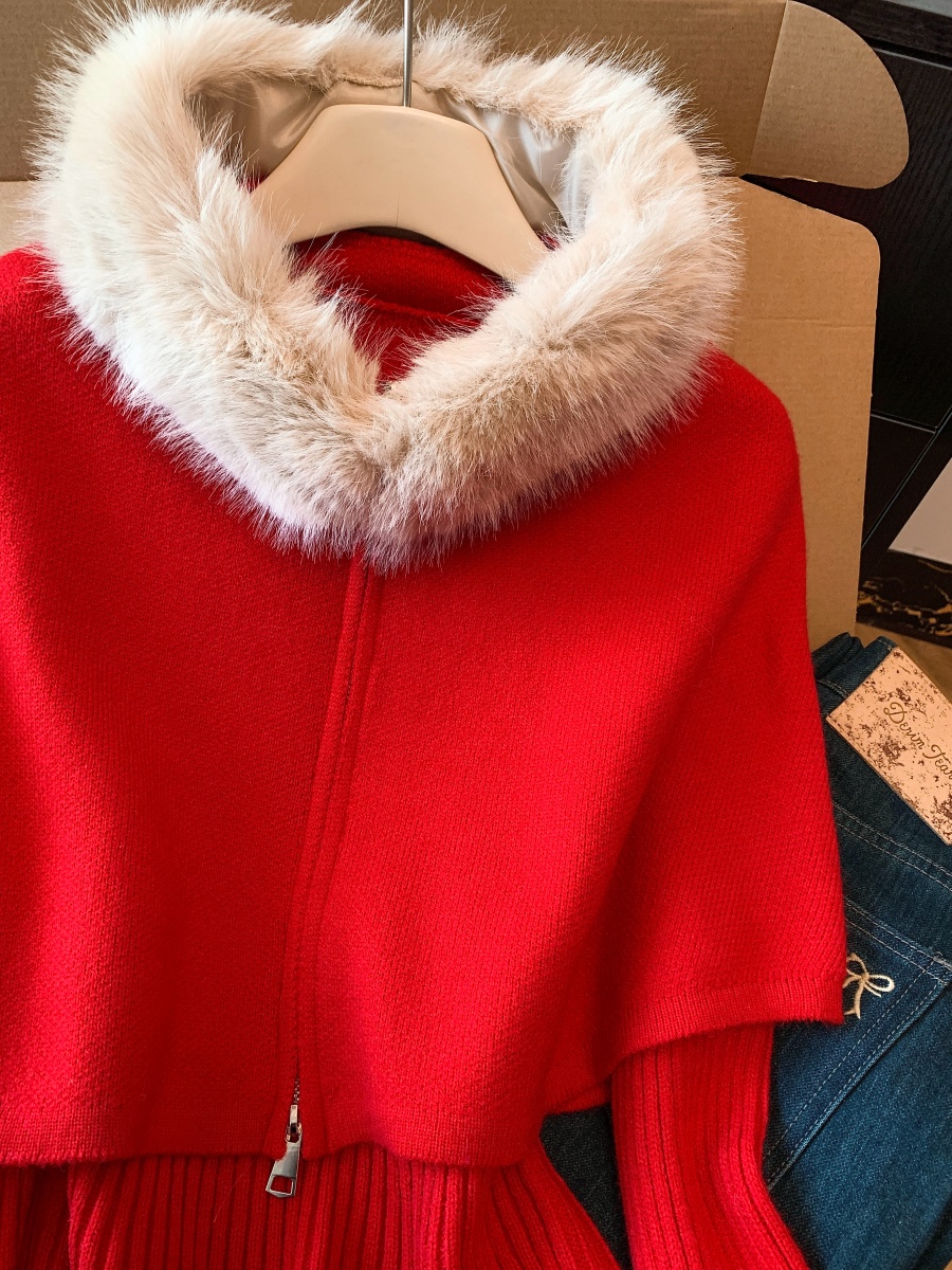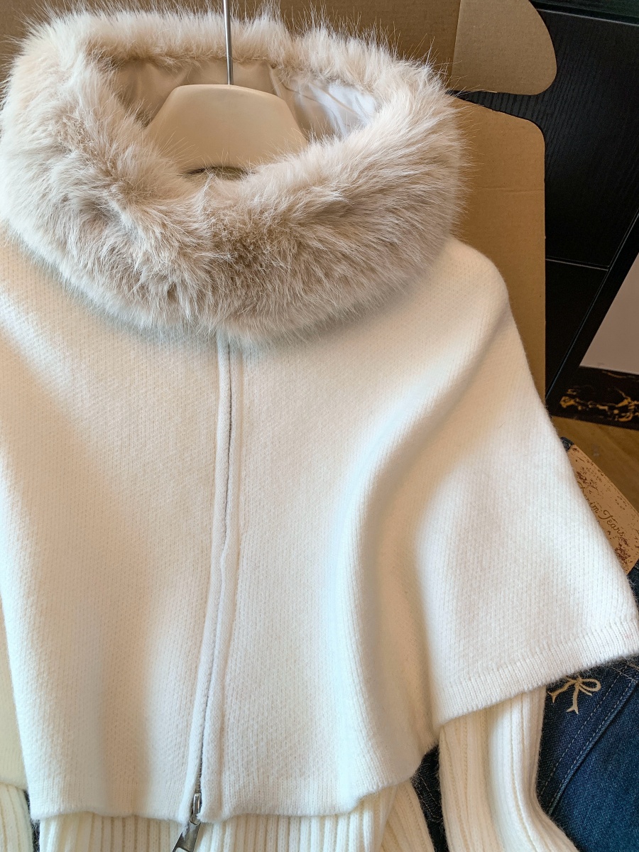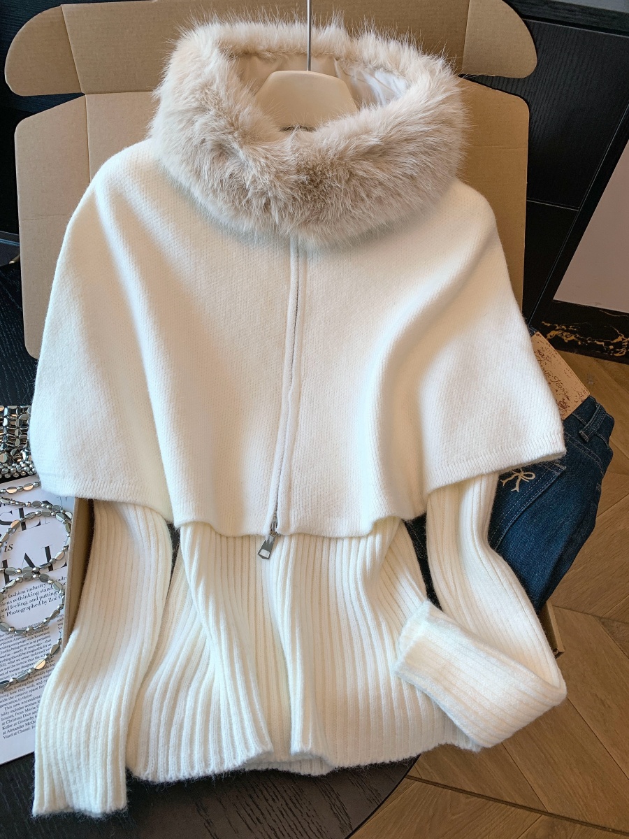 实拍法式温柔斗篷可拆卸毛领三件套毛衣套装秋冬氛围感针织衫上衣