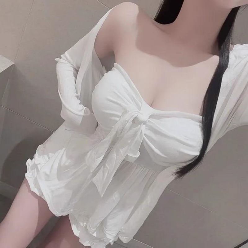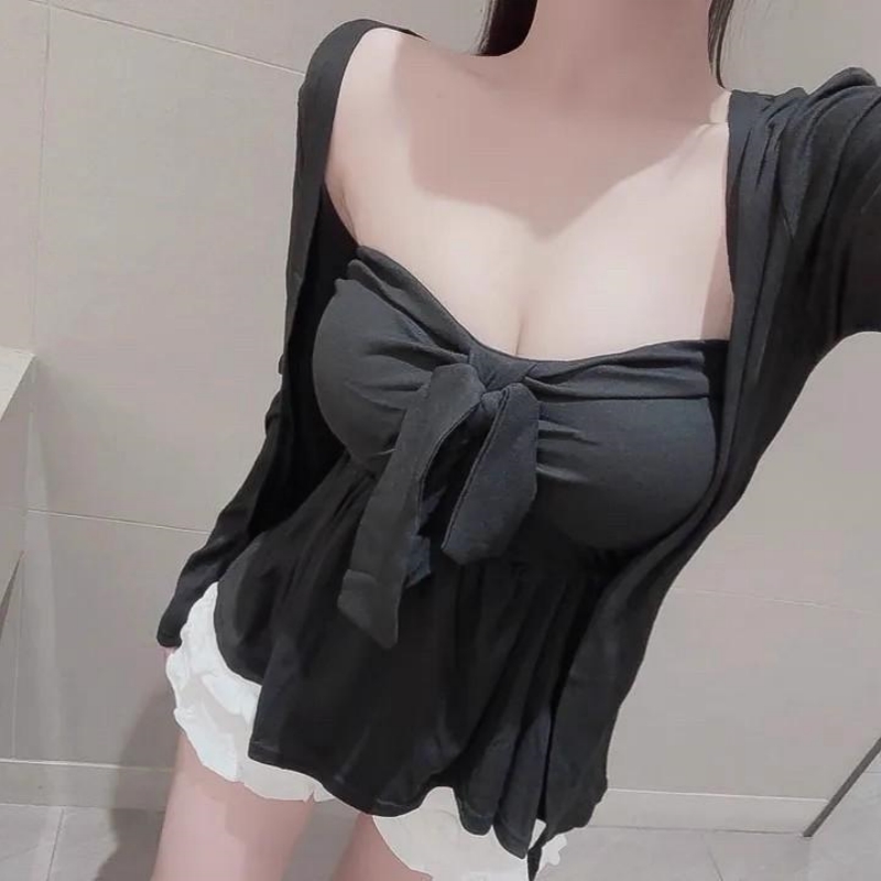 秋冬新款气质修身防滑薄款显身材MO胸T恤长袖防晒纯欲开衫两件套