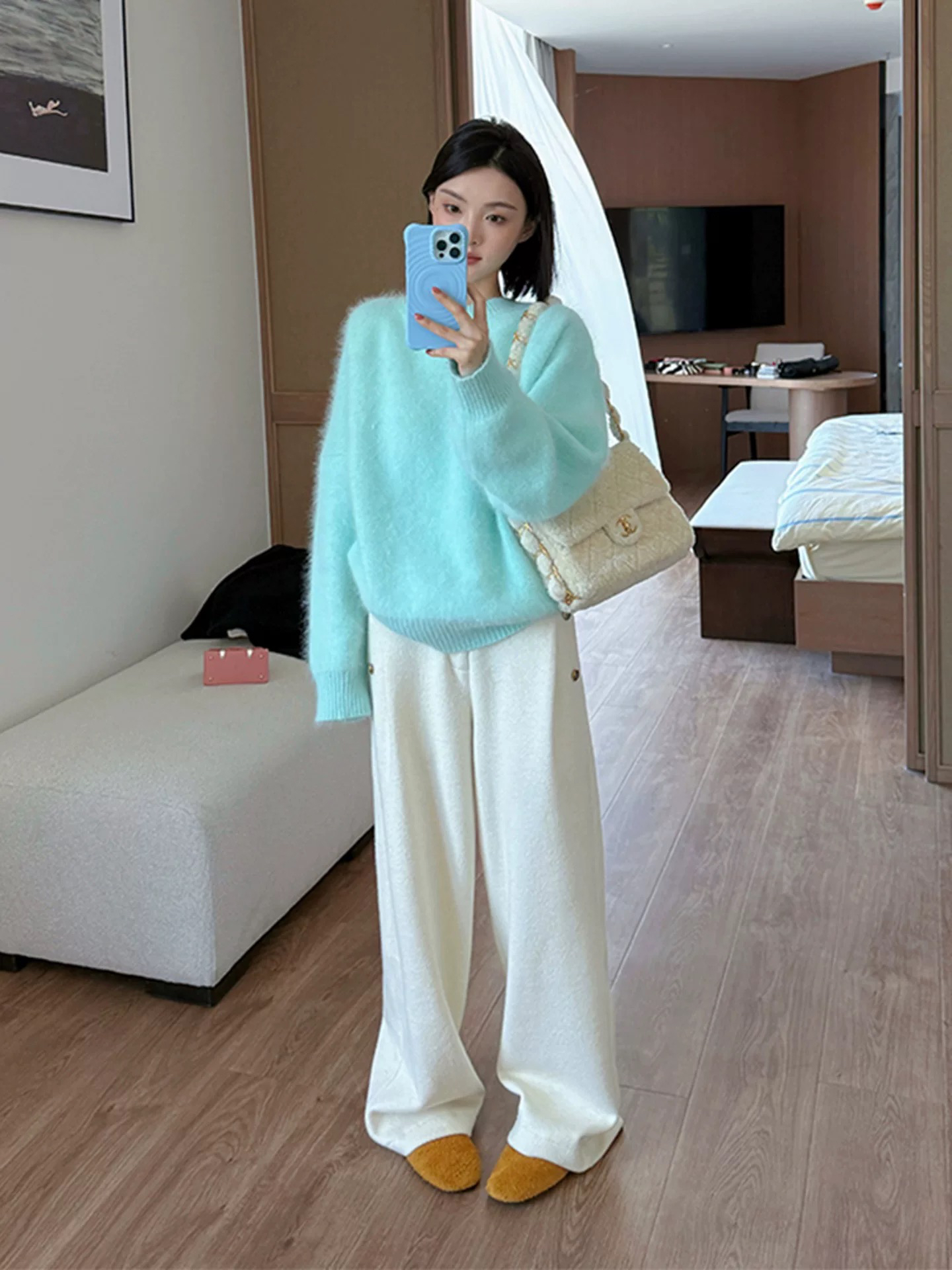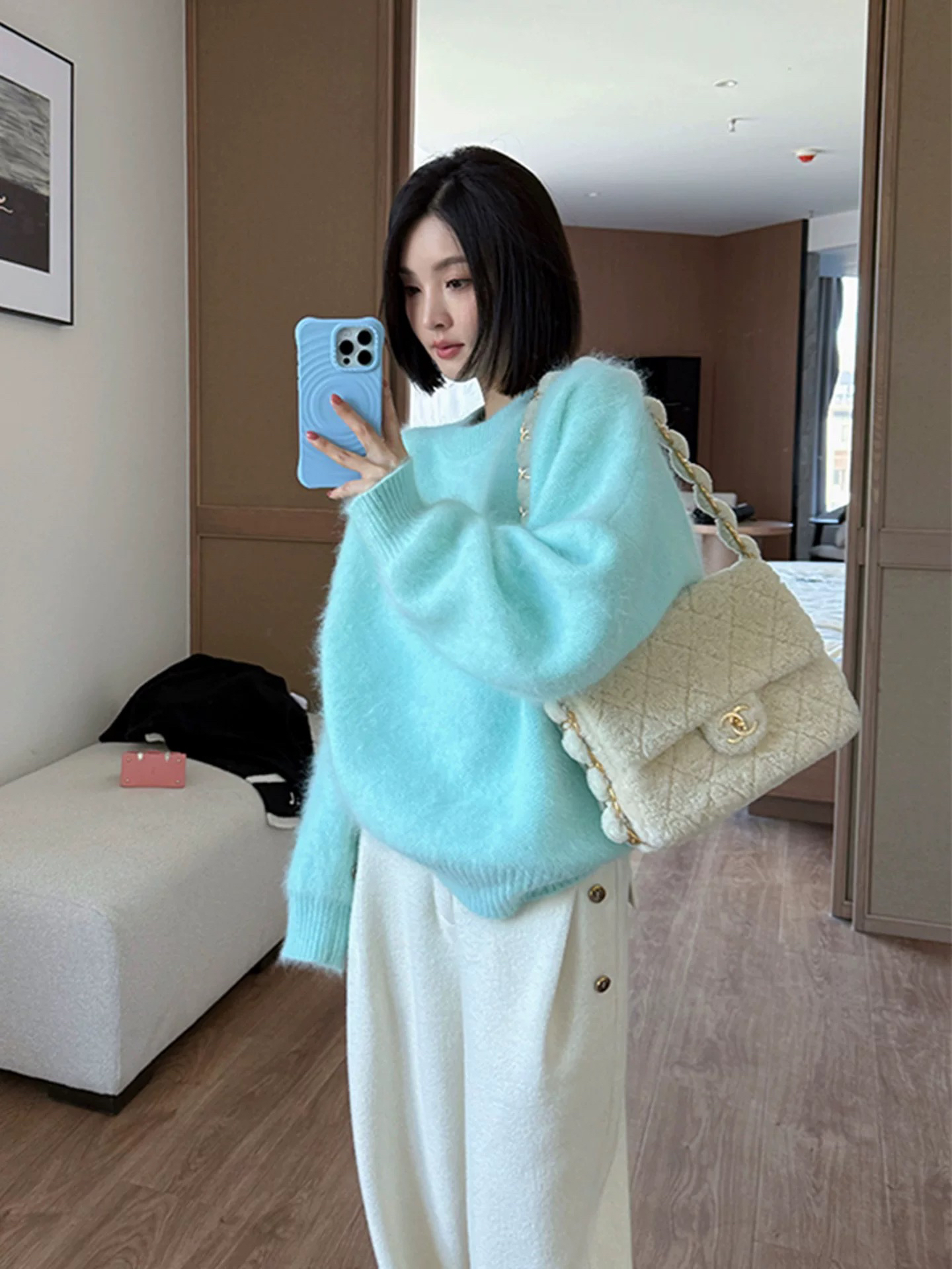 2025秋冬流行针织衫奶fufu软糯慵懒风马海毛上衣超好看蓝色毛衣女