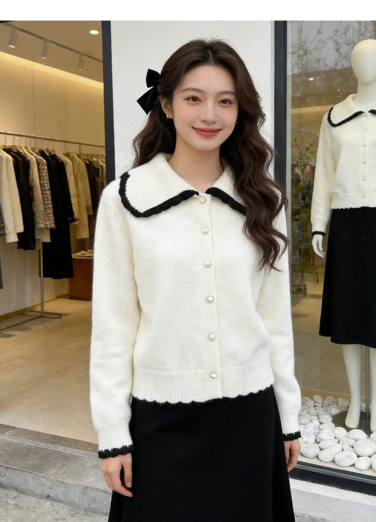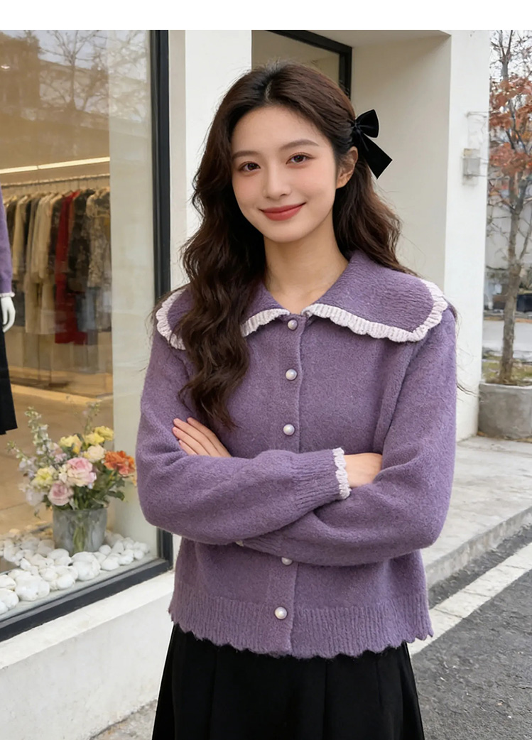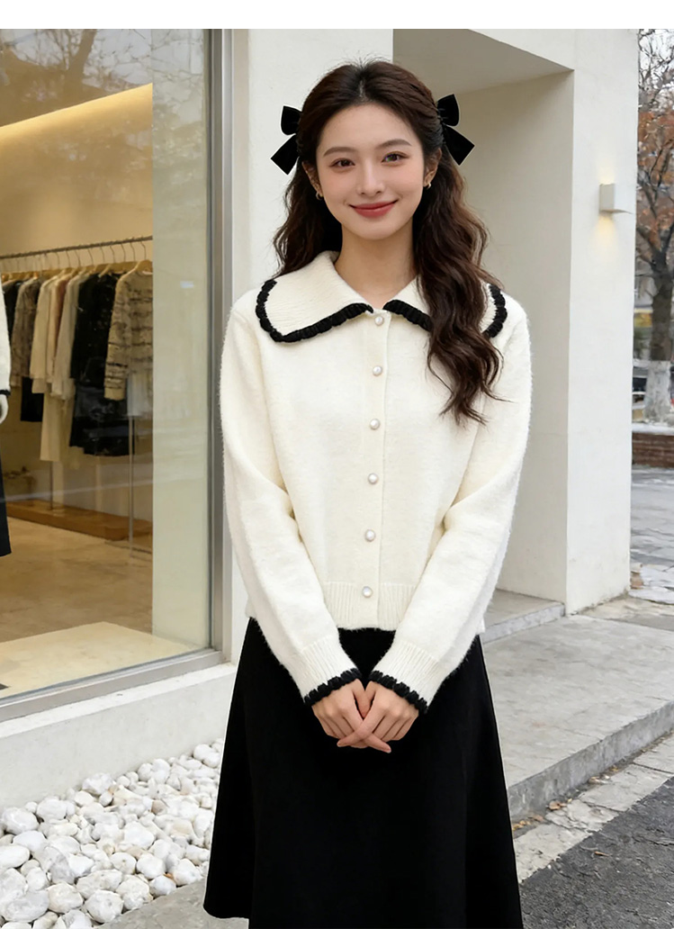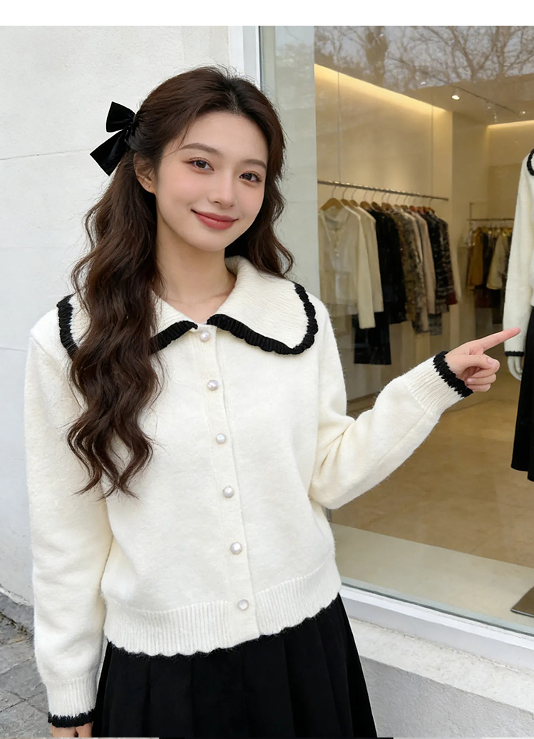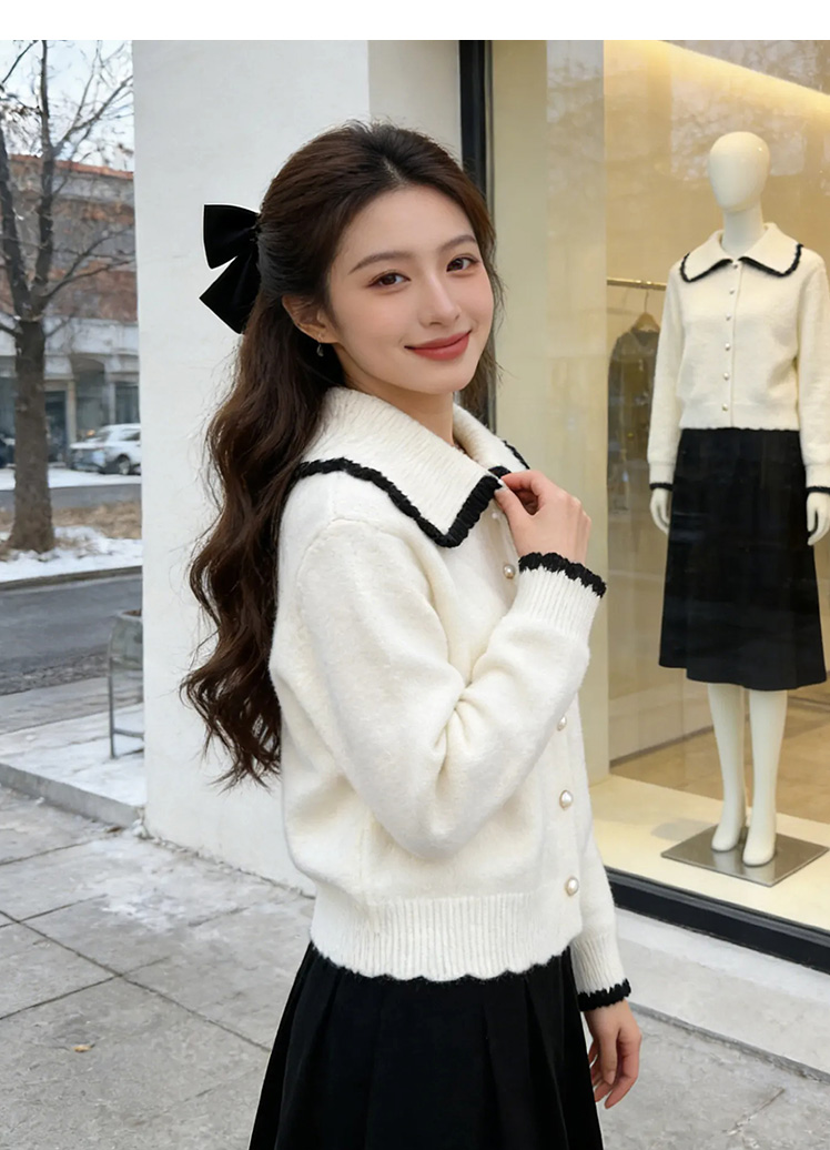 小香风新年红色翻领毛衣外套2025秋冬新款上衣甜美小个子针织开衫