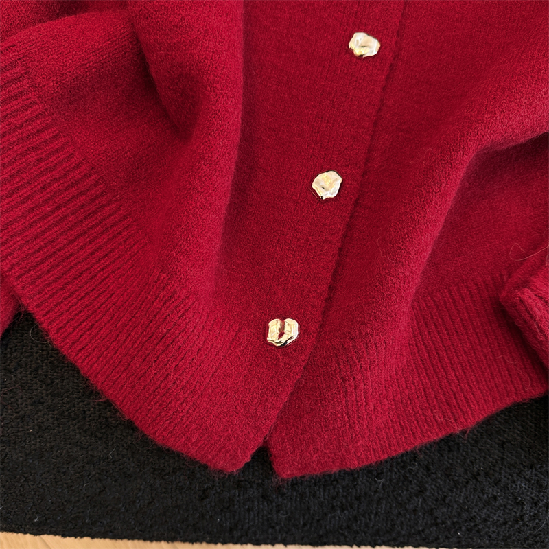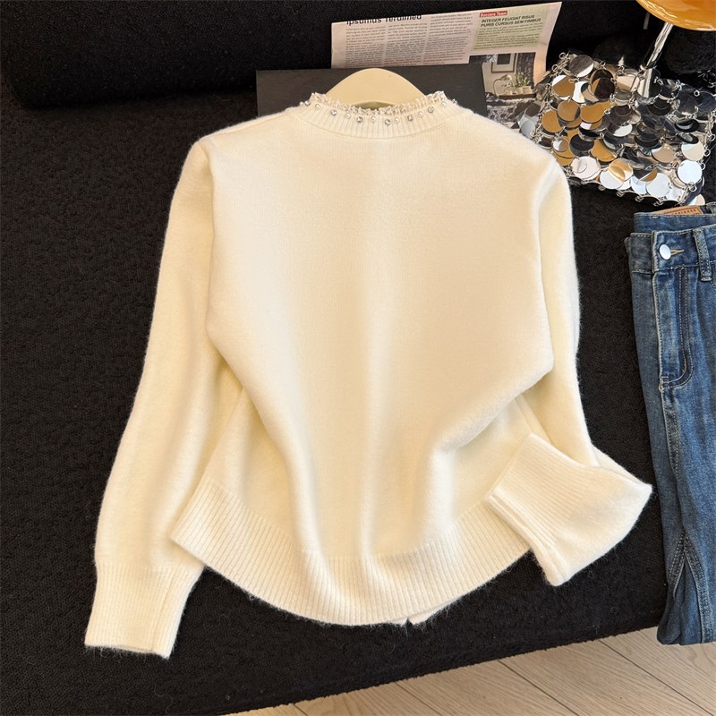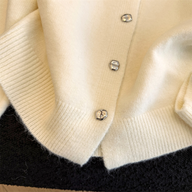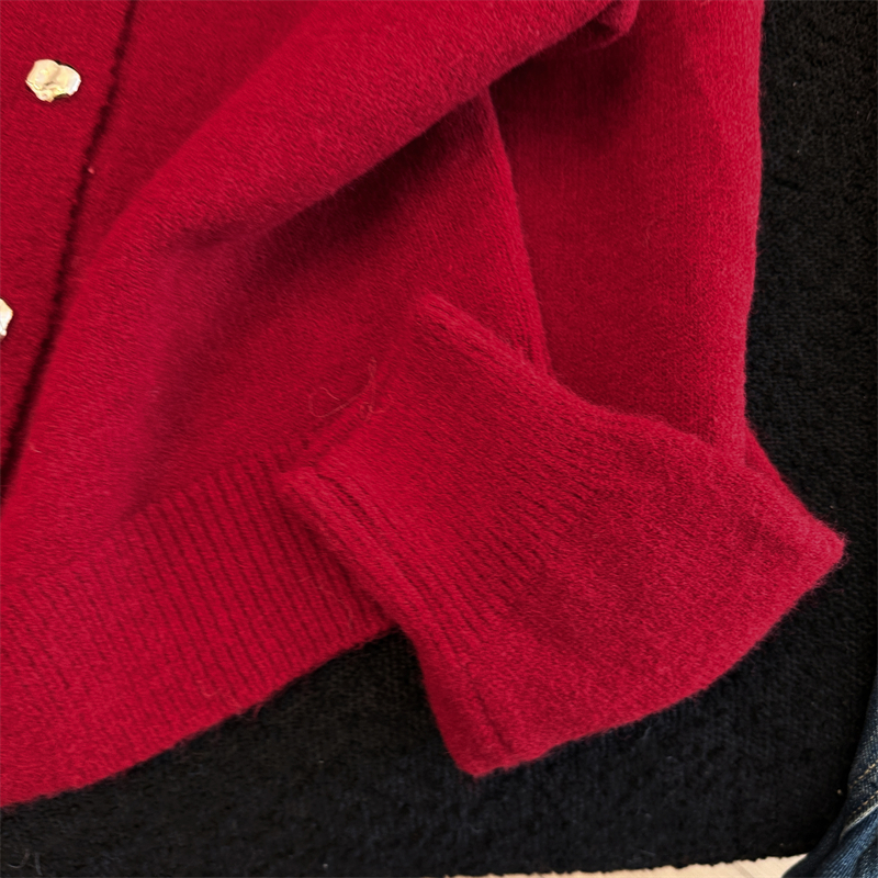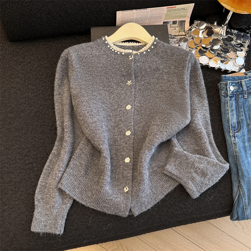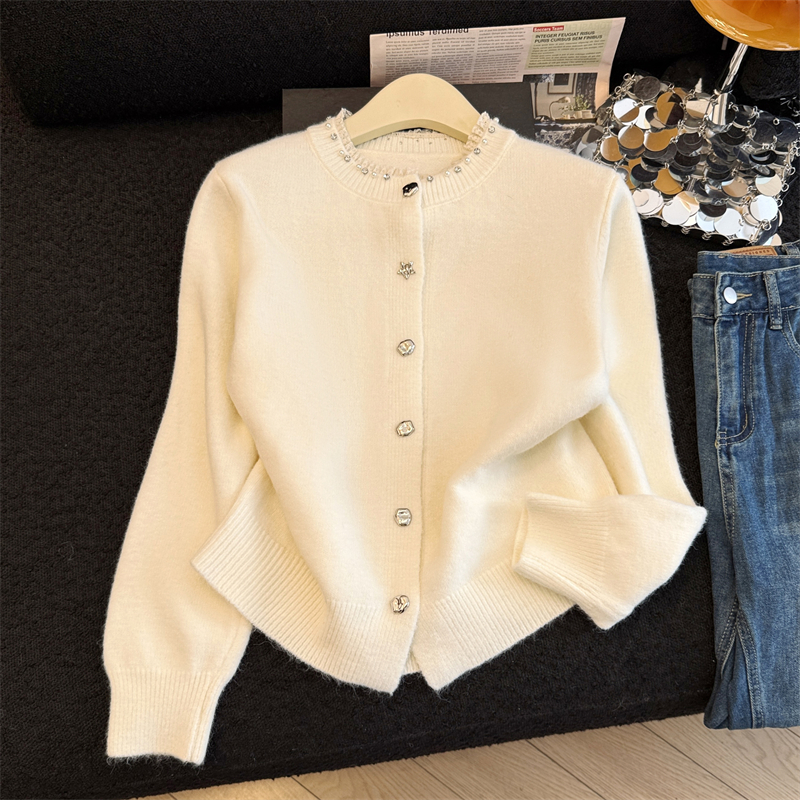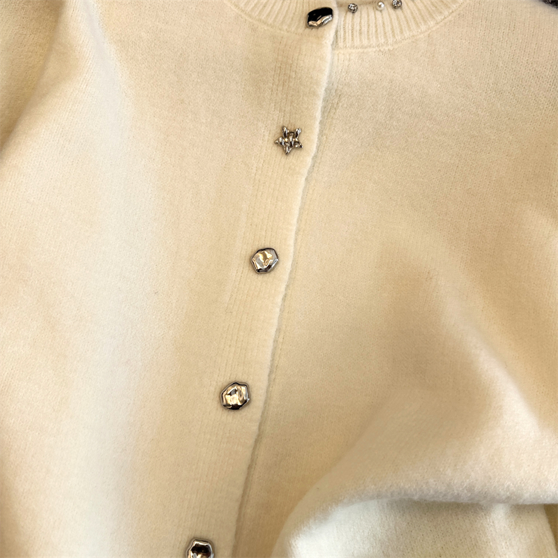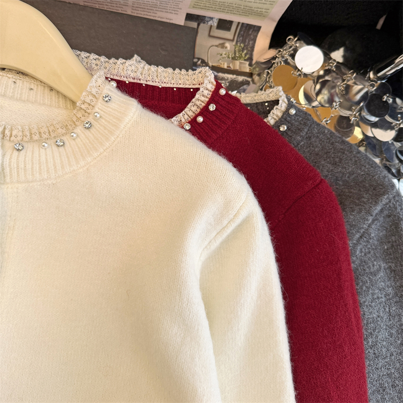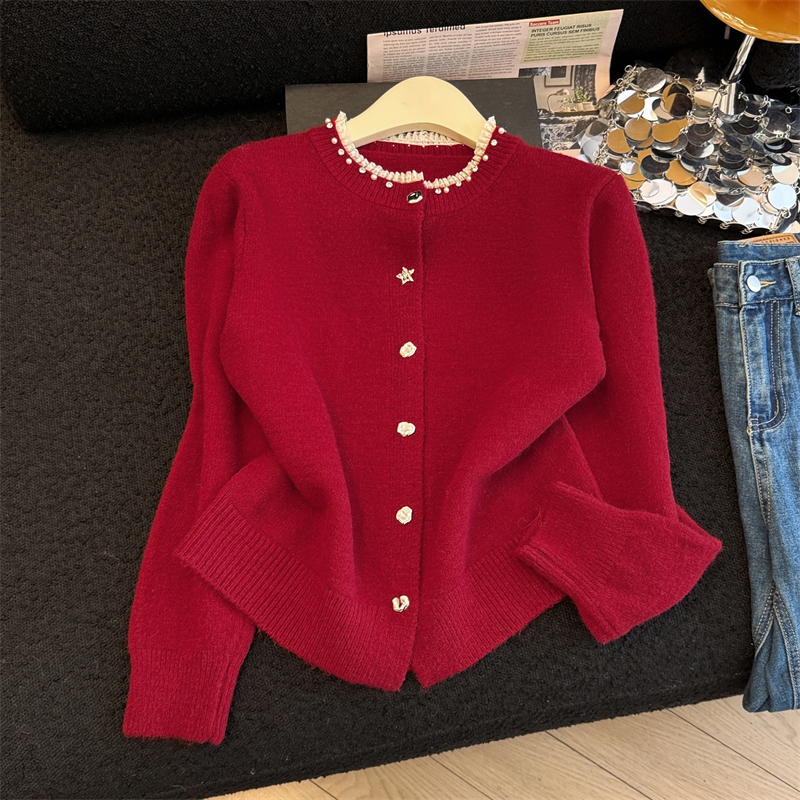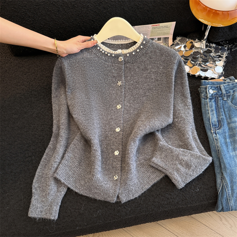 实拍重工钉珠拼接蕾丝毛衣外套2025秋冬新款甜美减龄显瘦针织开衫