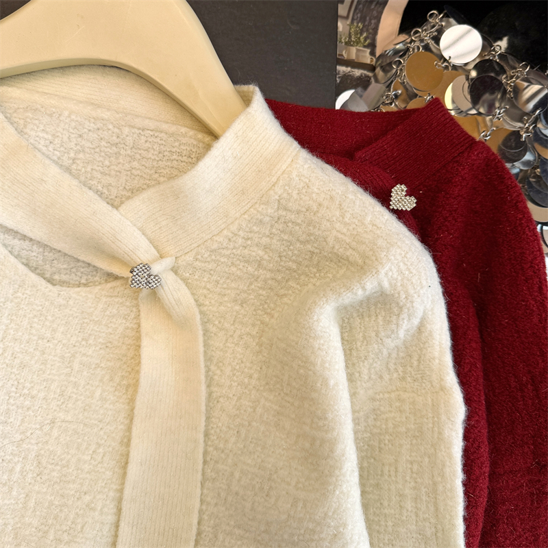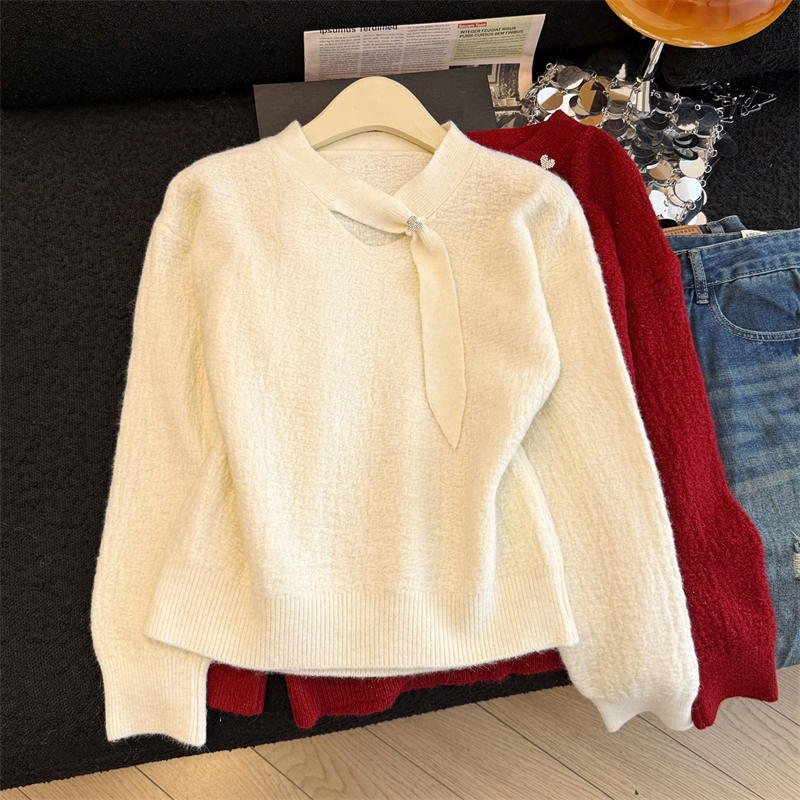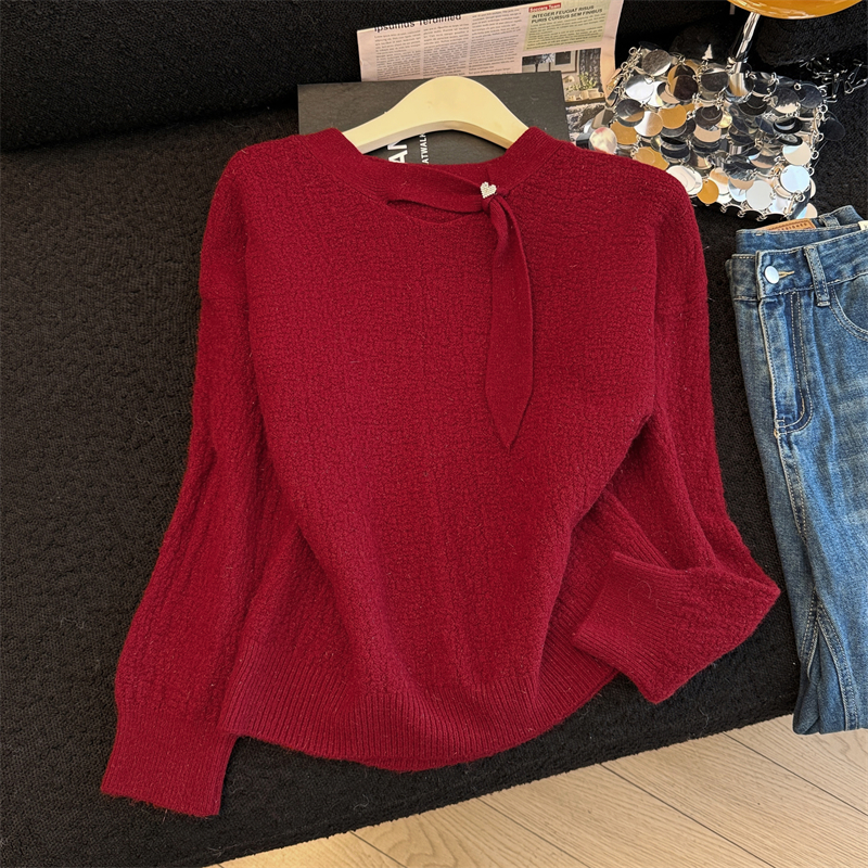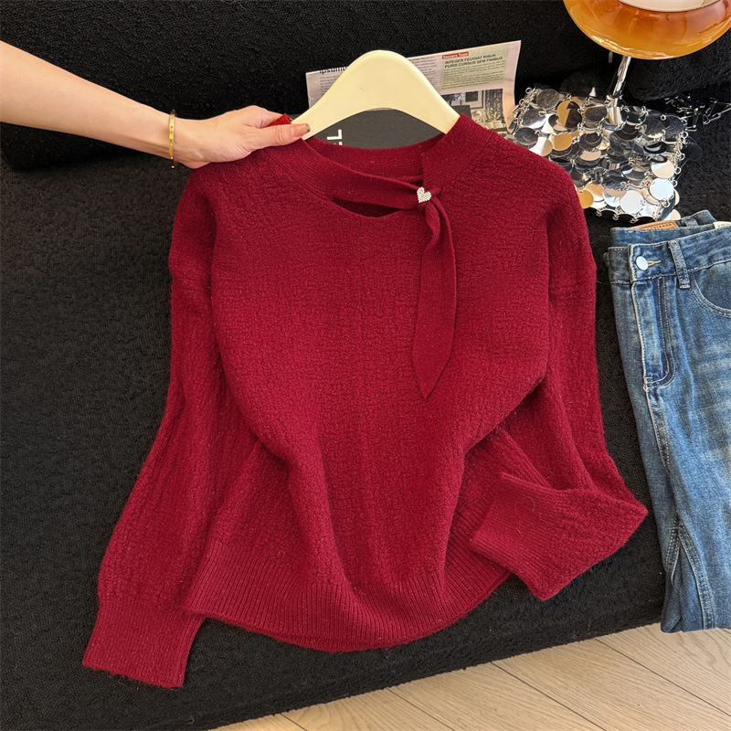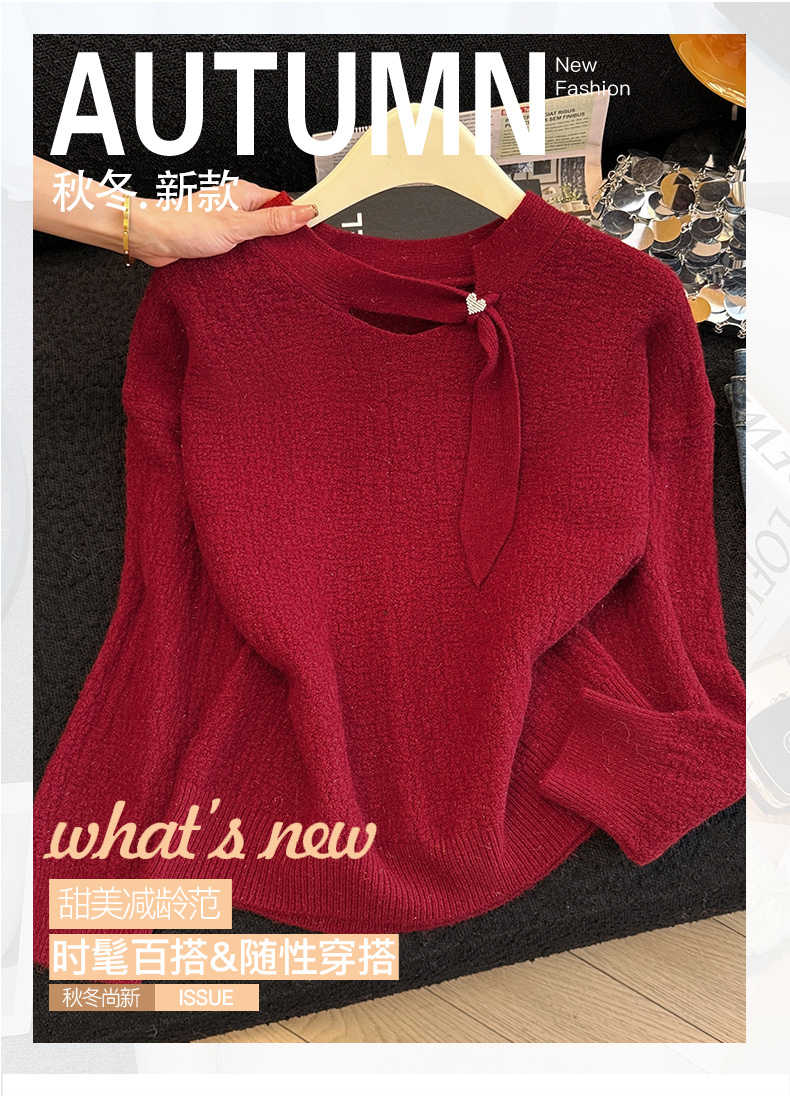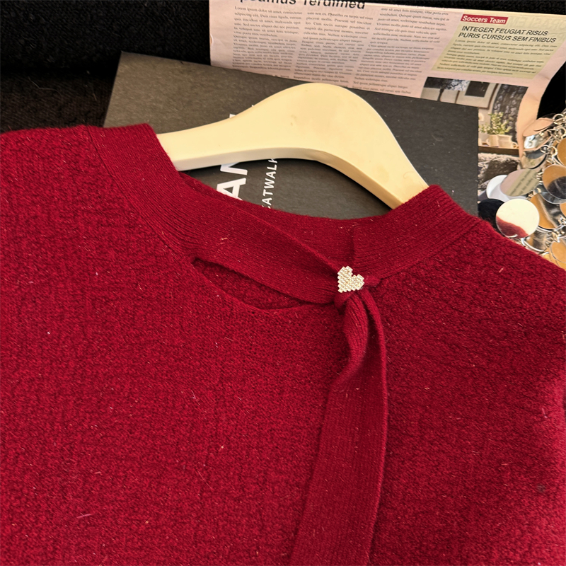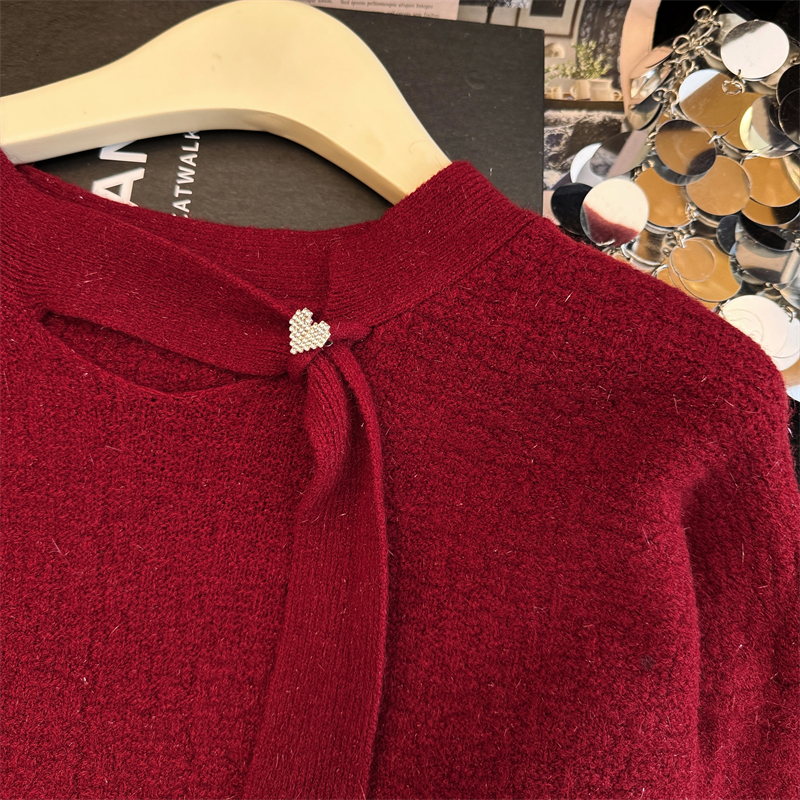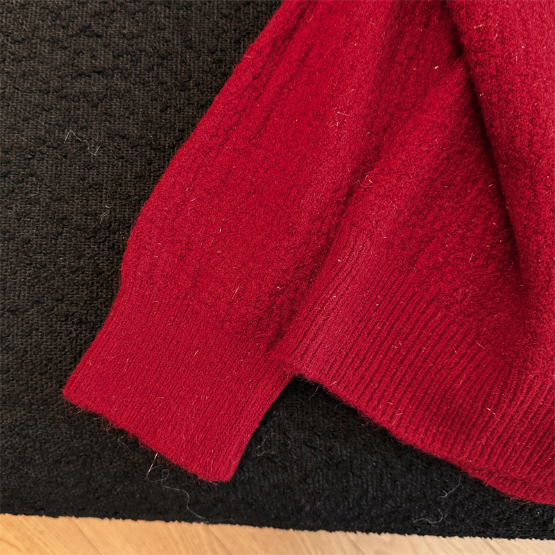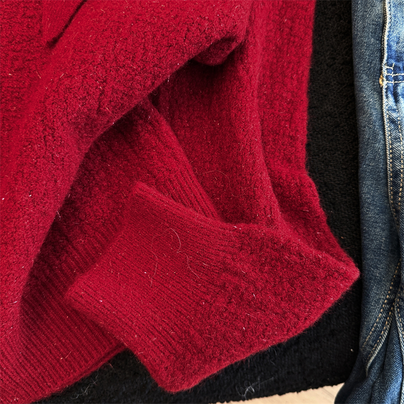 实拍新年红色亮丝套头毛衣女2025秋冬新款本命年洋气显瘦针织上衣