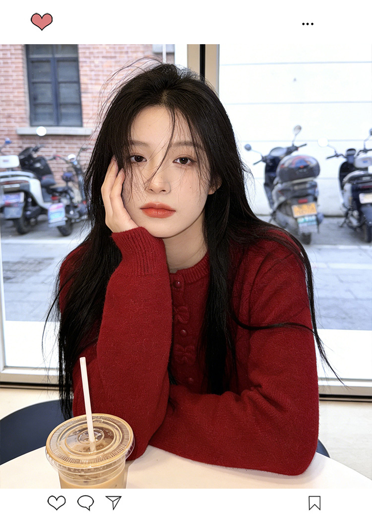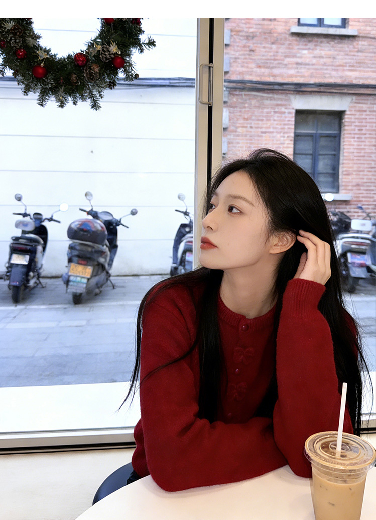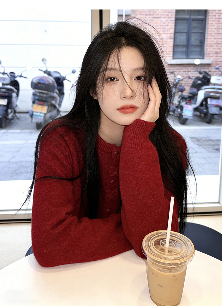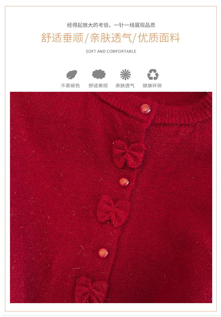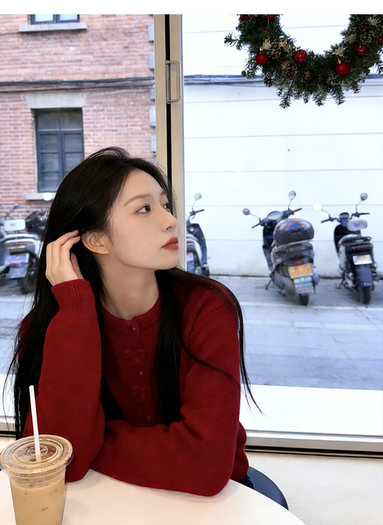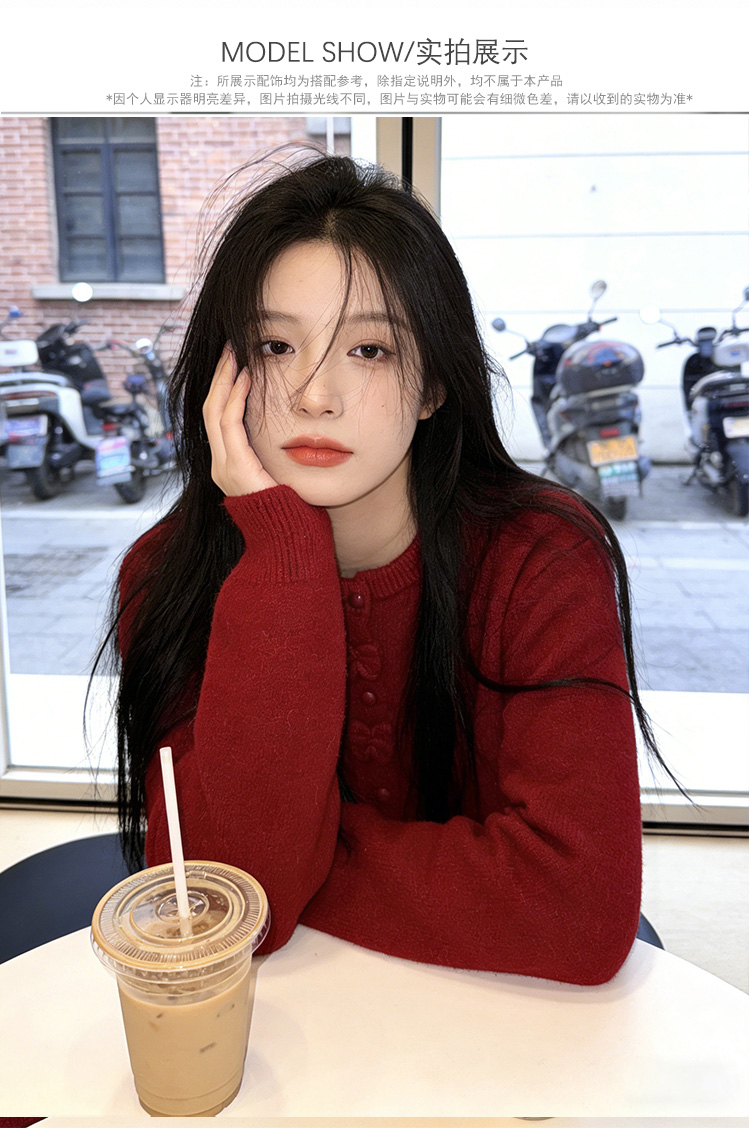 小香风新年红色蝴蝶结毛衣外套女2025秋冬新款甜美减龄针织开衫