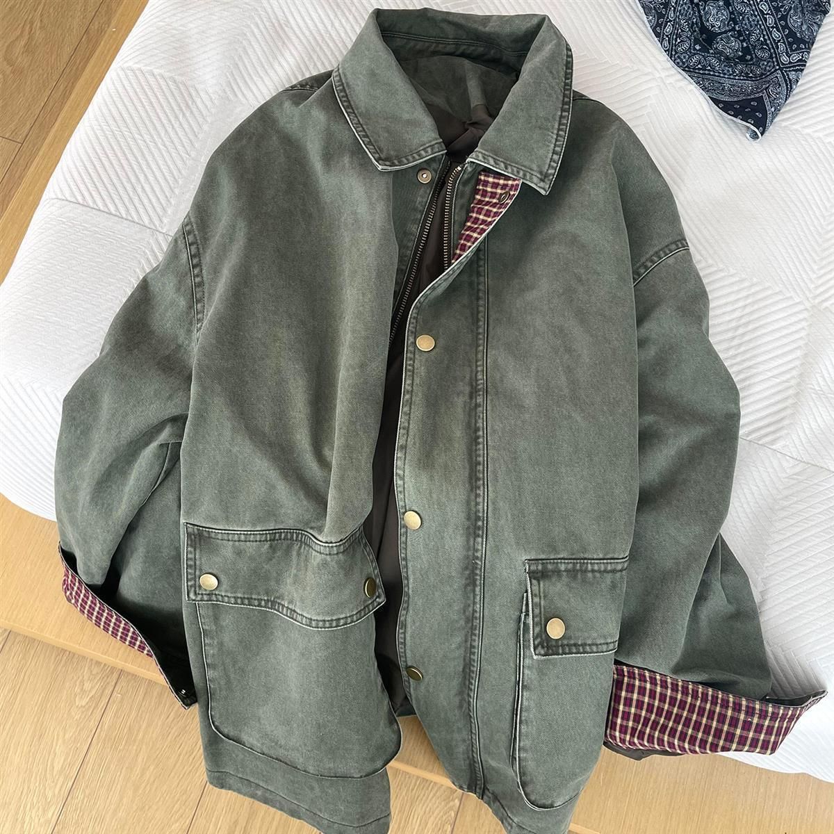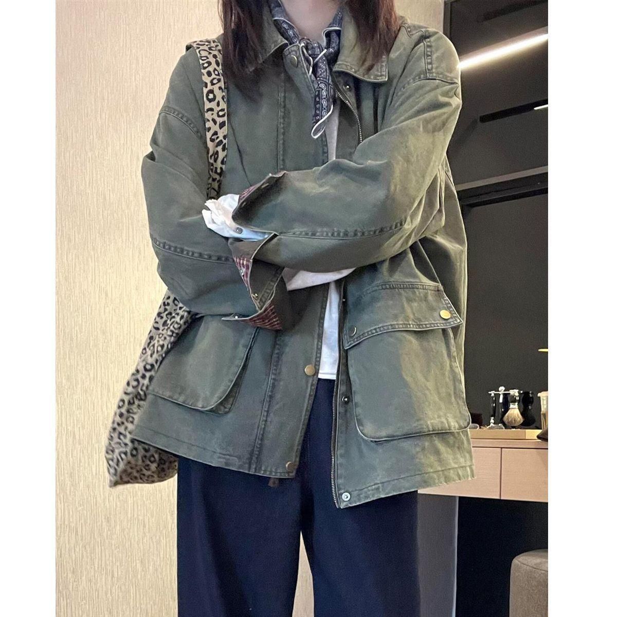 特大码女装2025秋季复古拼接牛仔外套设计宽松休闲夹克上衣外穿潮