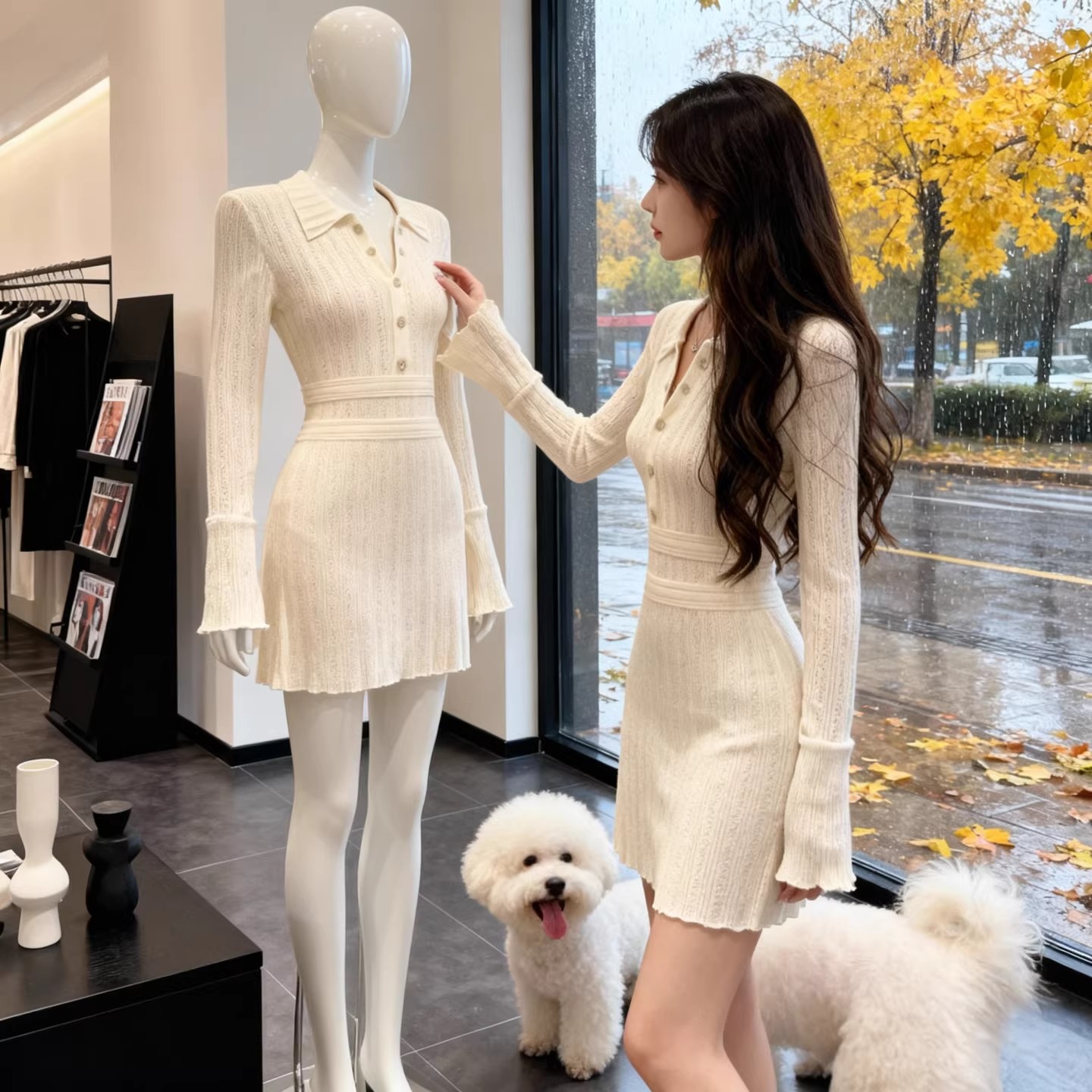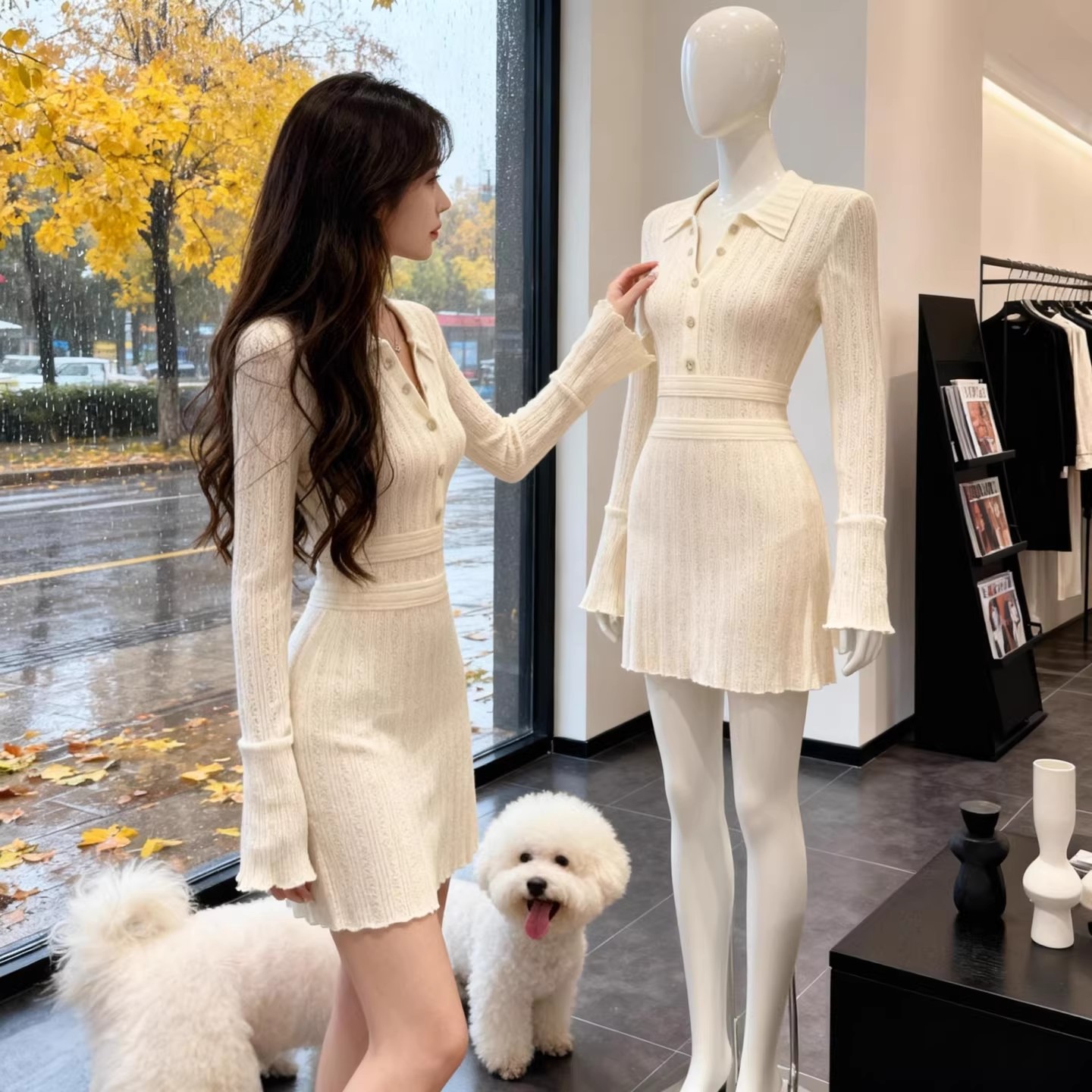 氛围感修身显瘦韩系针织连衣裙女2025秋冬高级感小个子洋气短裙子