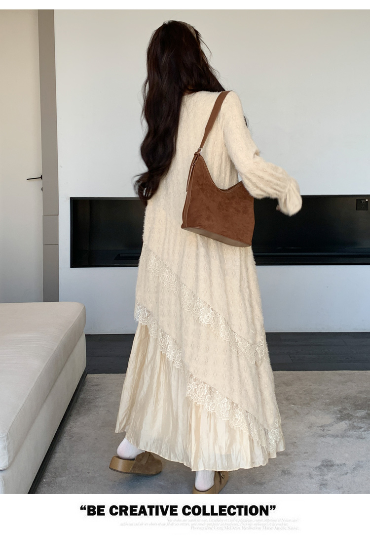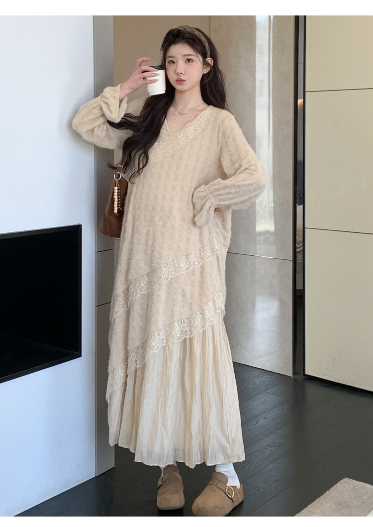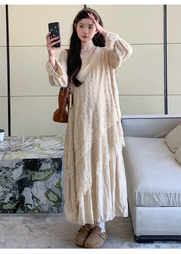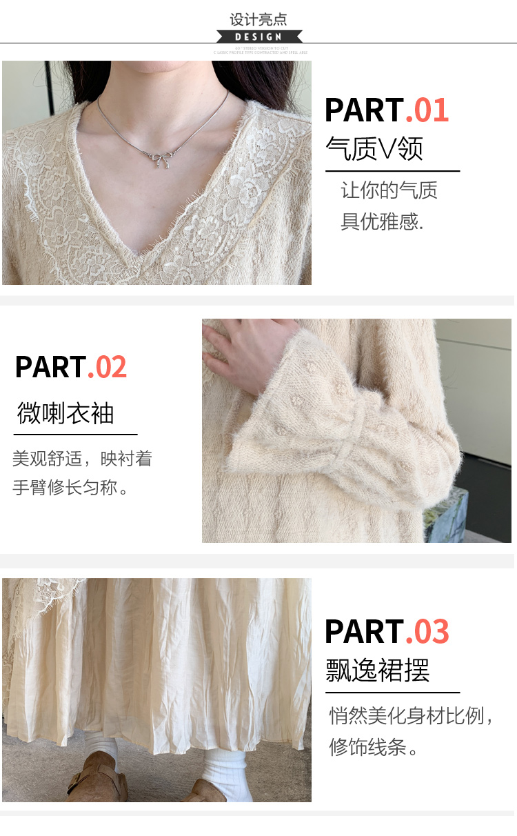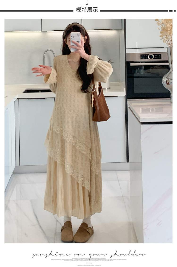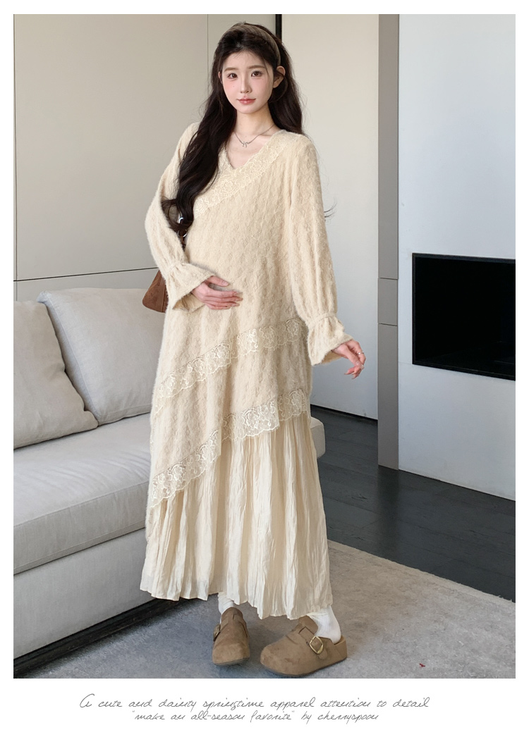 孕妇装重工提花压褶连衣裙女秋冬长袖蕾丝长裙内搭设计感