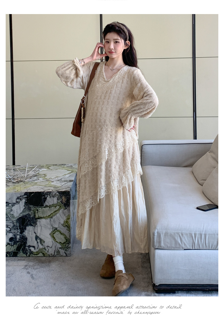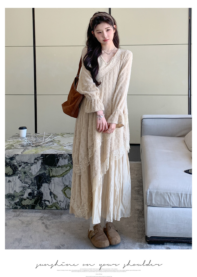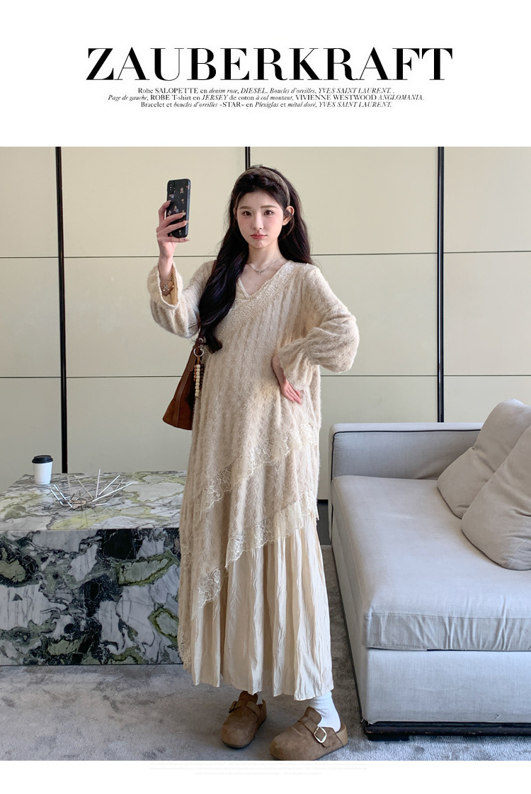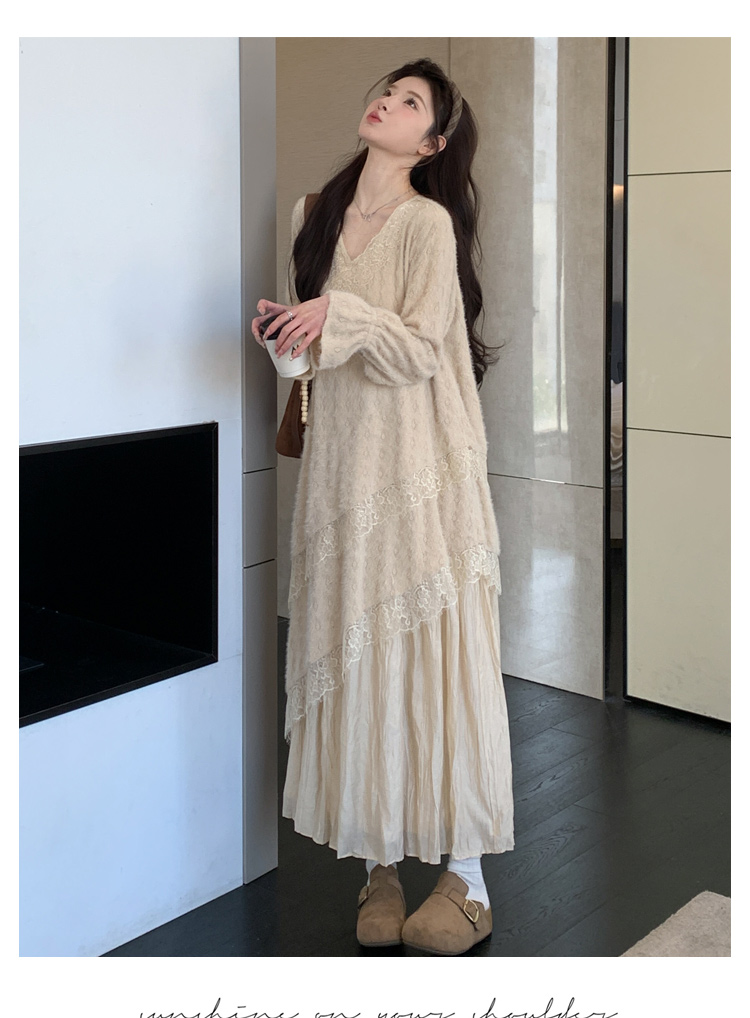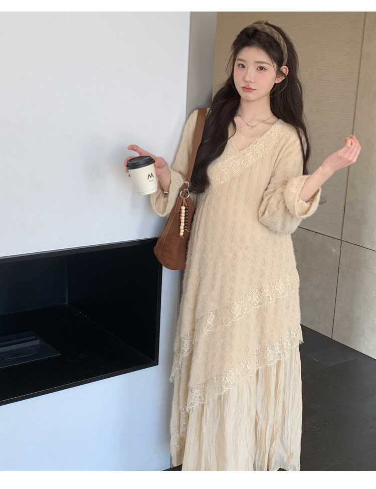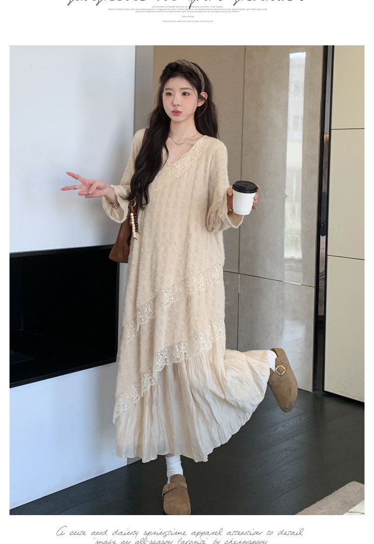 孕妇装重工提花压褶连衣裙女秋冬长袖蕾丝长裙内搭设计感