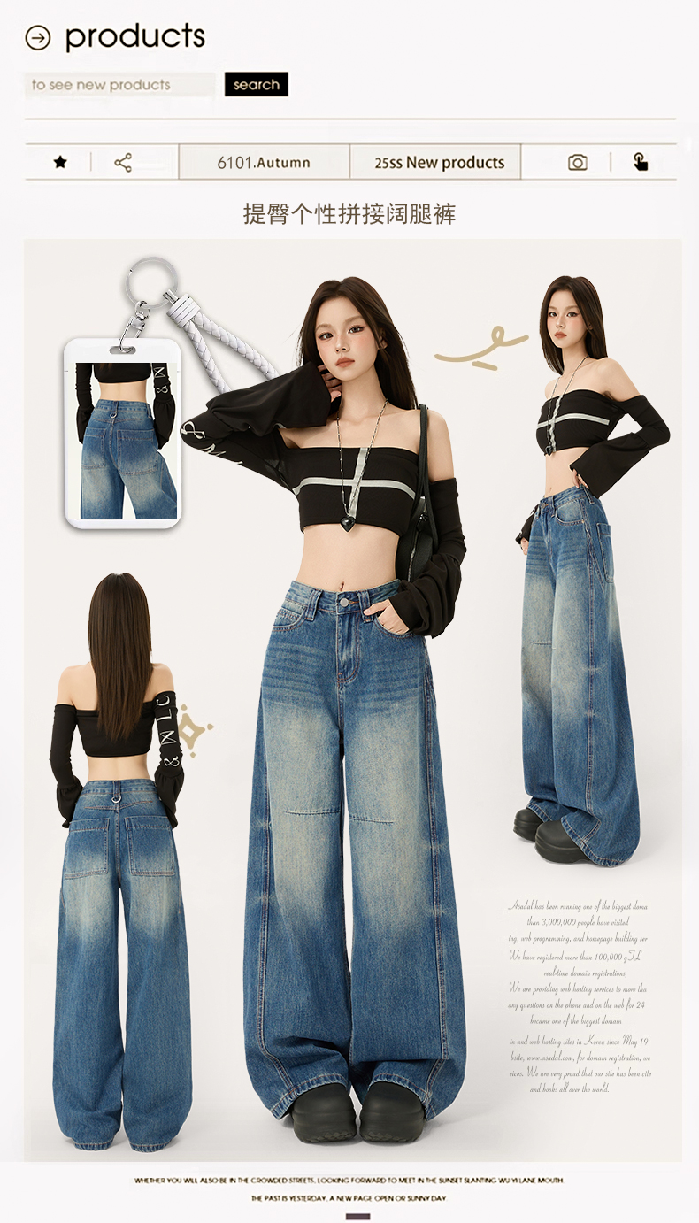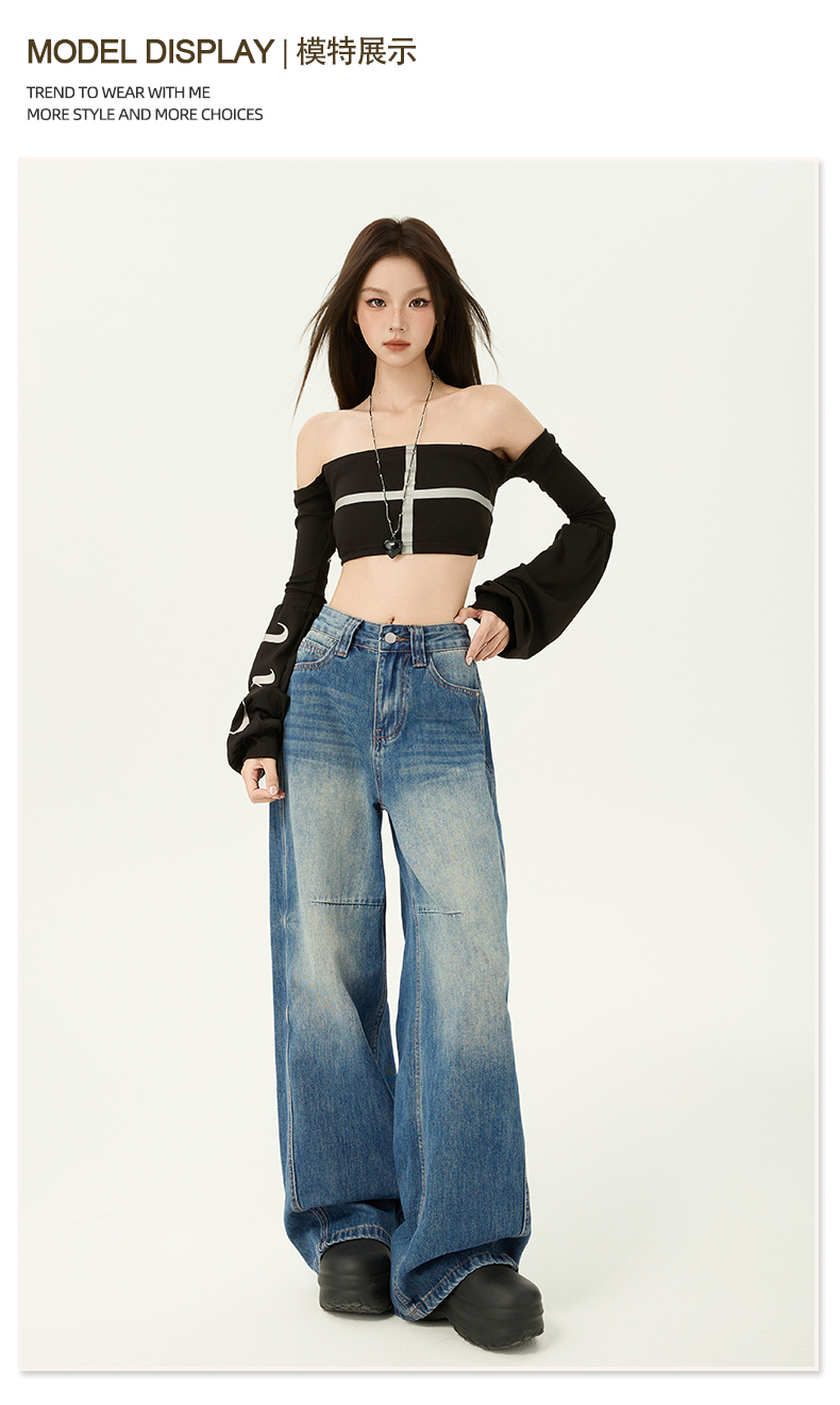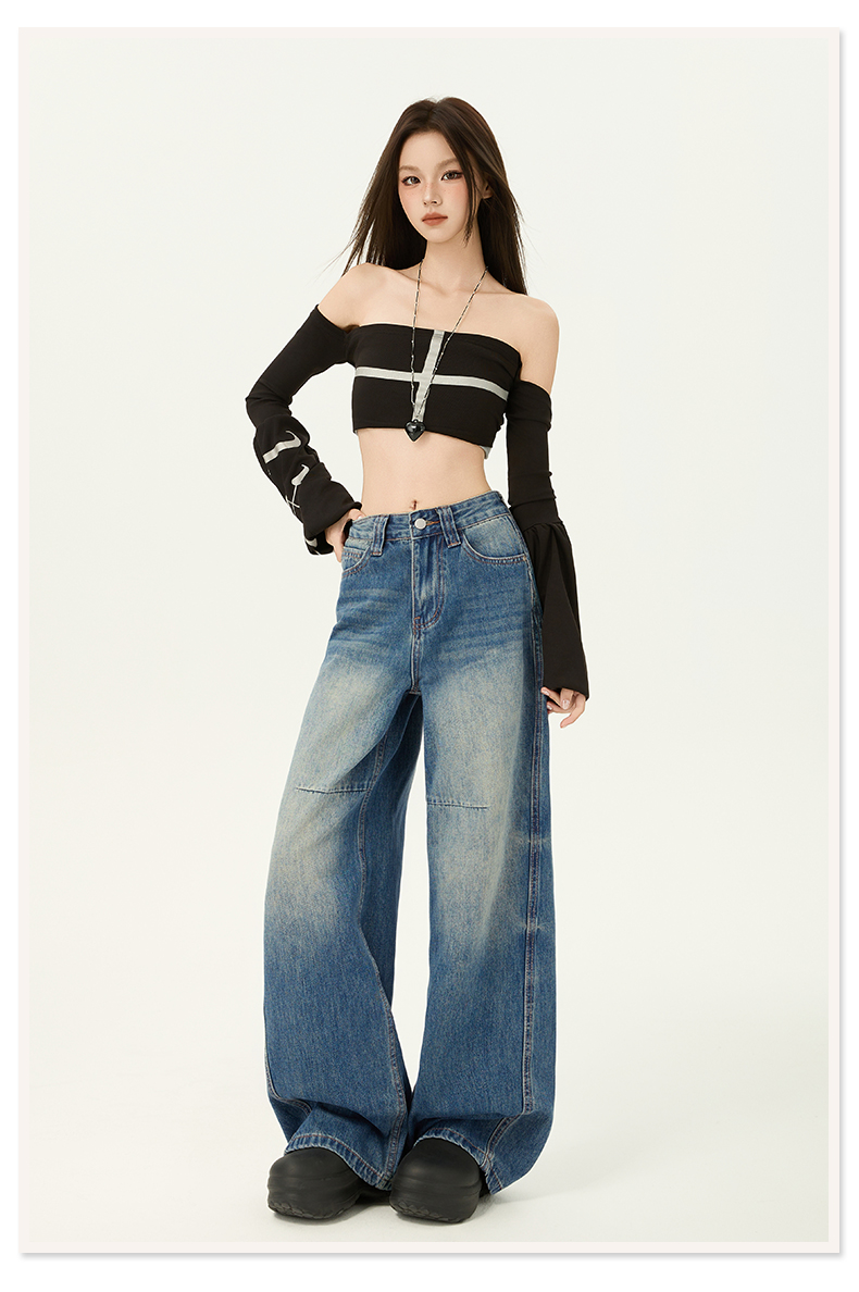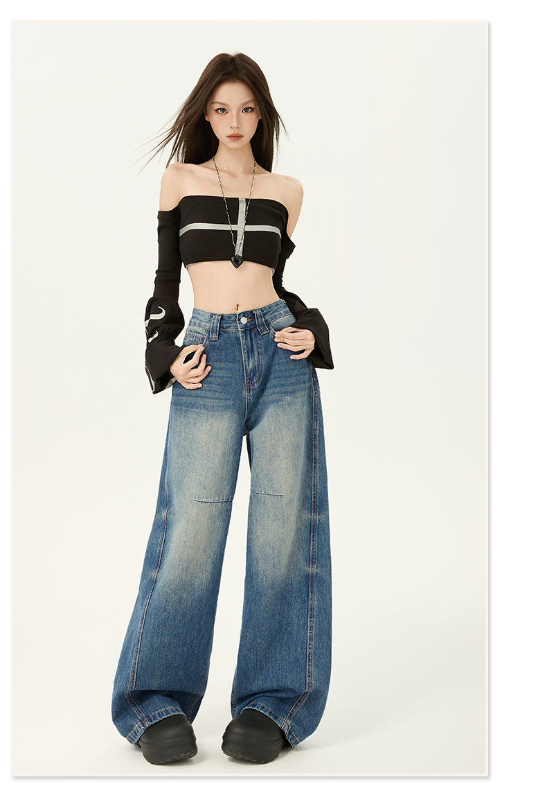 2026春季新款美式复古提臀高腰宽松牛仔裤直筒阔腿拖地牛仔裤女
