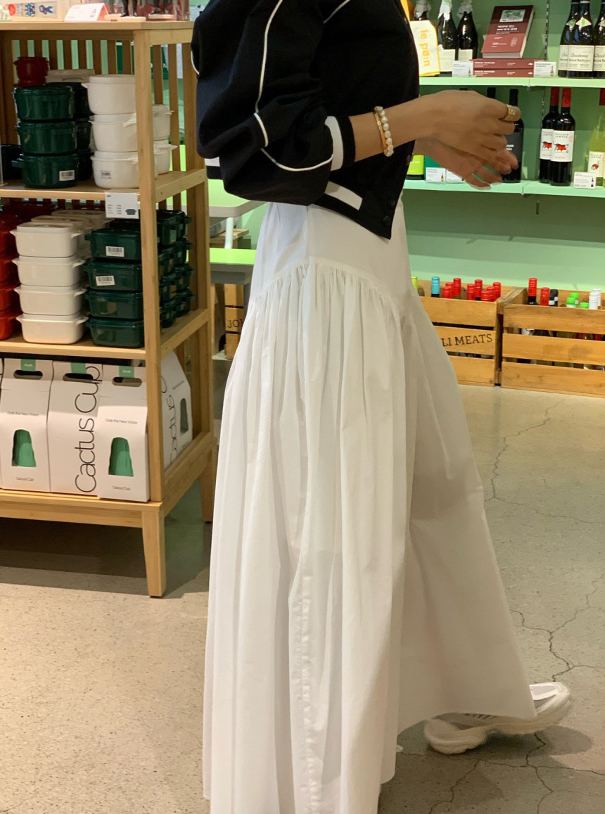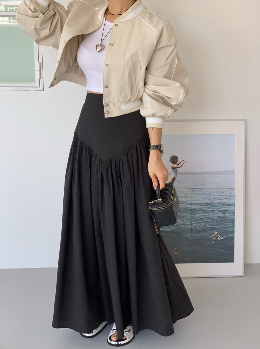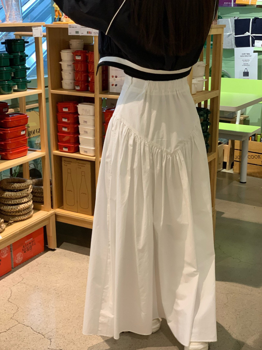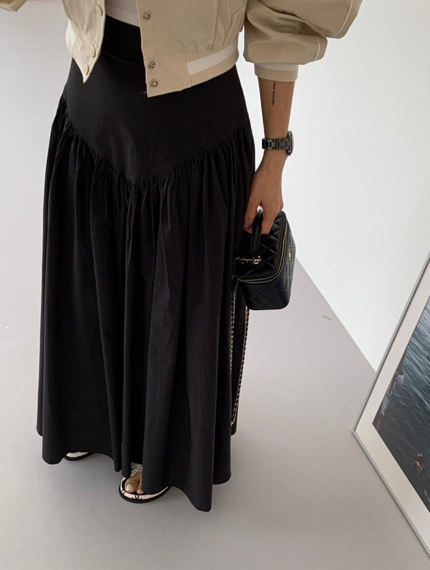 chic 韩版春季法式简约皱褶设计感高腰过膝百搭A字裙半身裙