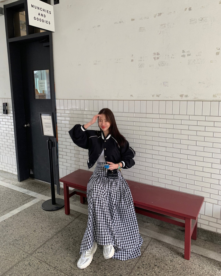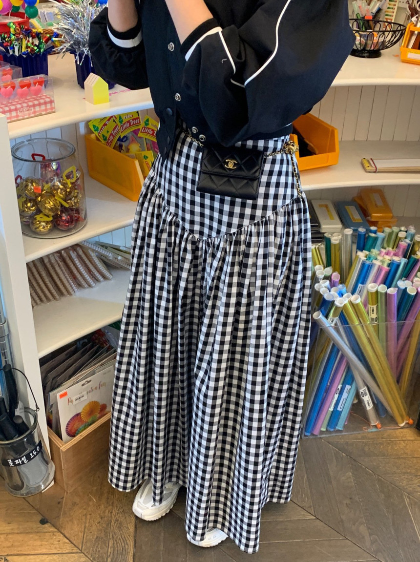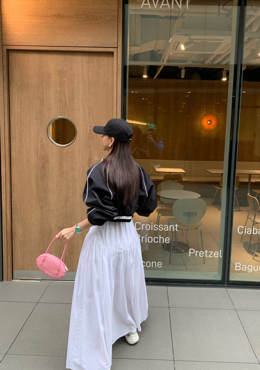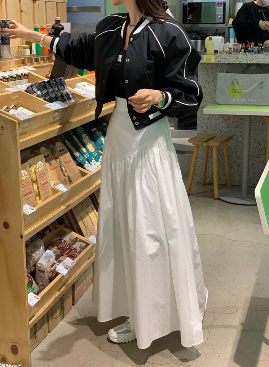 chic 韩版春季法式简约皱褶设计感高腰过膝百搭A字裙半身裙