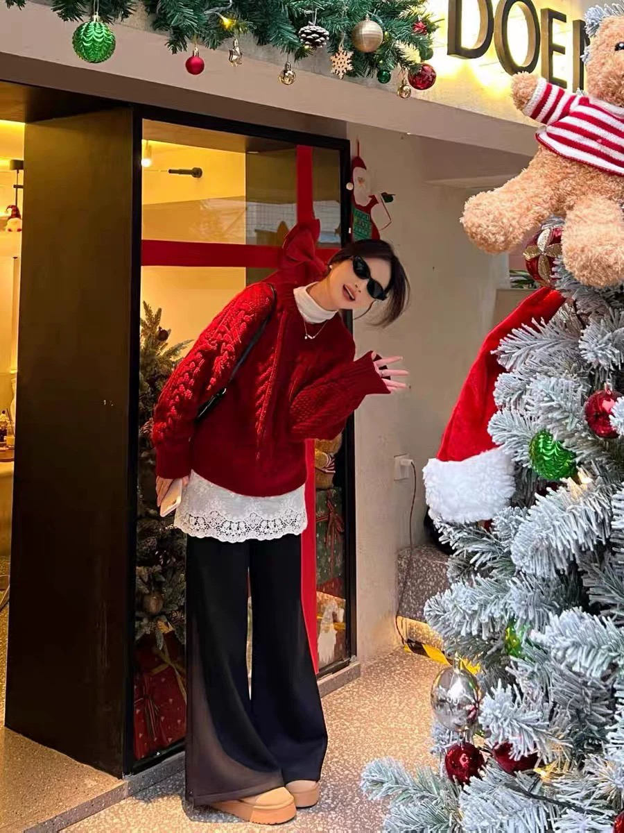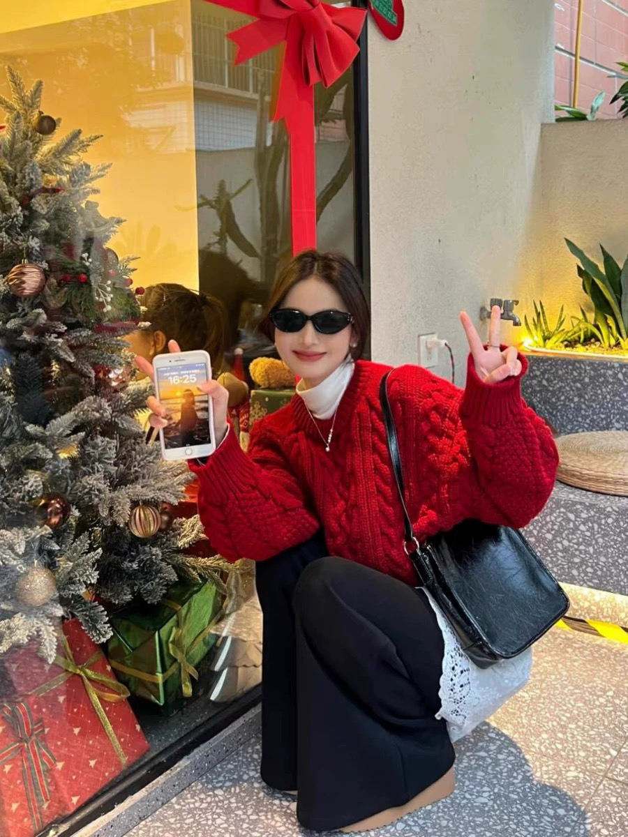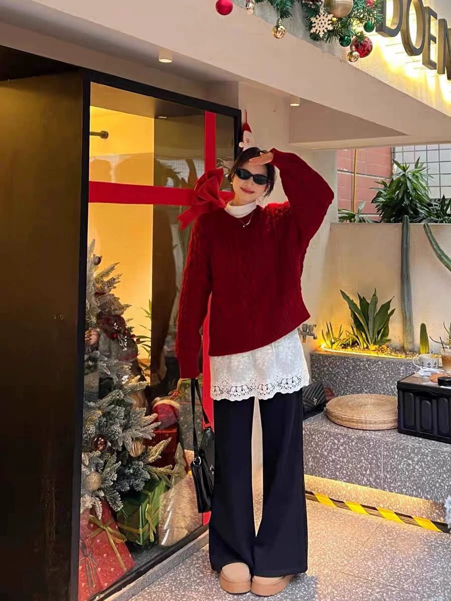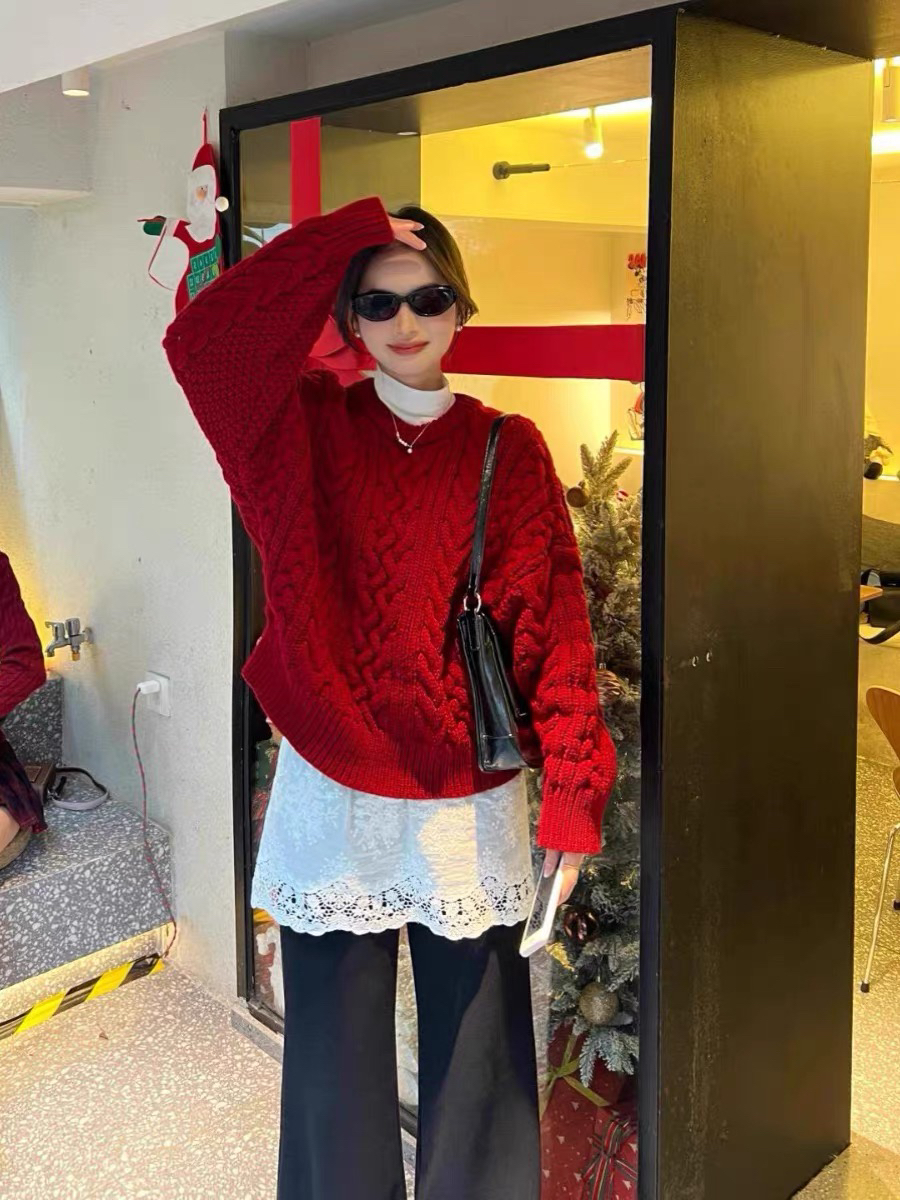 2026新款氛围感穿搭慵懒风独特超好看新年红色麻花针织毛衣