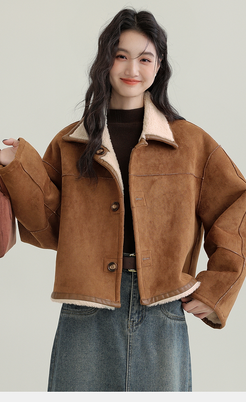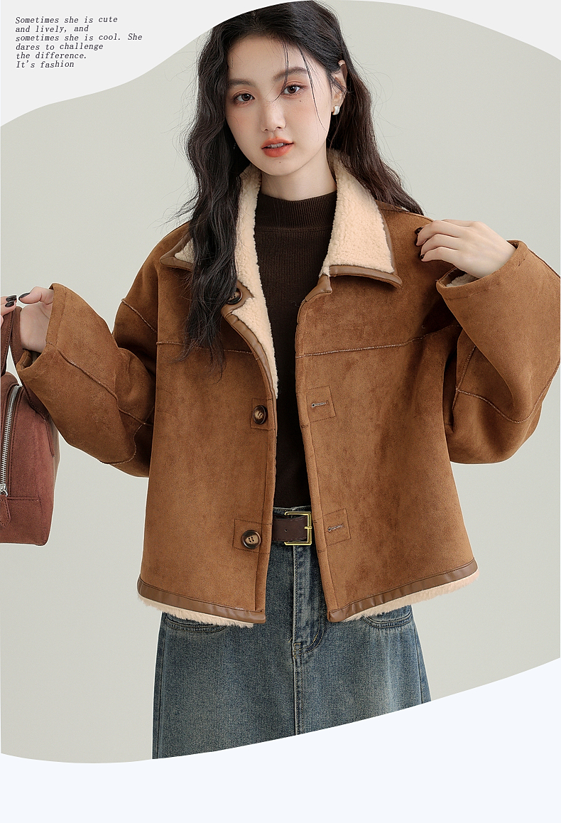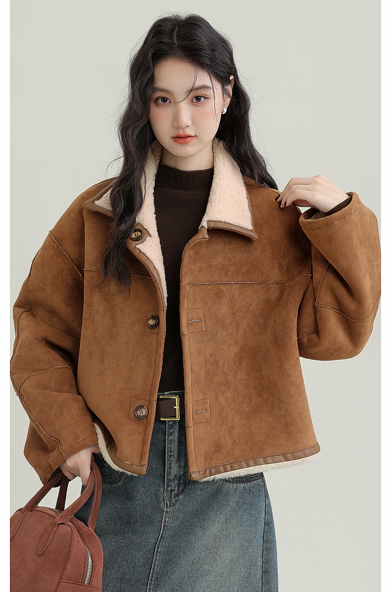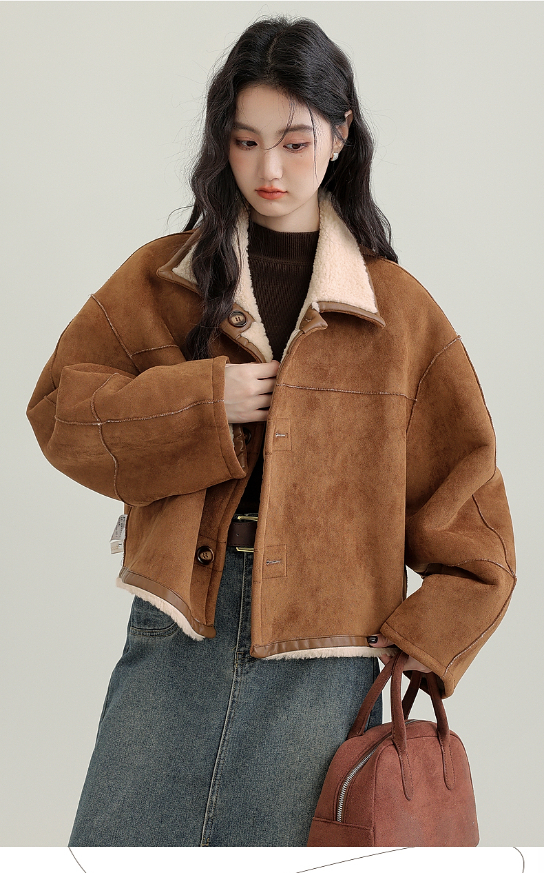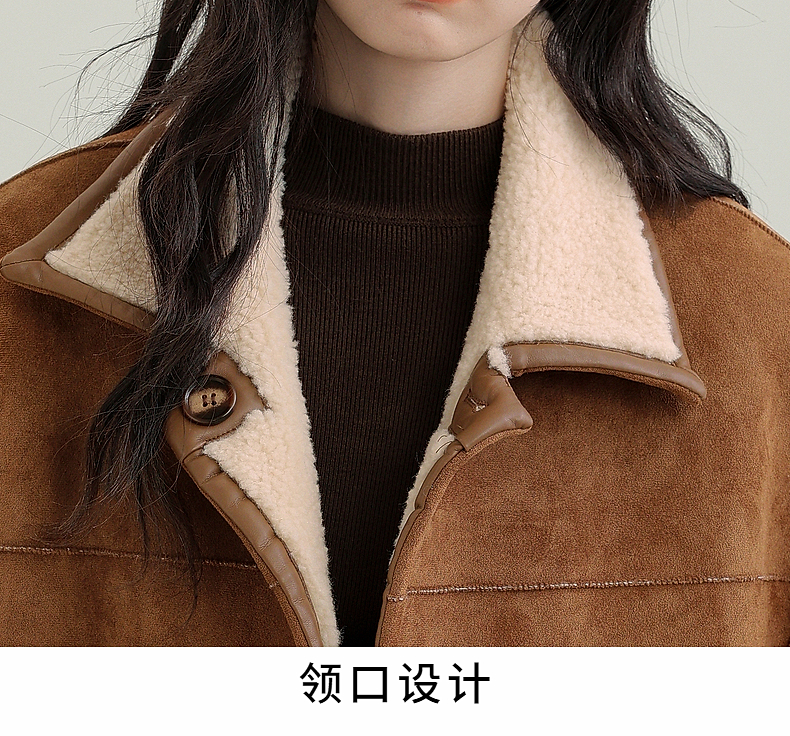 源头工厂来版定制—冬季新款仿外套皮毛一体咖色保暖翻领夹克开衫