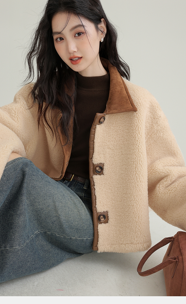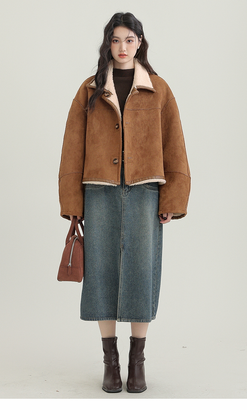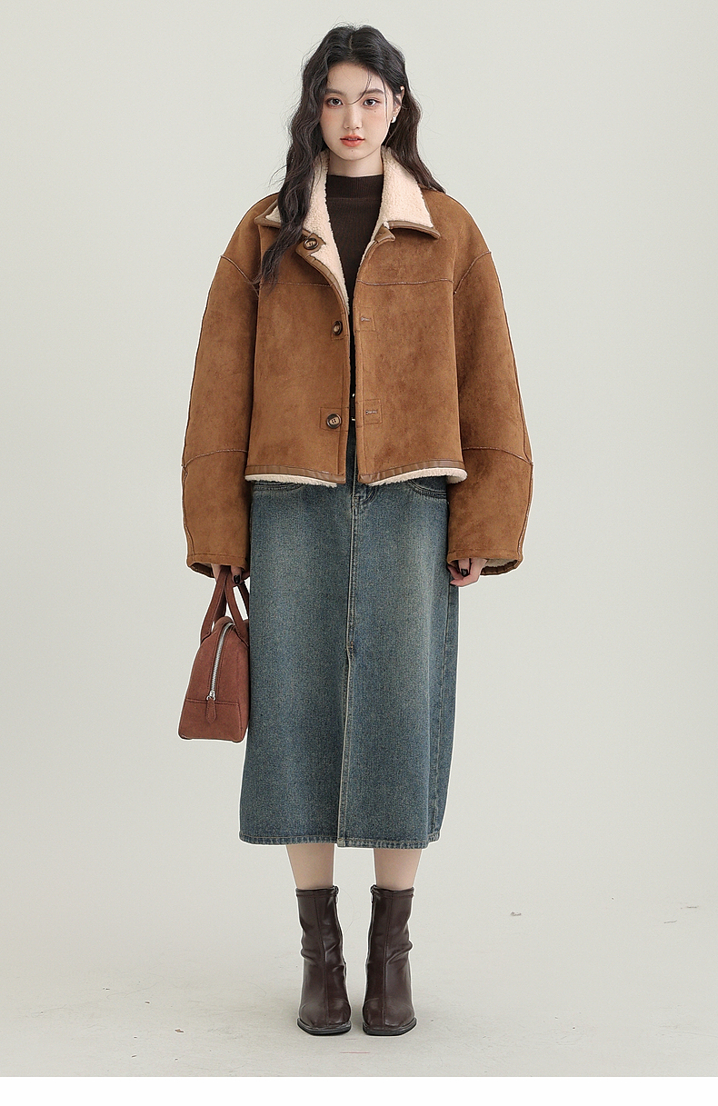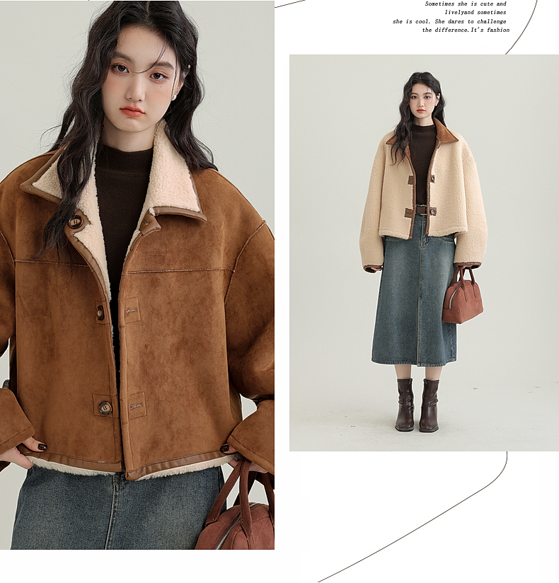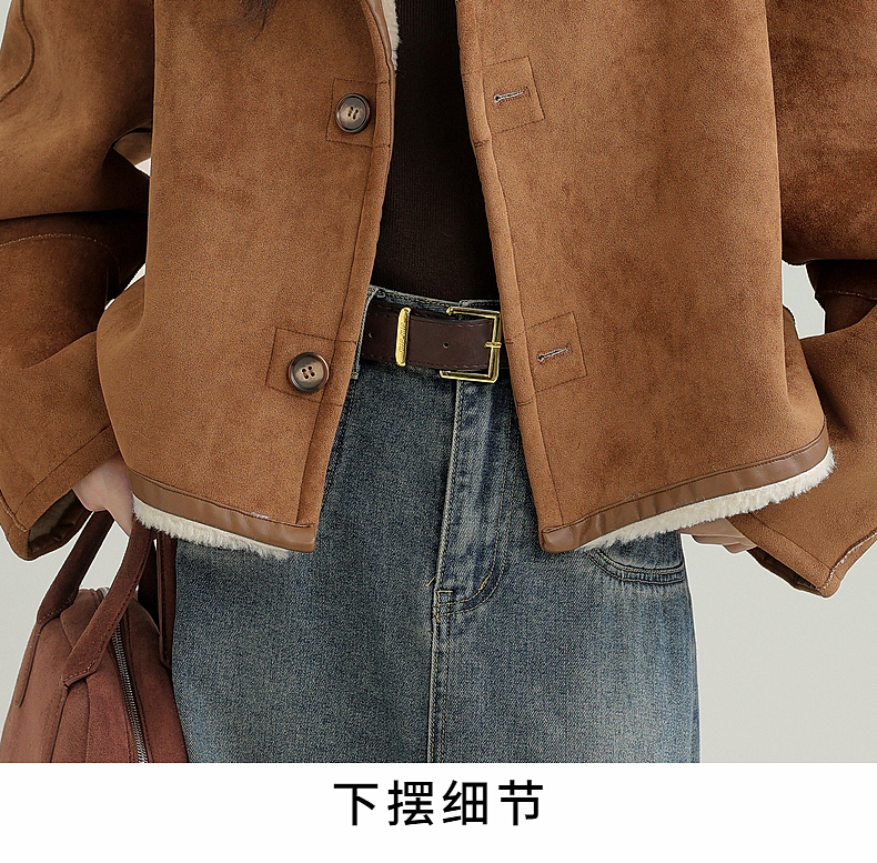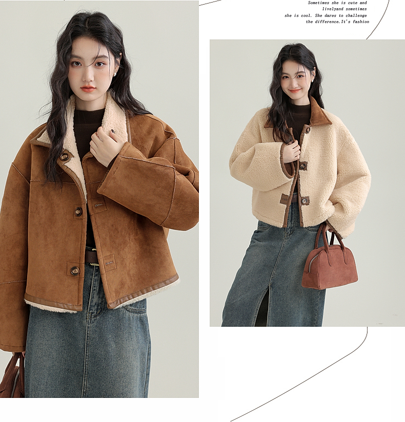 源头工厂来版定制—冬季新款仿外套皮毛一体咖色保暖翻领夹克开衫
