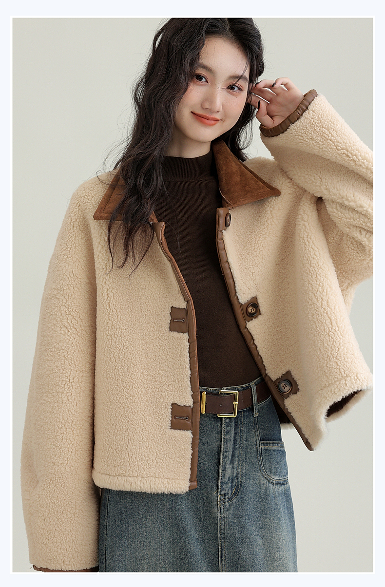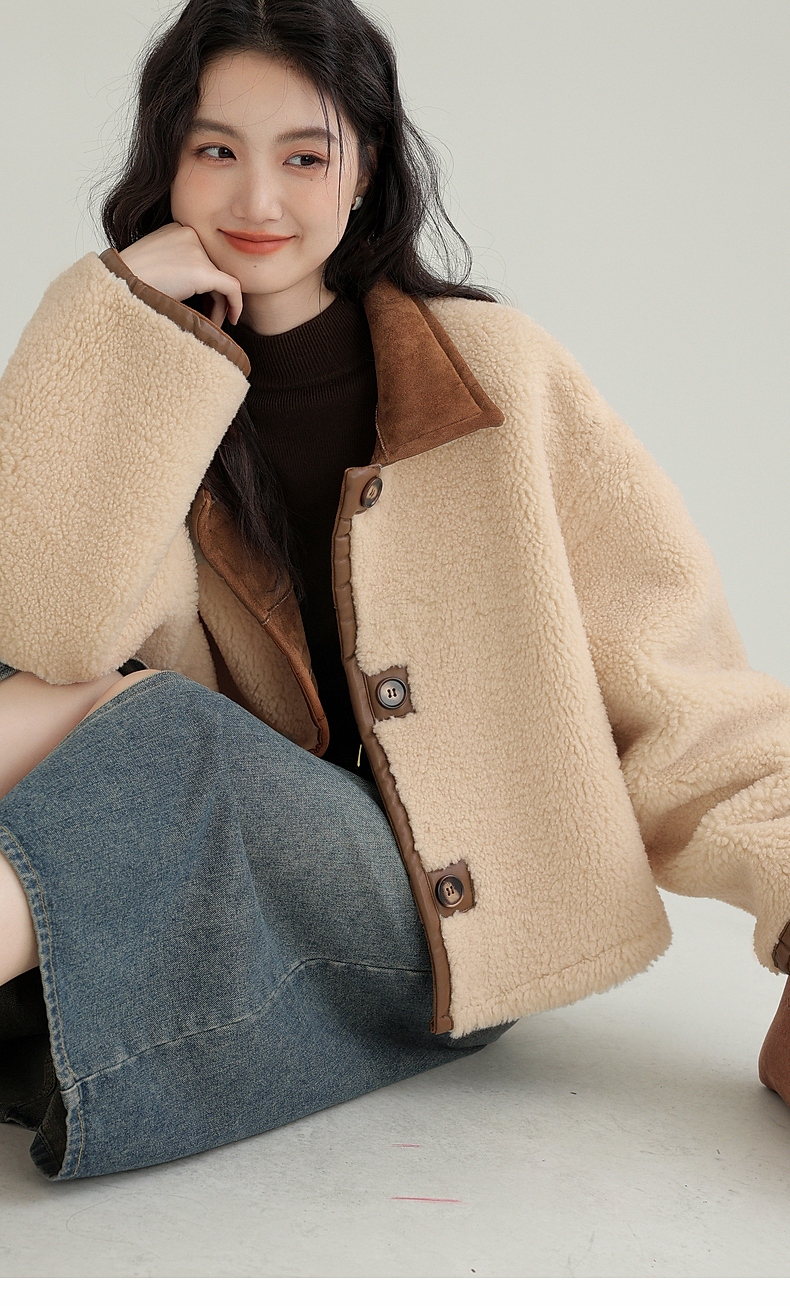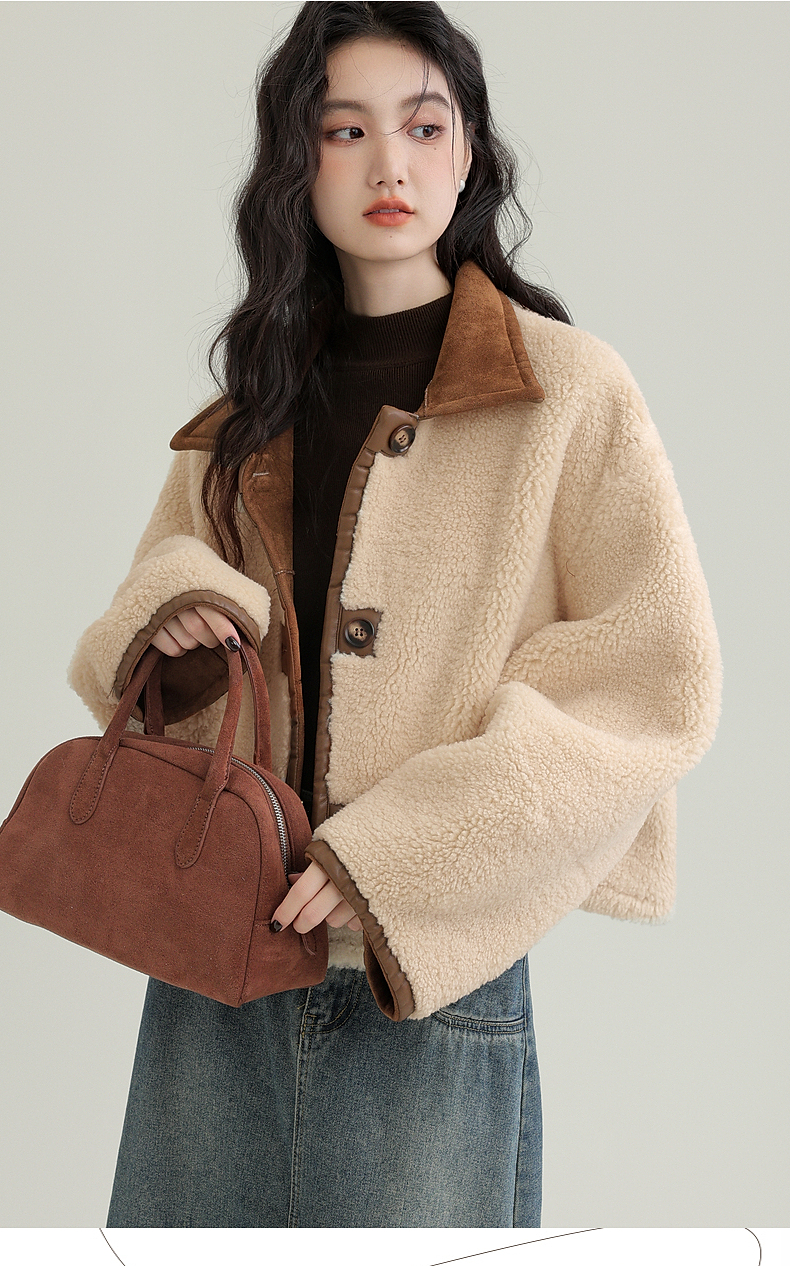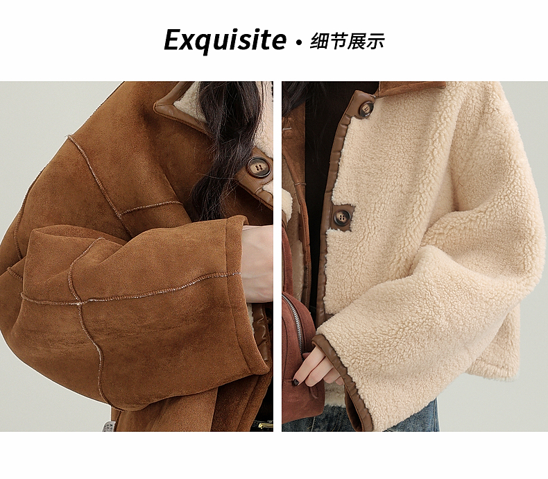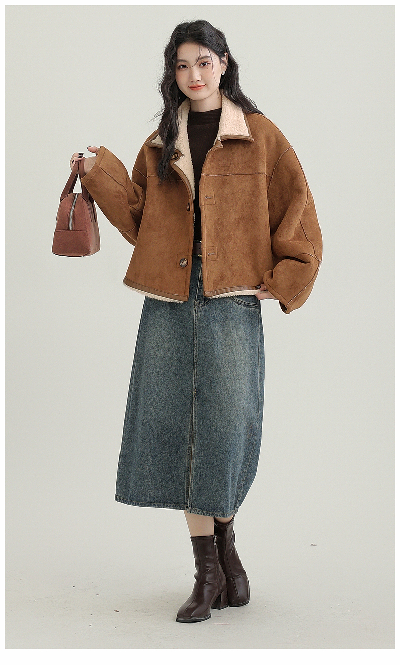 源头工厂来版定制—冬季新款仿外套皮毛一体咖色保暖翻领夹克开衫