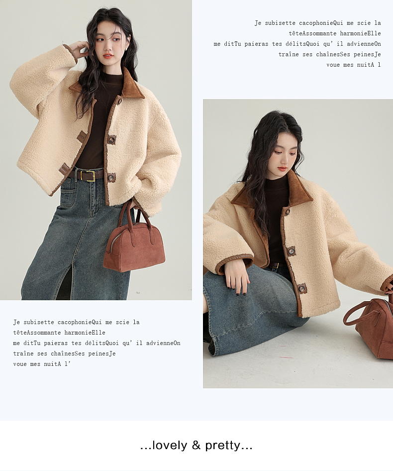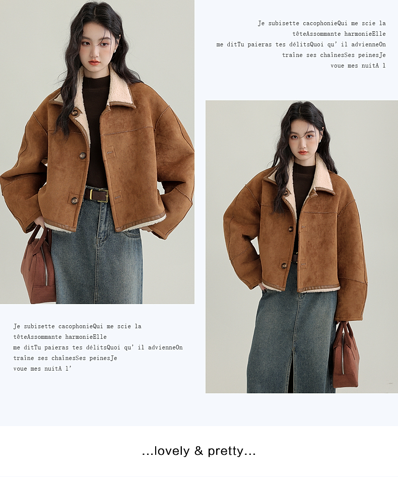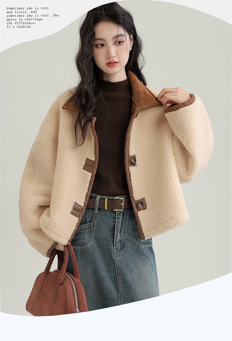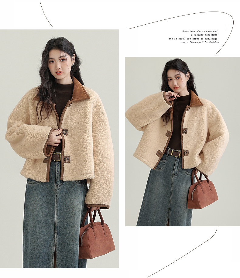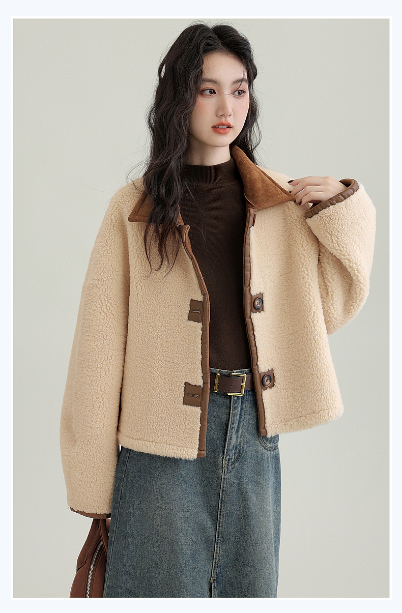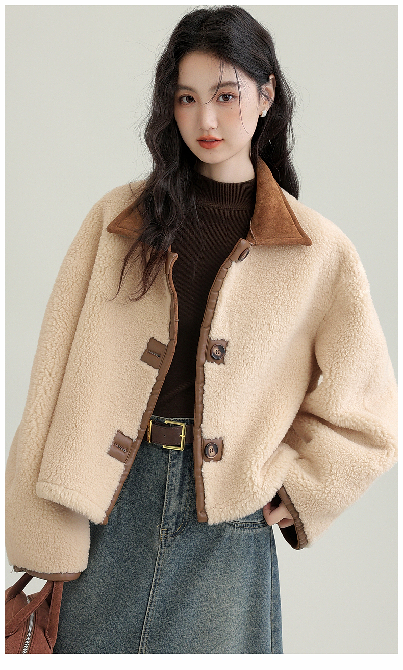 源头工厂来版定制—冬季新款仿外套皮毛一体咖色保暖翻领夹克开衫
