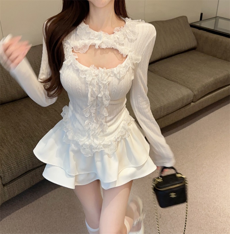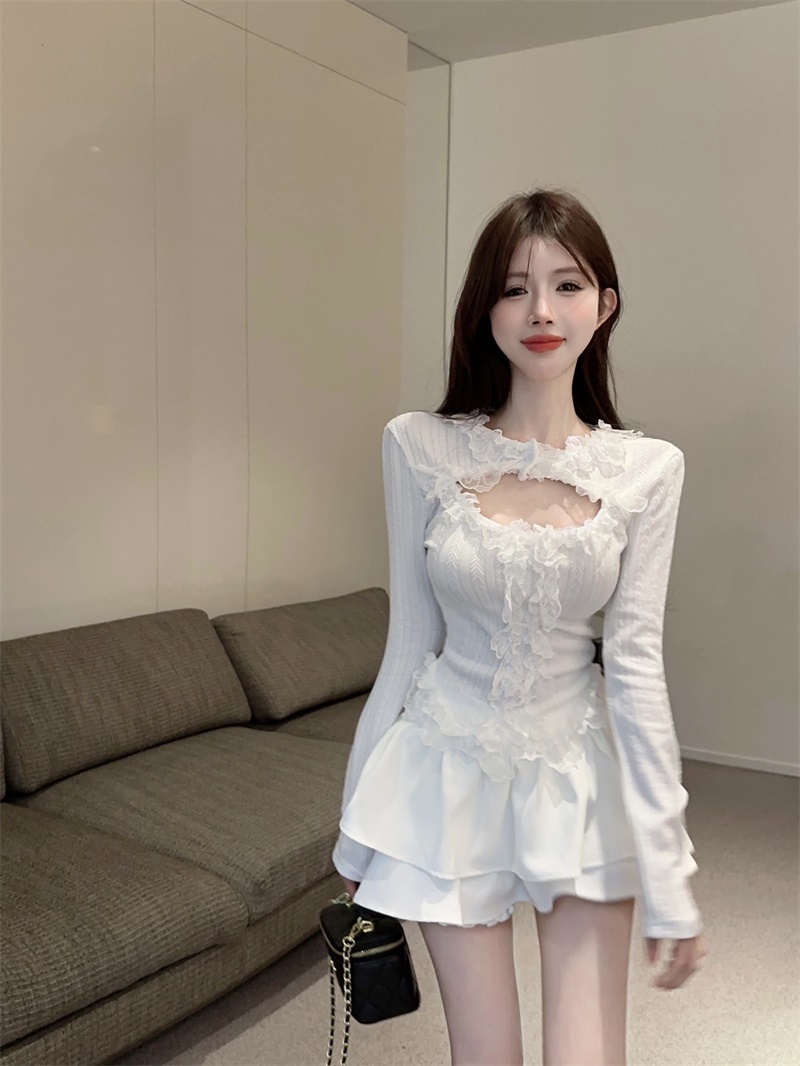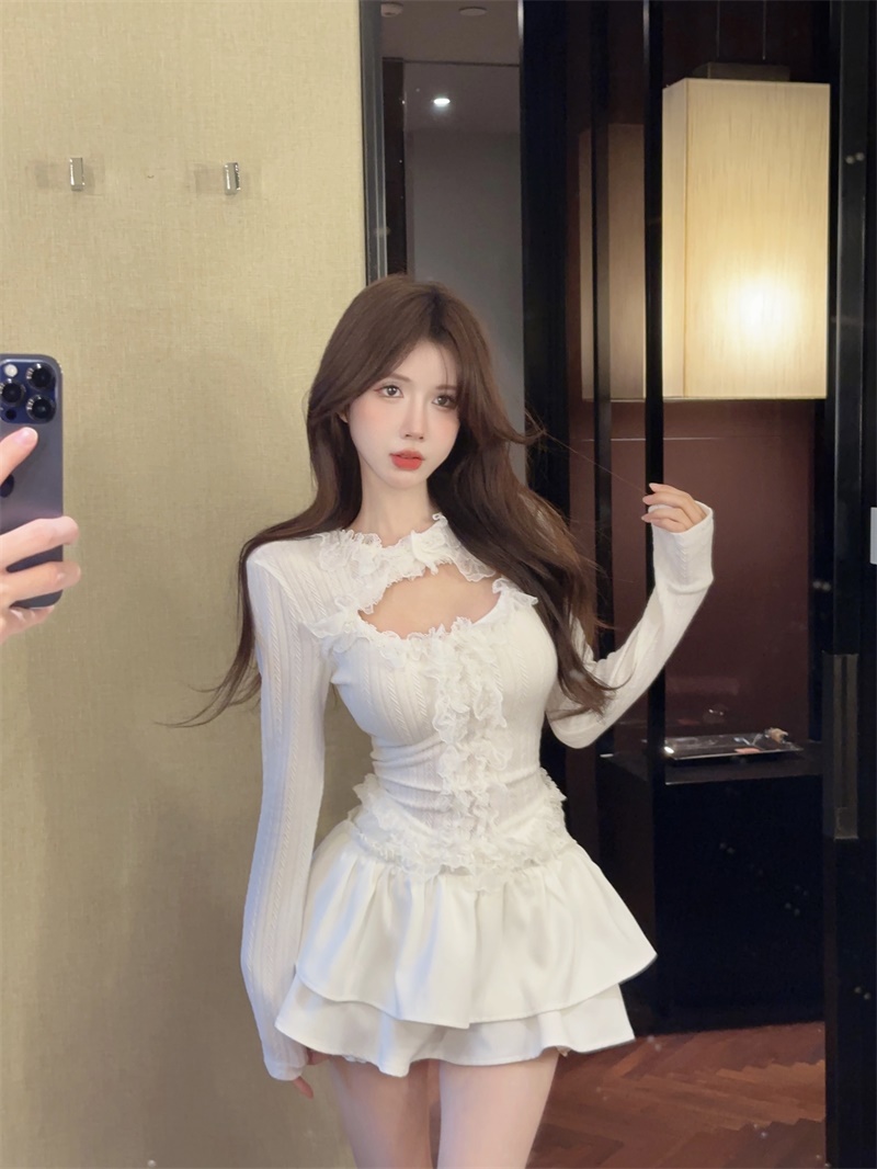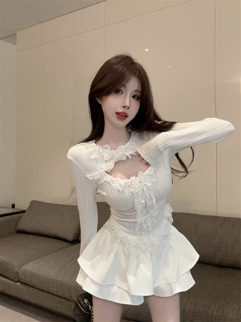 实拍实价 2026春季肌理感重工镂空蕾丝花边上衣百搭松紧腰半身裙