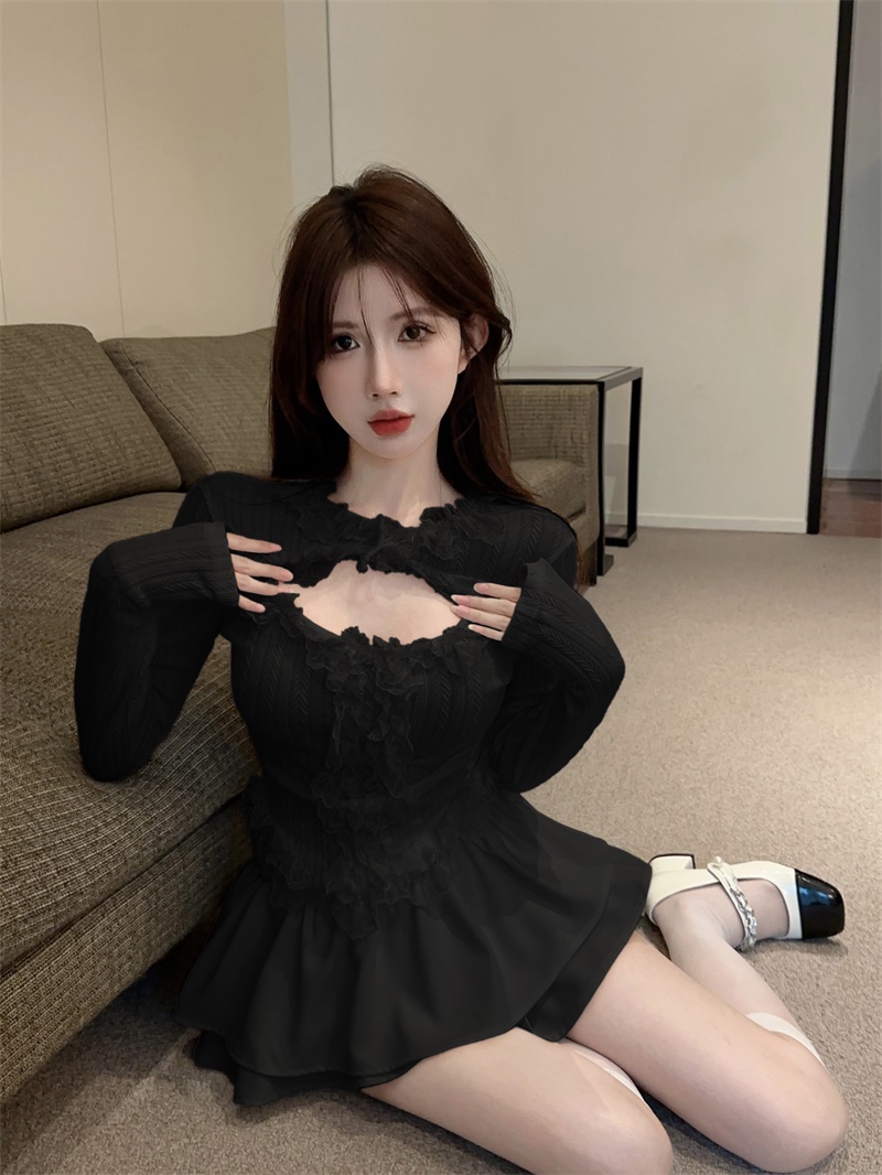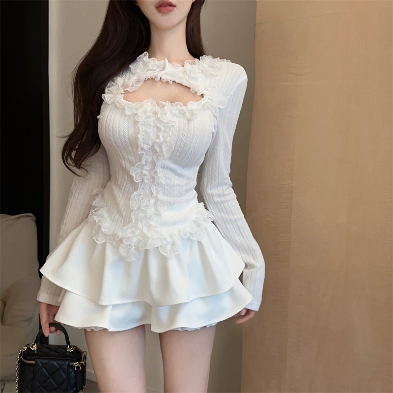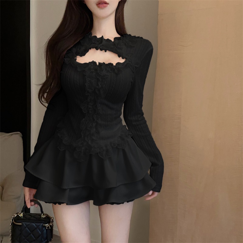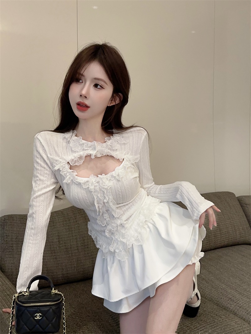 实拍实价 2026春季肌理感重工镂空蕾丝花边上衣百搭松紧腰半身裙