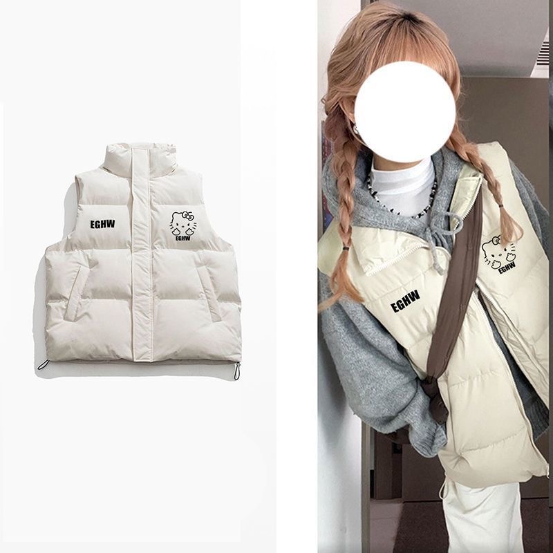 加厚保暖马甲女冬季猫咪印花小个子宽松设计感无袖坎肩外套
