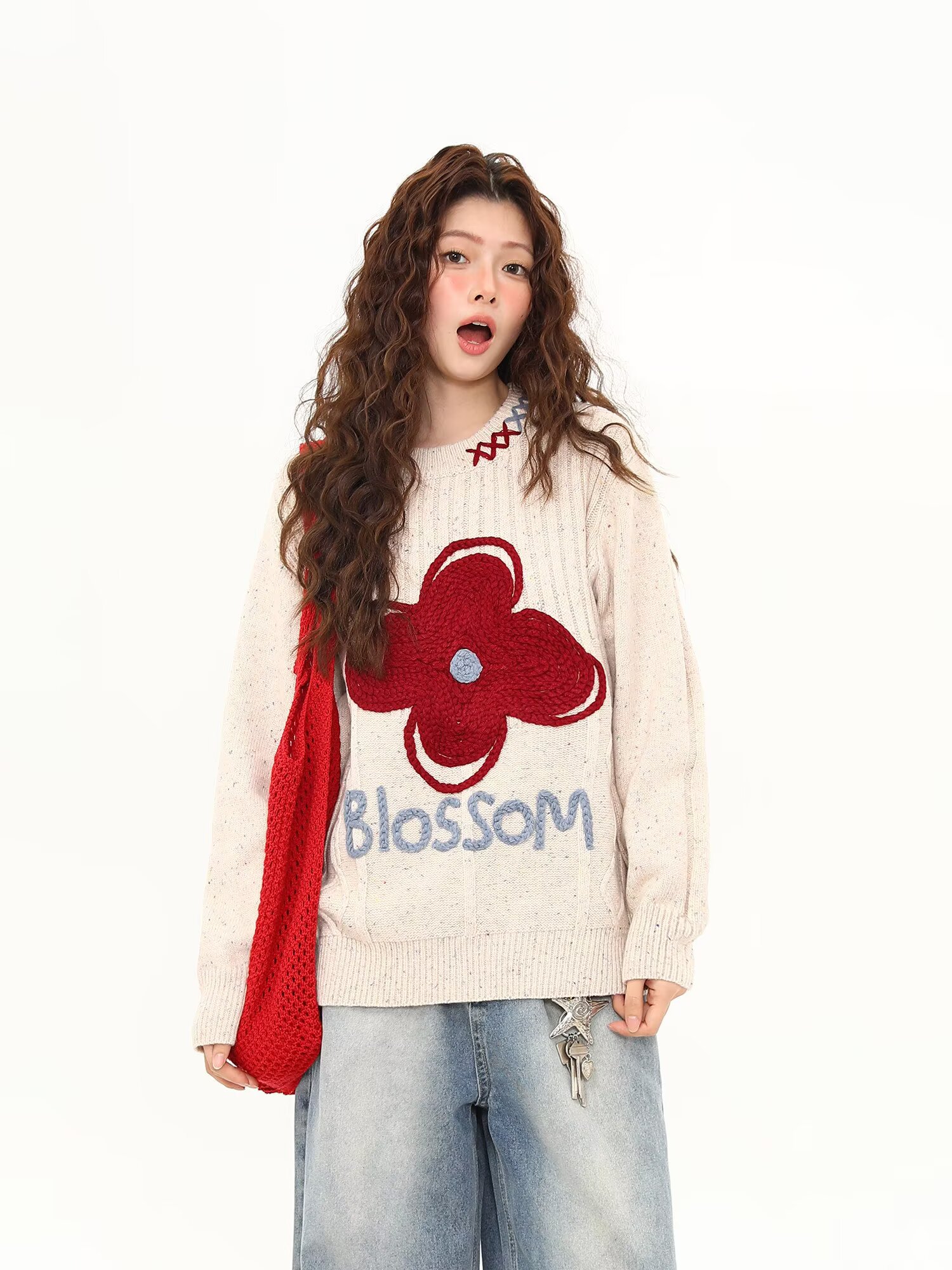 65涤纶35聚丙烯腈纤维刺绣彩点正色毛衣女2026春情侣针织衫上衣