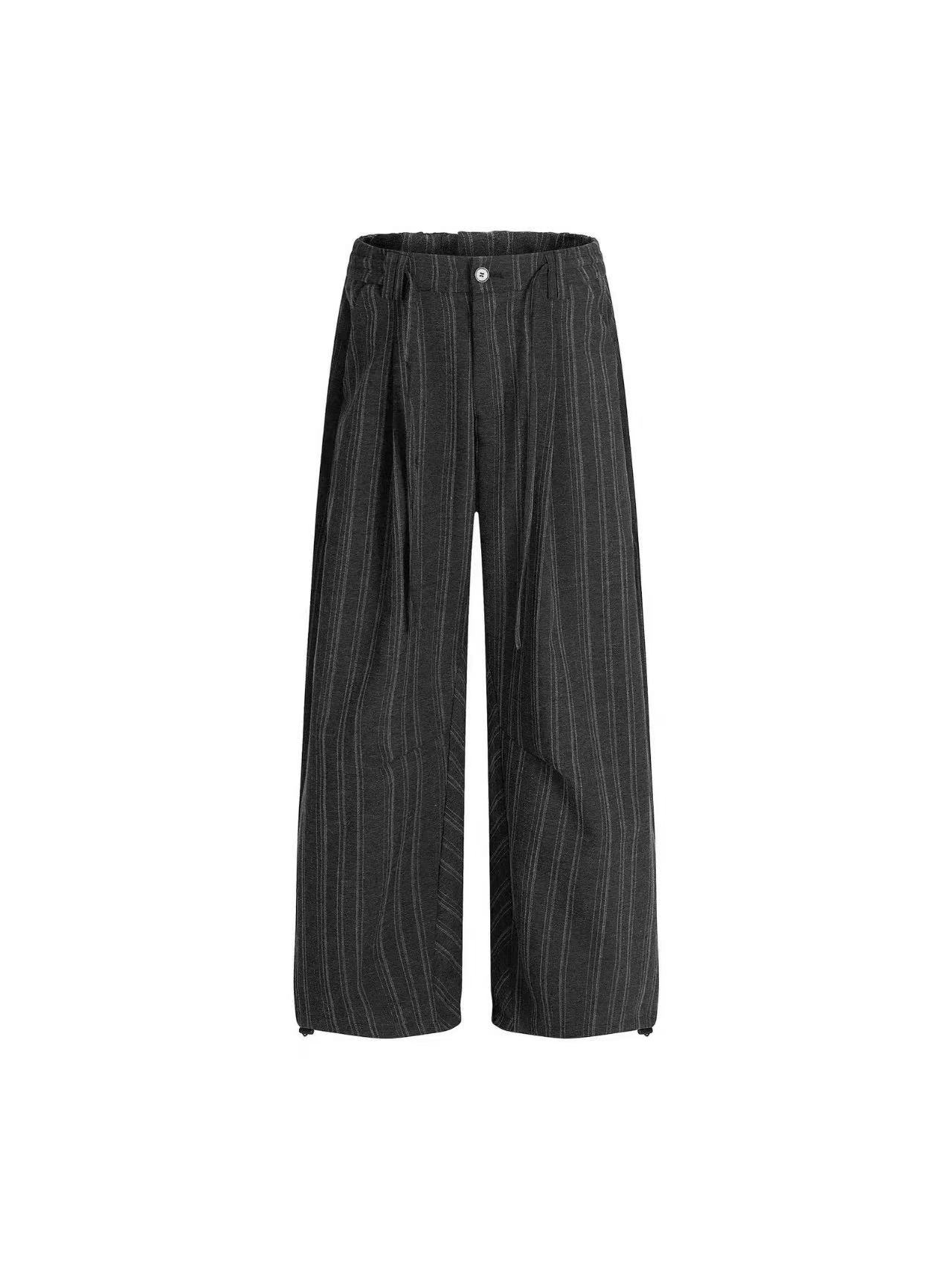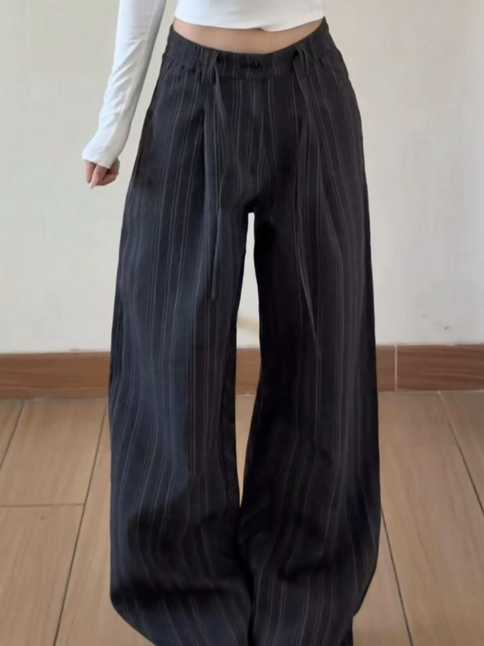 175高个子美式复古条纹直筒休闲西裤老钱风慵懒松弛感抽绳阔腿裤